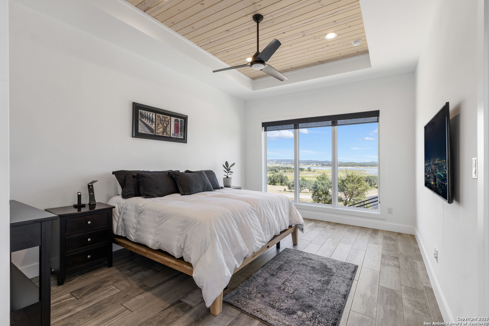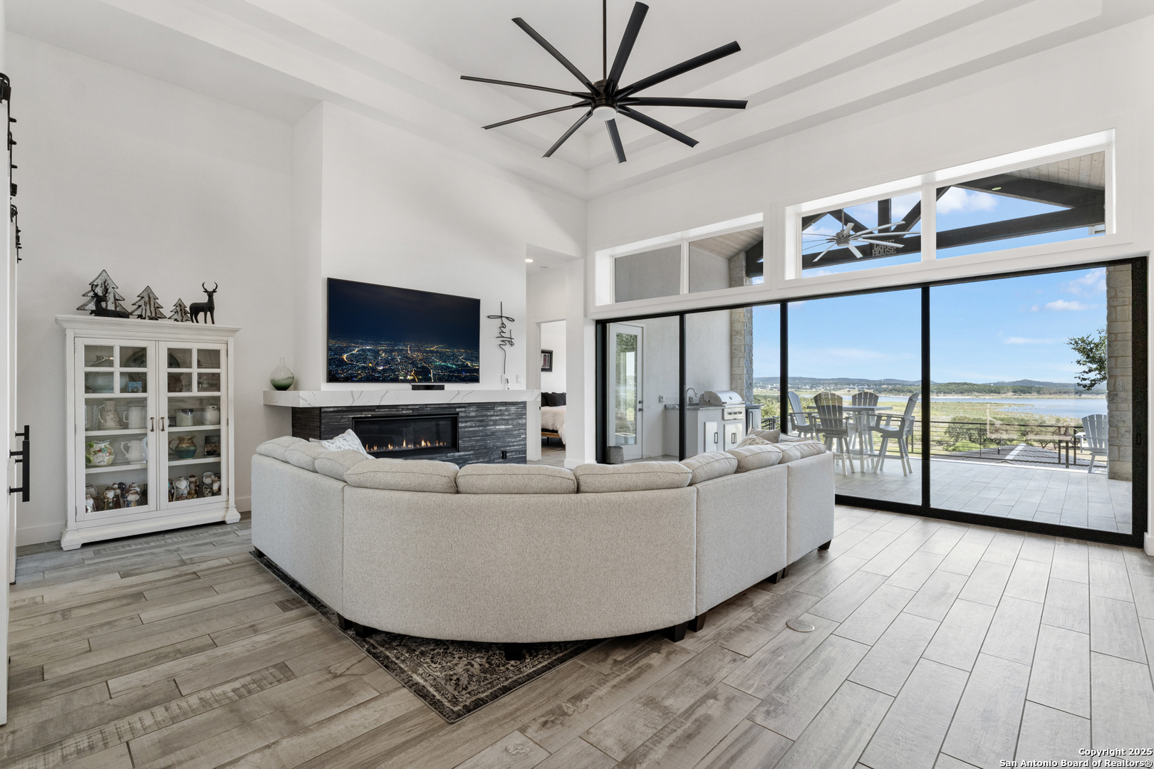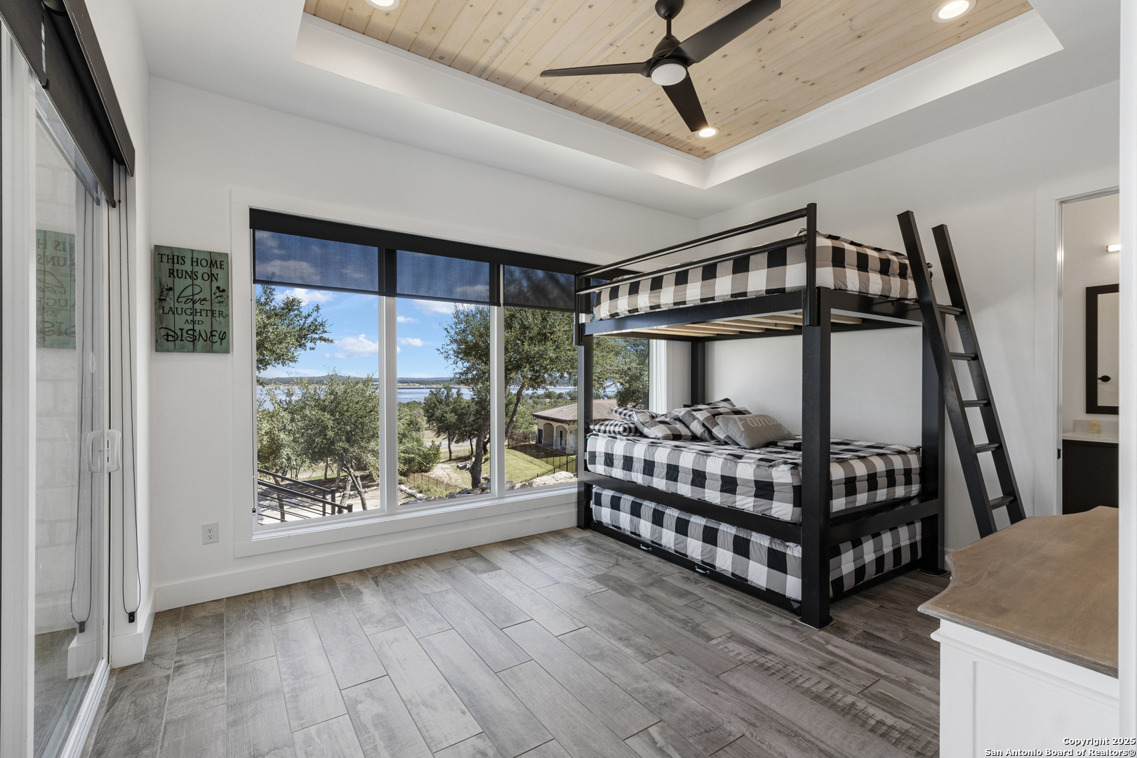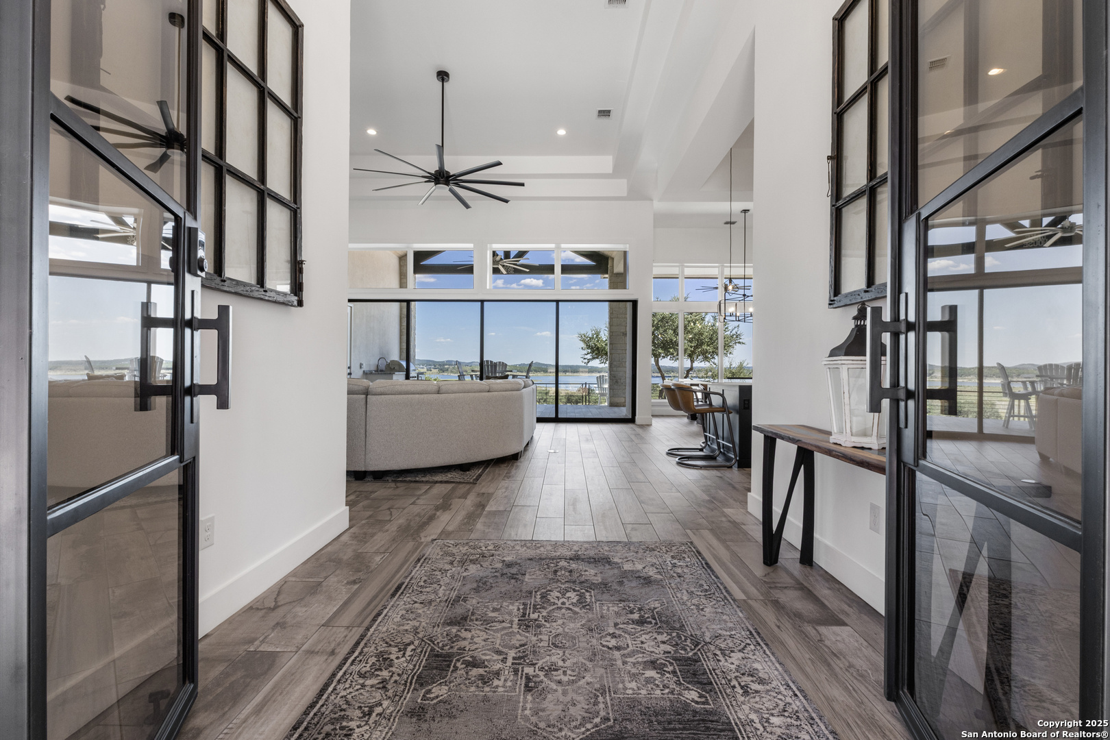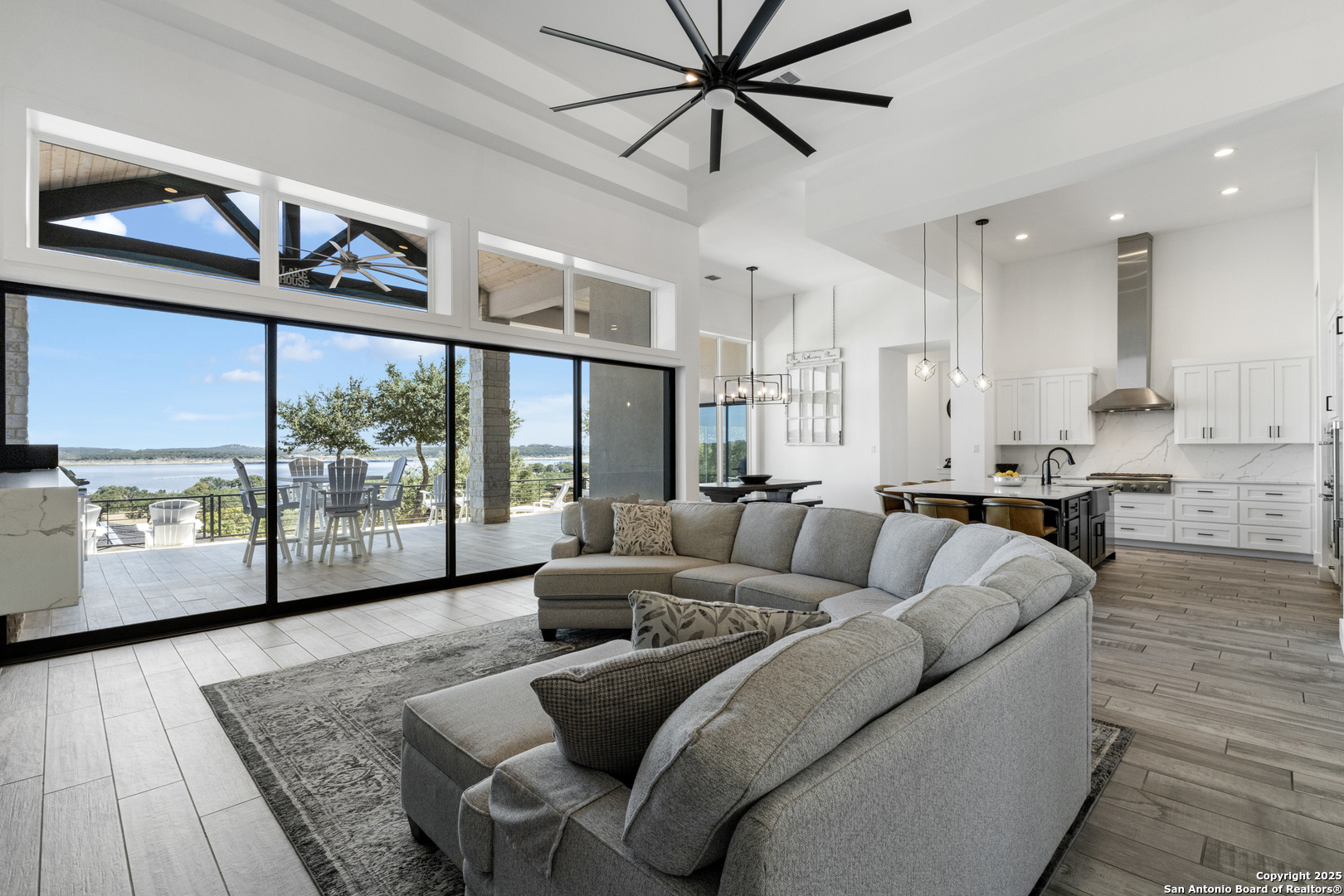 Wake up to breathtaking panoramic views of Canyon Lake in this stunning 2 home estate. Nestled on 1.46 acres, the main home offers 2859sf with 4 spacious bedrooms, 3.5 baths, a study, and an open-concept living space that flows seamlessly to the sprawling patio and outdoor kitchen -perfect for entertaining or relaxing in style. The chef's kitchen features Thermador appliances, a large island, gas cooktop, and abundant counter space, making it the heart of the home. Expansive sliding glass doors retract to bring the outdoors in, showcasing Canyon Lake and the 28 acre nature preserve vistas at every turn. Retreat to the spacious master suite, complete with walk-in closet and a spa-like bath with a freestanding garden tub, oversized walk-through tiled shower, and dual vanities. A versatile fourth room can serve as a game room or flex space, while a dedicated study provides the perfect spot for work or reading. The oversized 3-car garage features 10-foot roll-up doors, epoxy flooring, a mini-split system, and ample space for automotive projects or a home gym. The property also includes a 2,842 sq ft casita with 3 bedrooms, 3.5 baths, a full kitchen, and laundry-ideal as a guest house, an airplane hanger, a versatile space for a classic car collection, hobby garage, workshop, gym, or flexible living space. The casita is conveniently located near the Canyon Lake Airport airstrip without compromising privacy, and the adjacent parking area doubles as a pickleball court. Luxury features abound including foam insulation, a 24kW Generac generator, whole-house water filtration/softener, programmable exterior LED trim lighting, This is more than a home-it's a lakefront lifestyle blending modern elegance, entertainment-ready spaces, and spectacular views in one of Canyon Lake's most coveted locations.