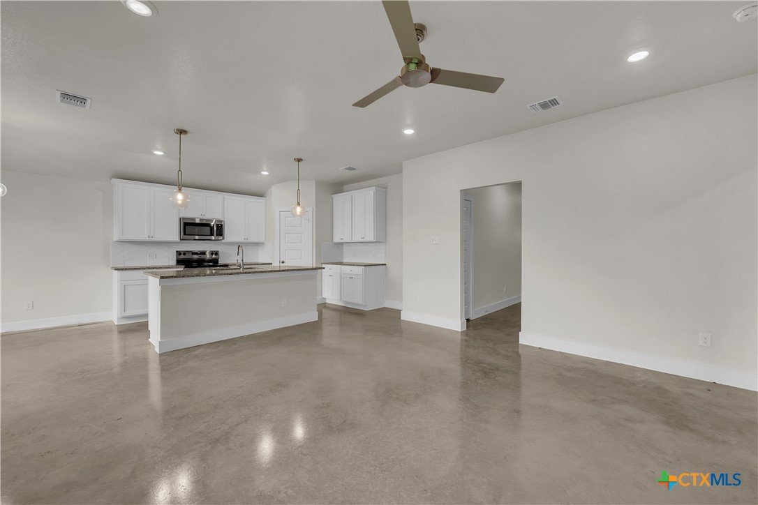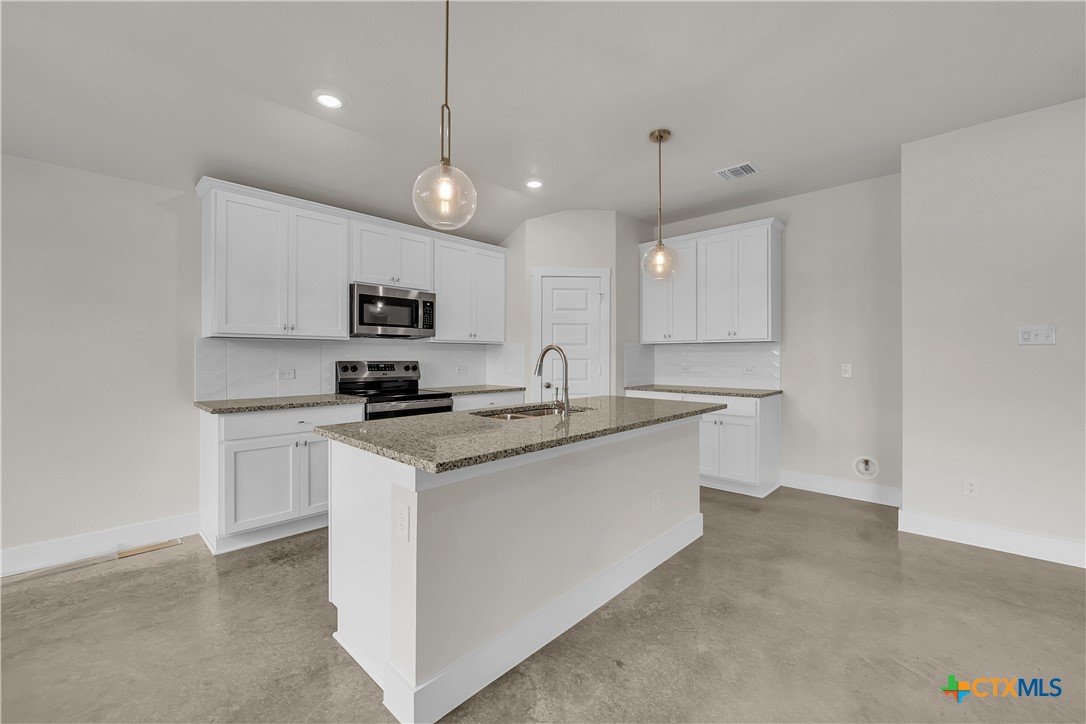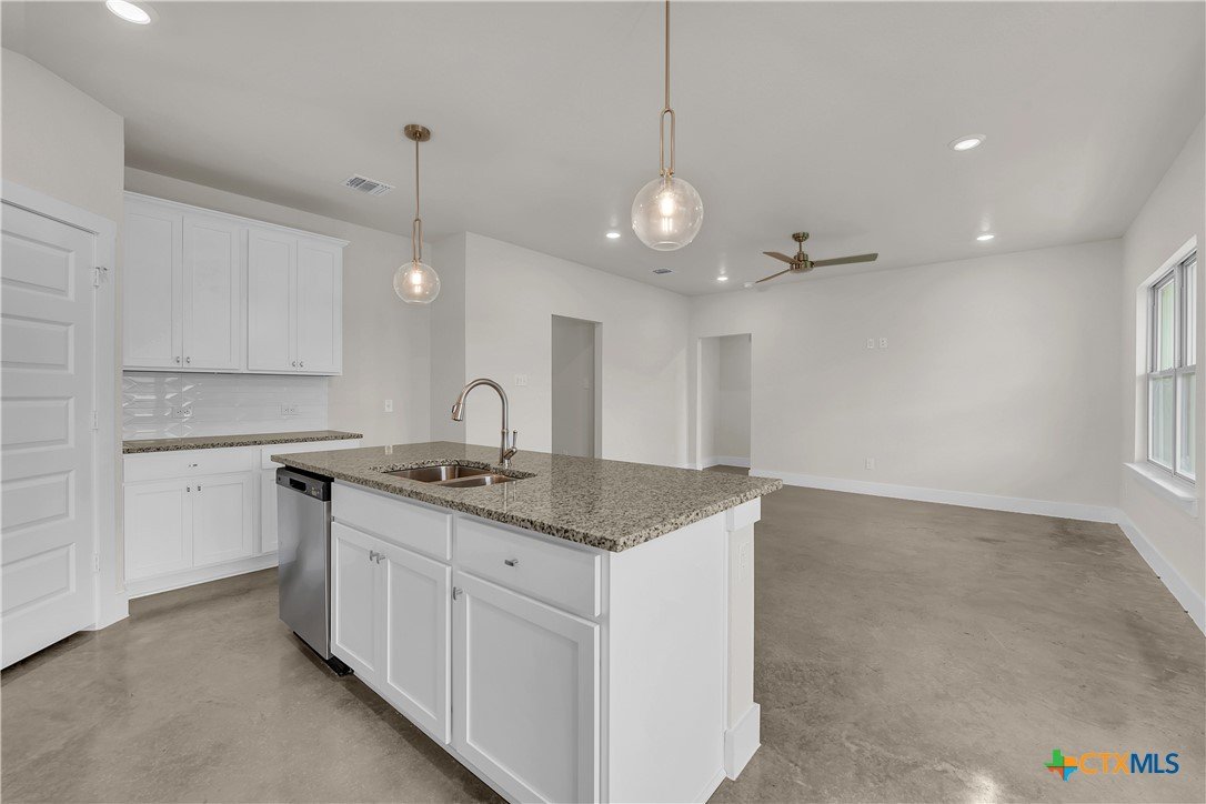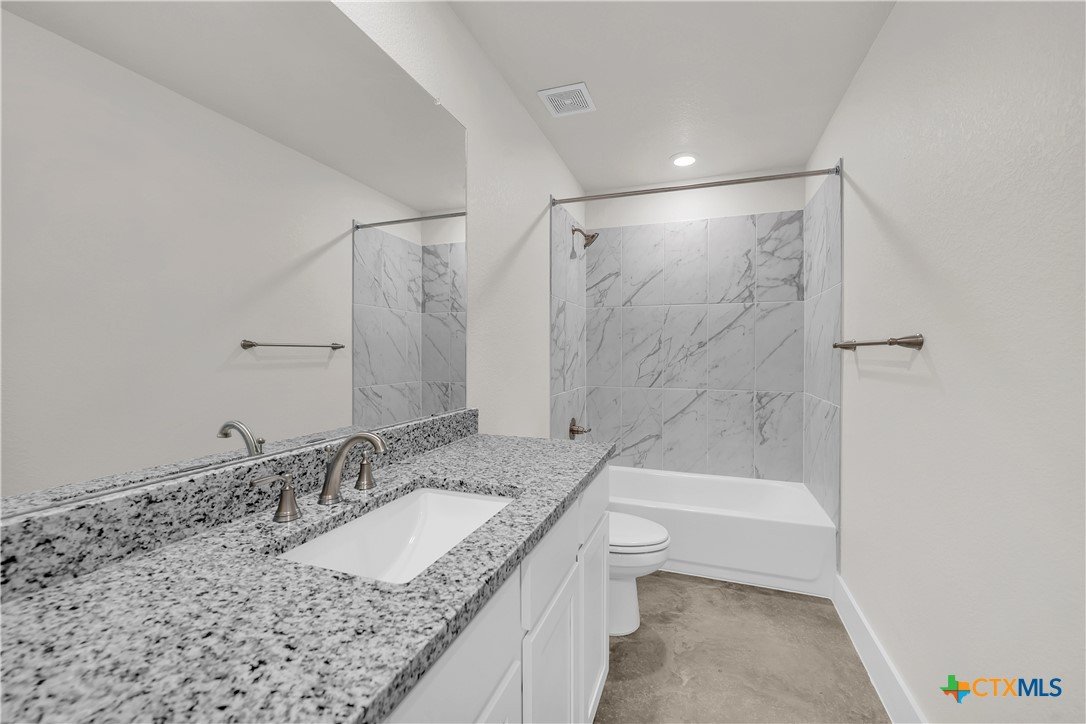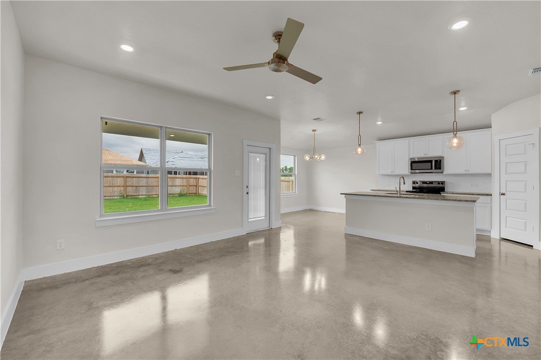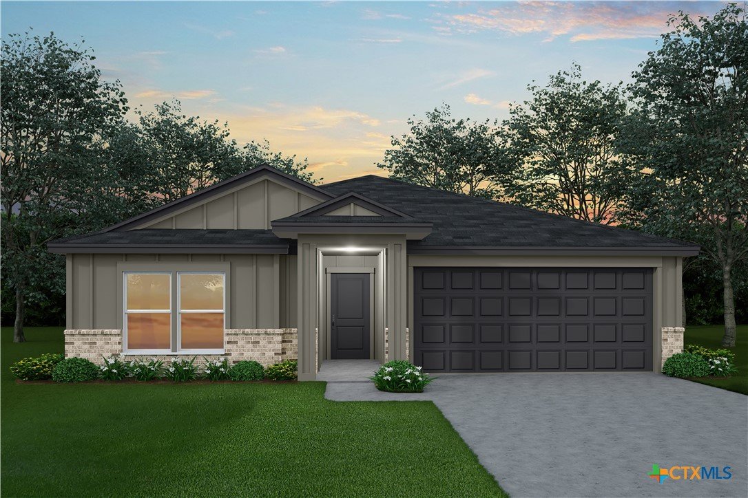 Welcome to the beautiful Trinity floor plan by Flintrock Builders, located in the highly desirable Freedom Ranch subdivision. This well-designed home features 3 bedrooms, 2 bathrooms, and a 2-car garage, offering 1,469 square feet of open and inviting living space. The interior boasts an open-concept layout, perfect for both daily living and entertaining. The kitchen includes stainless steel appliances, quartz countertops, and a spacious walk-in pantry for ample storage. All bedrooms are comfortably spaced, a walk-in shower, and dual vanities.Exterior highlights include a covered patio, a fully sodded yard with privacy fencing, and a full irrigation system for effortless lawn care. With its smart layout, quality finishes, and prime location, this home offers the perfect blend of style and function. Bases are loaded, rates are locked in! Don't miss out on Flintrock Builders' Sales event with interest rates as low as 4.49% - 5.273% APR.