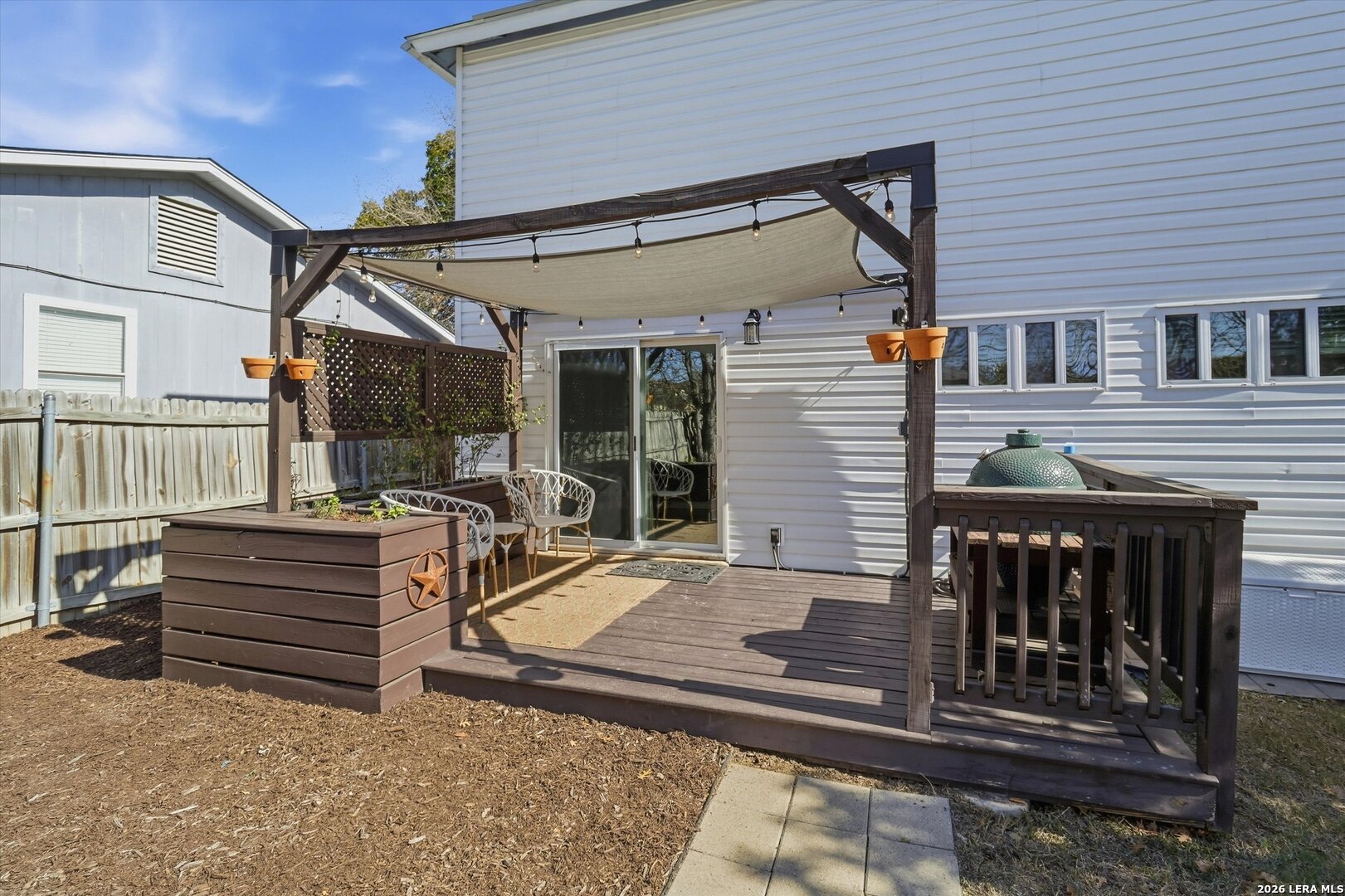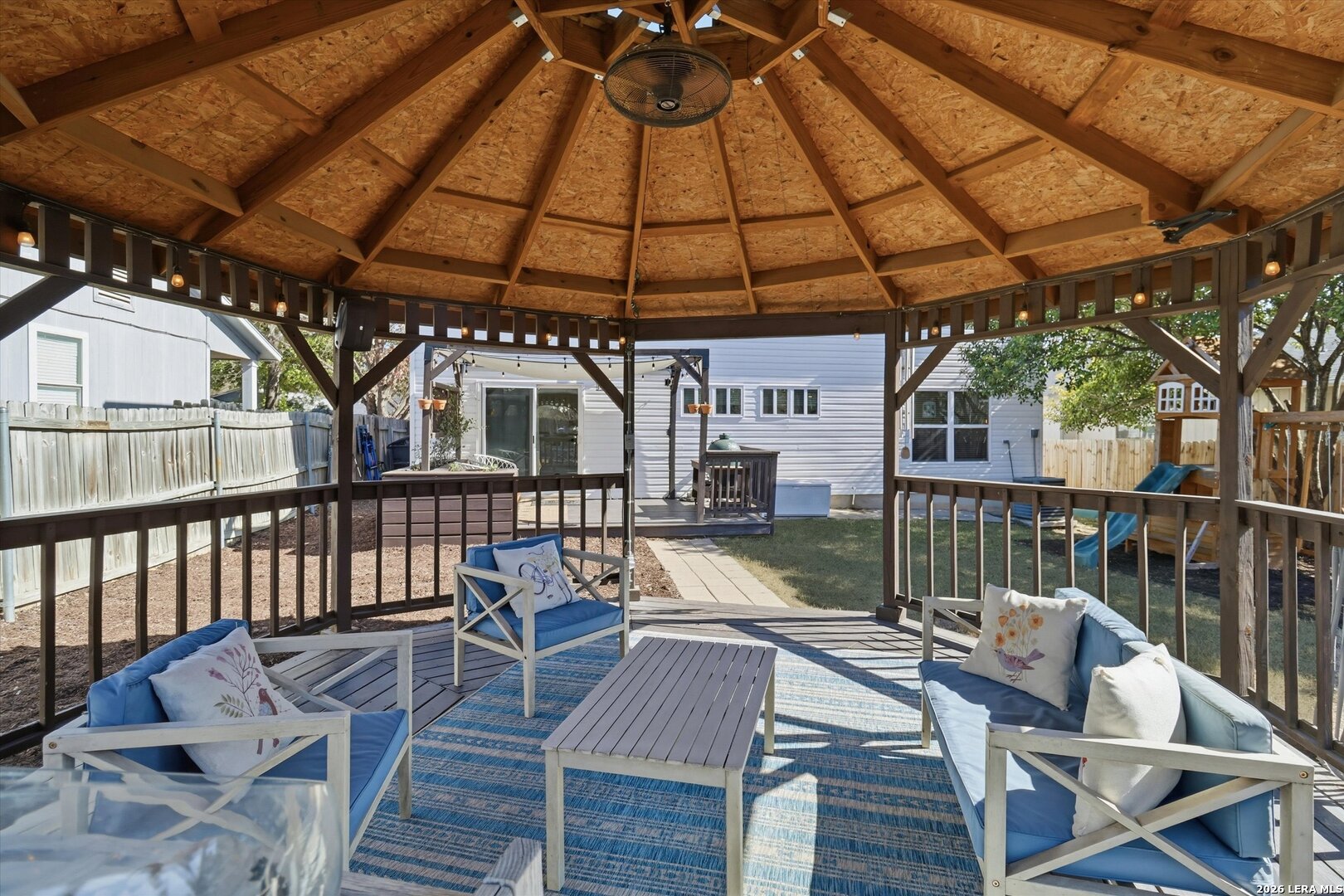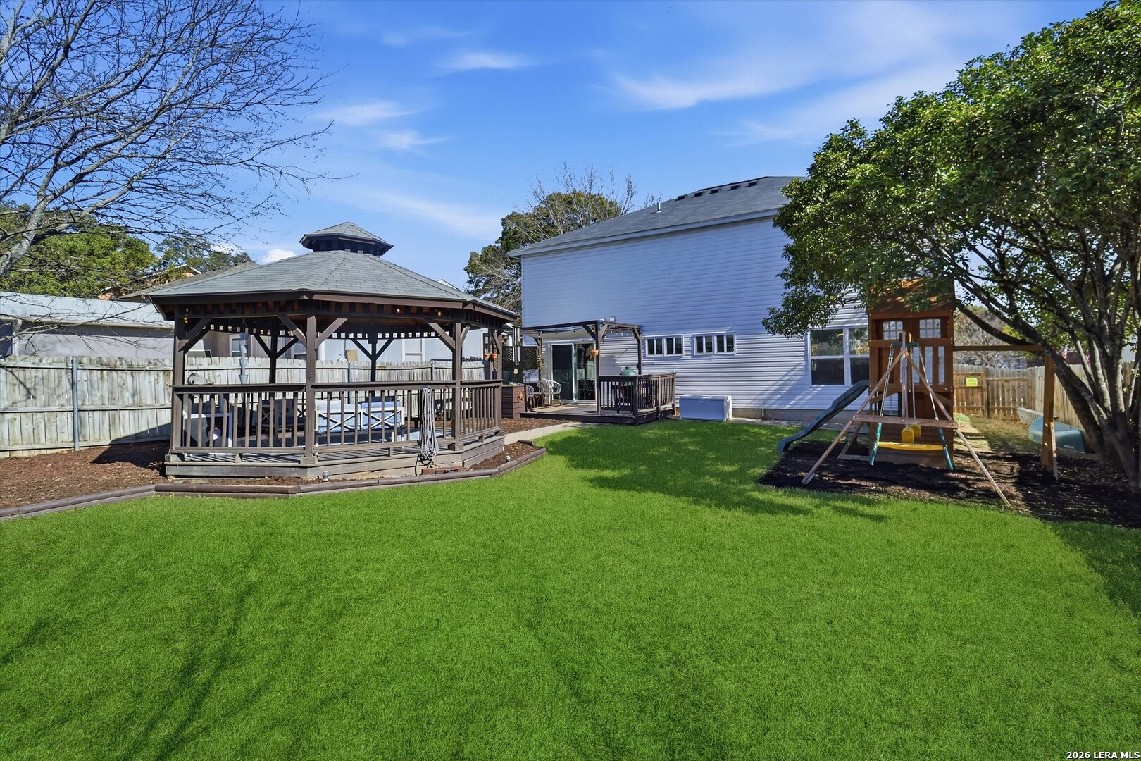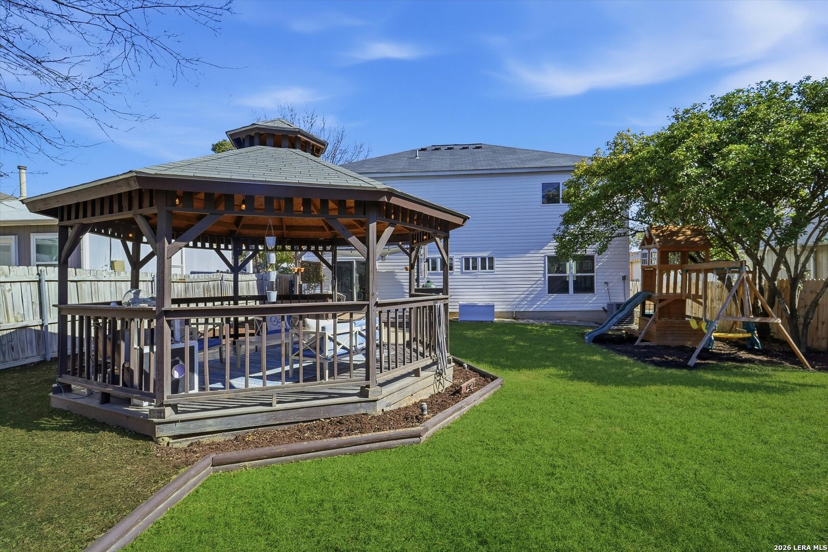 **OPEN HOUSE 1/31 12PM-3PM**Location, location, location! Ideally situated near UTSA, USAA, The Shops at La Cantera, The Rim, and major employers, this home offers excellent access to shopping, dining, and entertainment. Quick access to Loop 1604 and I-10 makes commuting to downtown, the Medical Center, and surrounding areas easy. Zoned to Northside ISD with nearby schools including Scobee Elementary, Stinson Middle School, and Brandeis High School. Located in a desirable community featuring resort-style amenities including a clubhouse, pool, tennis courts, sports court, and playground. This spacious two-story home offers all main living areas on the first floor with an open layout. The kitchen provides ample cabinet and counter space and includes a large laundry-pantry combo off the kitchen with access to the garage. No carpet throughout for easy maintenance. Upstairs features spacious bedrooms. Enjoy the backyard with deck and gazebo, perfect for relaxing or entertaining.