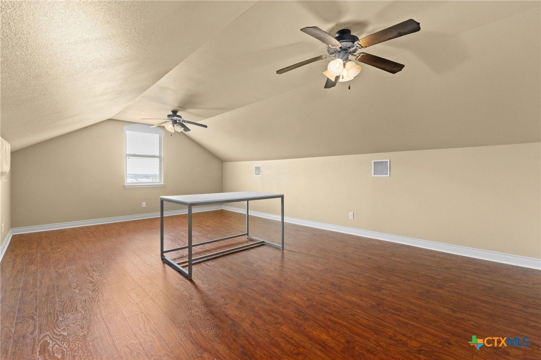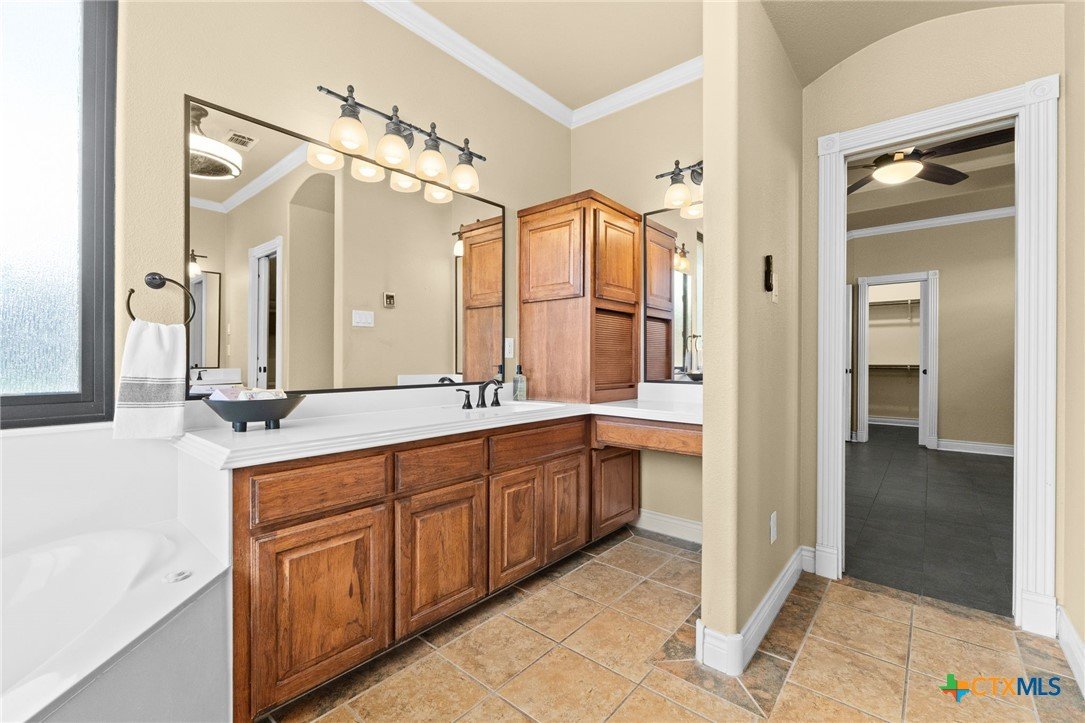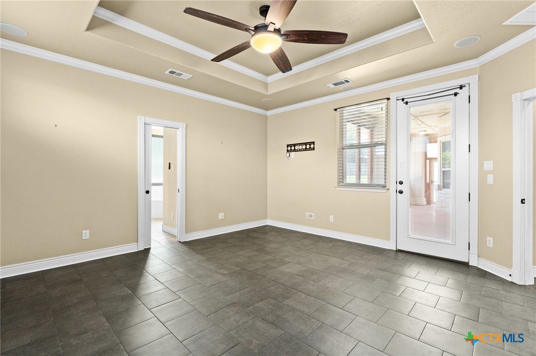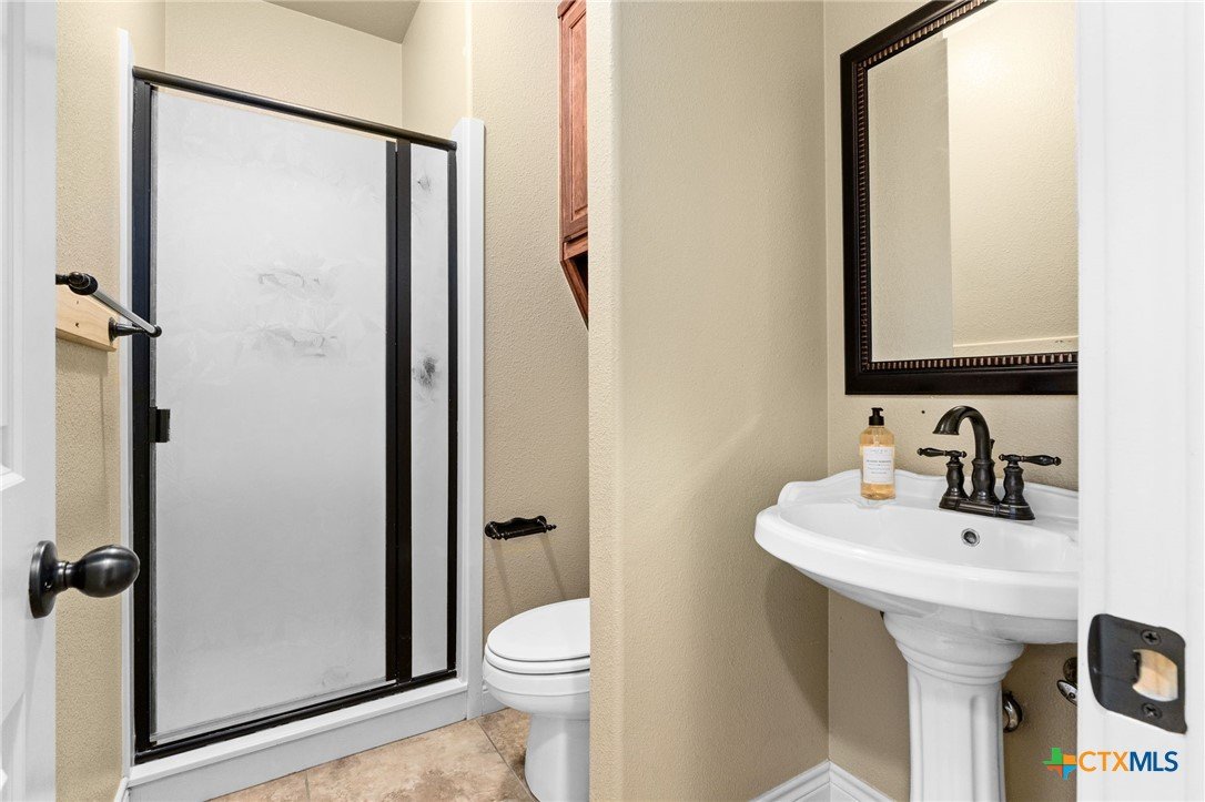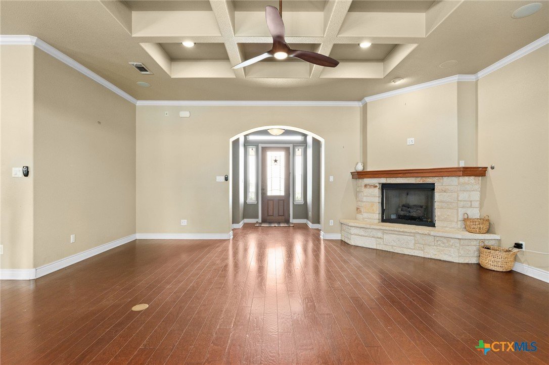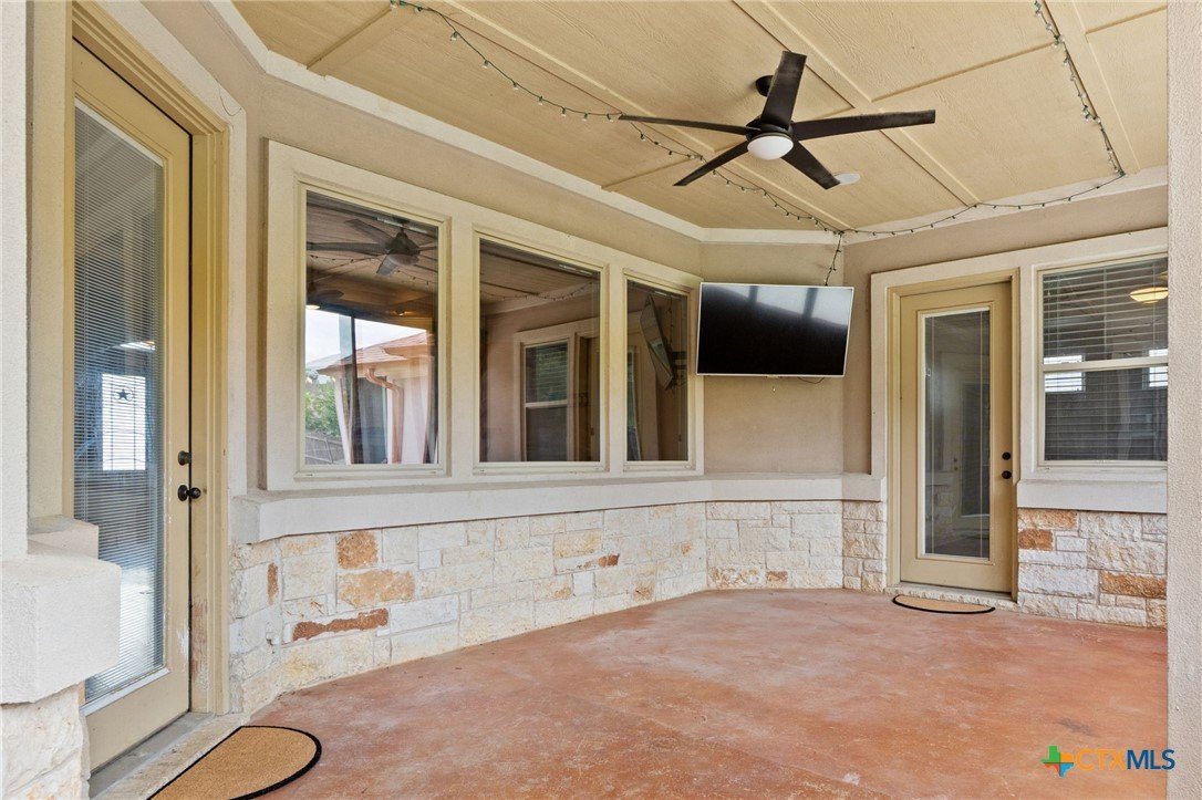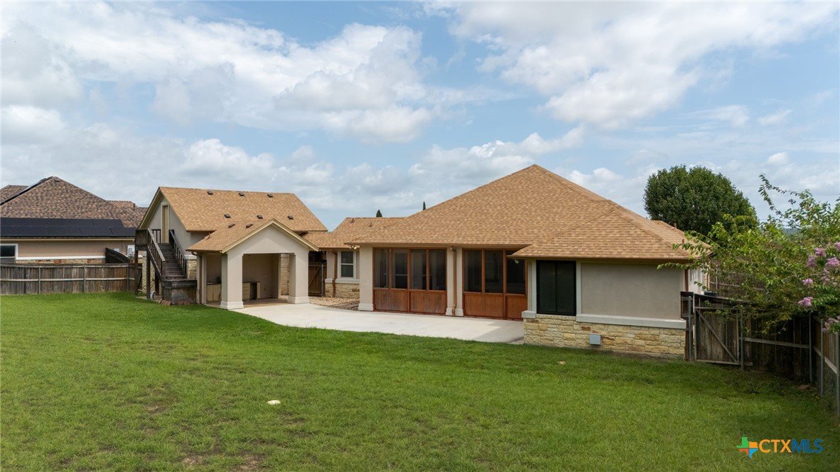 Located in Nolanville’s sought-after gated community of Bella Charca, this 4-bedroom, 3-bath custom built Dewald home blends luxury, energy efficiency, and thoughtful upgrades. Recently installed upgrades include a new 25 year - shingle-composition roof, all bathroom plumbing fixtures, backyard patio, additional fencing, two HVAC units, dishwasher, interior and exterior light fixtures, fans and solar shades, wood and tile flooring, Renewal by Andersen high performance SmartSun windows in primary bath, and Hunter Wi-Fi-enabled 14-zone irrigation system. Enjoy energy savings with two Rinnai gas tankless water heaters and spray foam insulation. Additional upgrades include pocket and ADA-compliant doors, zero carpet, a spacious utility room, second dining or home office, hardwired security system, and electrical and plumbing roughed in for future pool. The gourmet kitchen boasts granite counter tops, gas cooktop, solid wood cabinetry with custom storage, and a large center island with a built-in sink which flows seamlessly into the spacious breakfast nook and family room, complete with a coffered ceiling, crown molding, surround sound, and a gas fireplace with log set. Primary bedroom serves as a true retreat, offering private patio access, coffered ceiling, oversized walk-in closet, built-in surround sound and en suite bath with jetted tub, walk-in shower, dual vanities, and water closet. Two additional bedrooms share a Jack and Jill second full bath, and the fourth bedroom has direct access to the third full bath to ensure comfort for family and guests alike. Above the oversized two-car garage, a dedicated media room provides additional flex space. Enjoy outdoor living under the covered patio with a built-in gas grill, sink and connections for an ice maker, or relax in the screened-in sunroom with solar shades and TV connection, both equipped with surround sound, overlooking a private, oversized backyard.