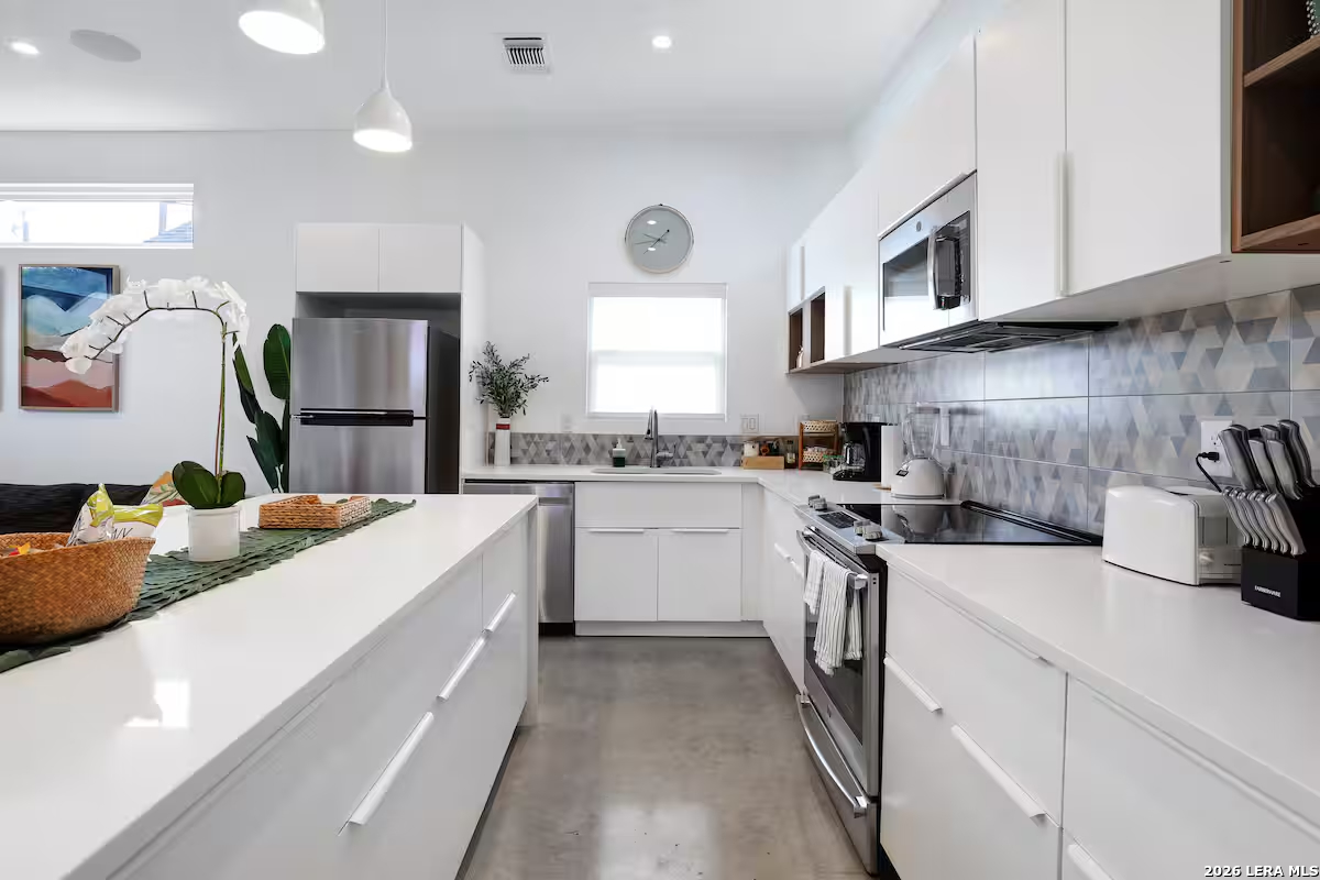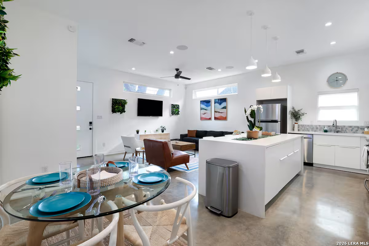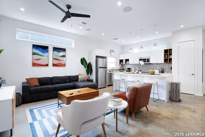 This one checks all the boxes. Built as new construction and meticulously maintained, this 3-bedroom, 2.5-bath East Side gem has been operating as a successful Airbnb and shows like a model home. Fully furnished and decorated to perfection, it's truly turnkey. Private gated entry, shaded by a beautiful mature pecan tree, gives it a unique charm you don't find in most downtown properties. With quality construction features like cellulose insulation, water softener, and a single-car garage-plus a prime location near downtown and St. Philip's-this is a rare opportunity for both investors and homeowners. Priced to move.