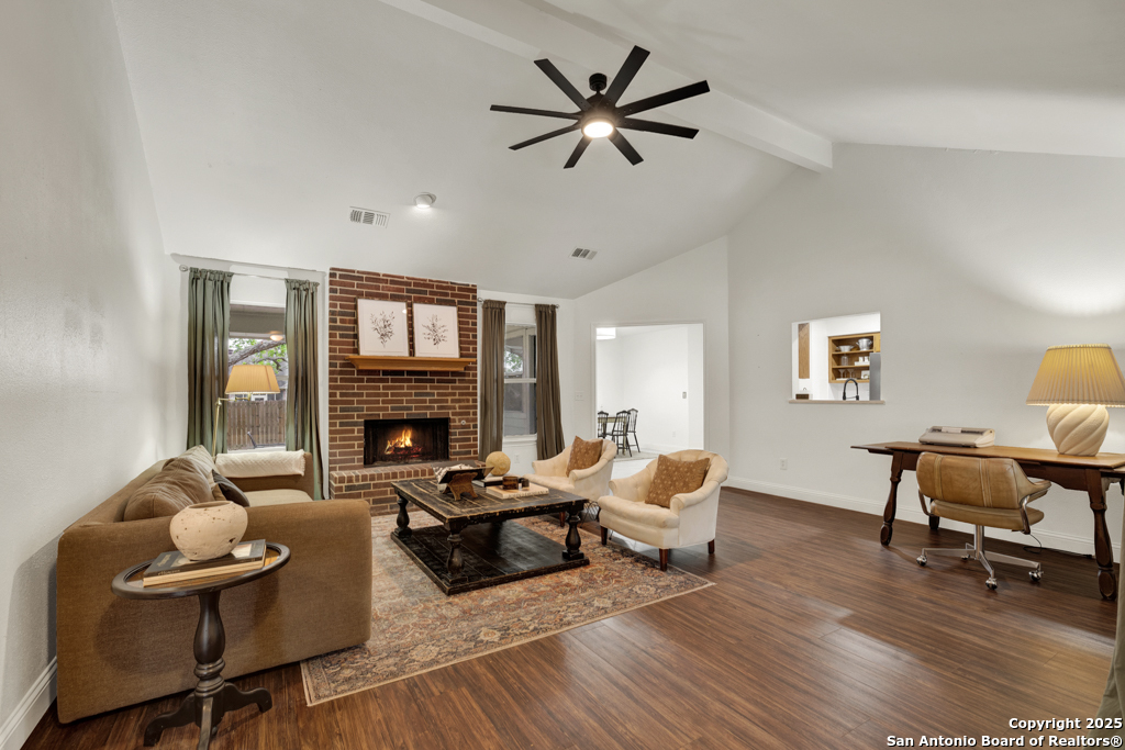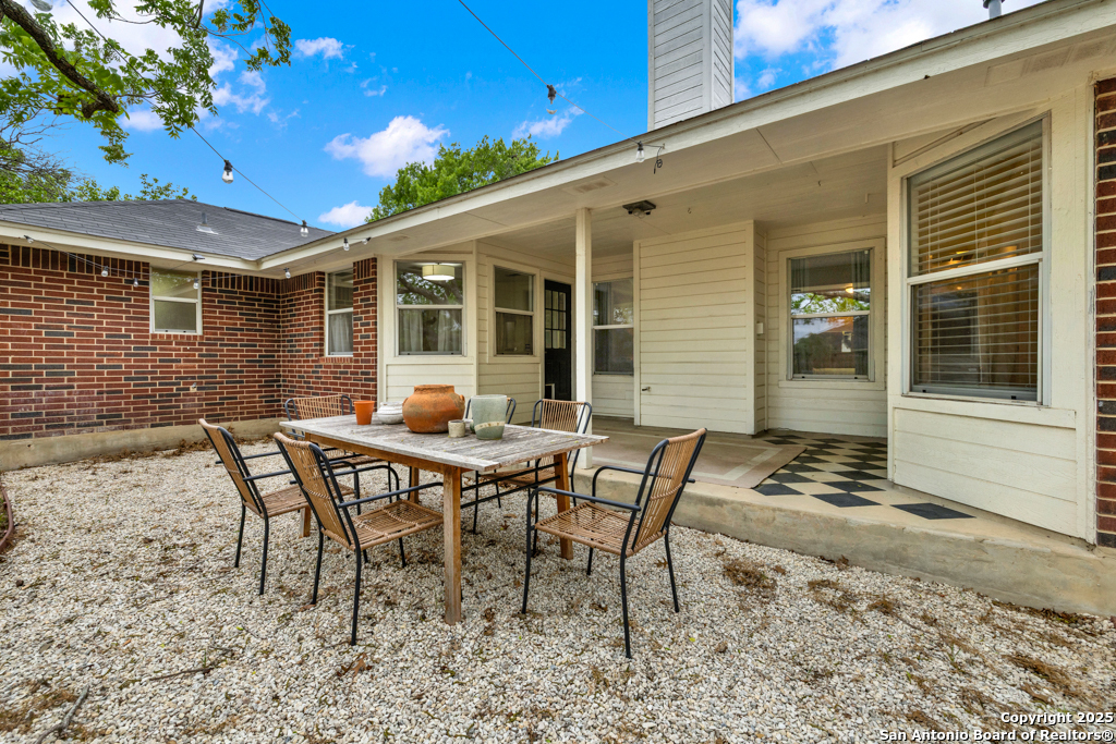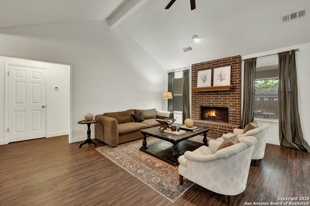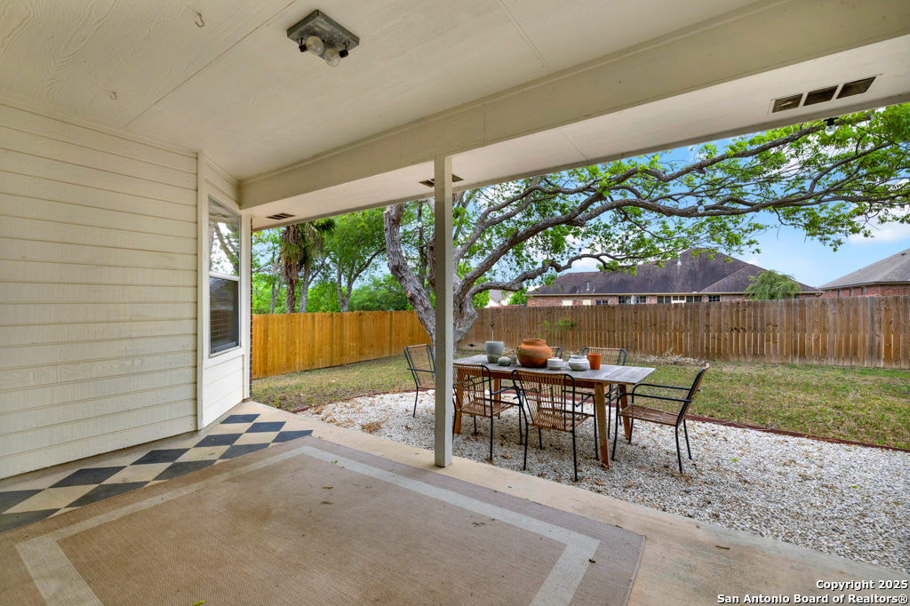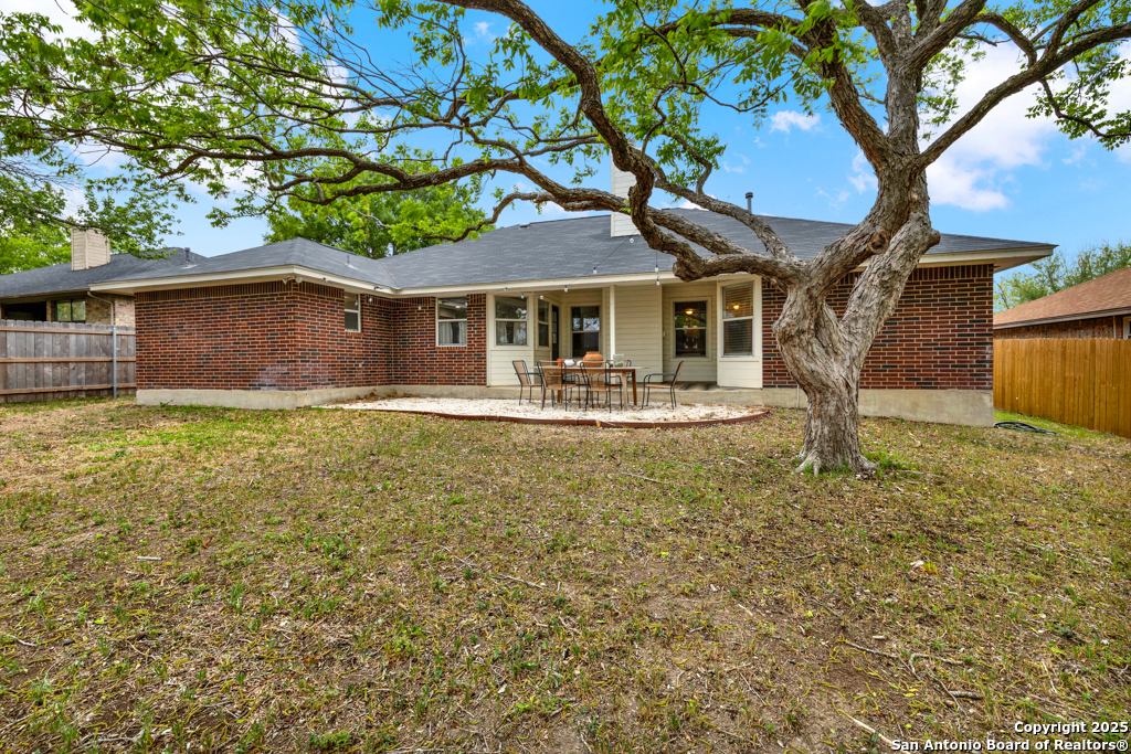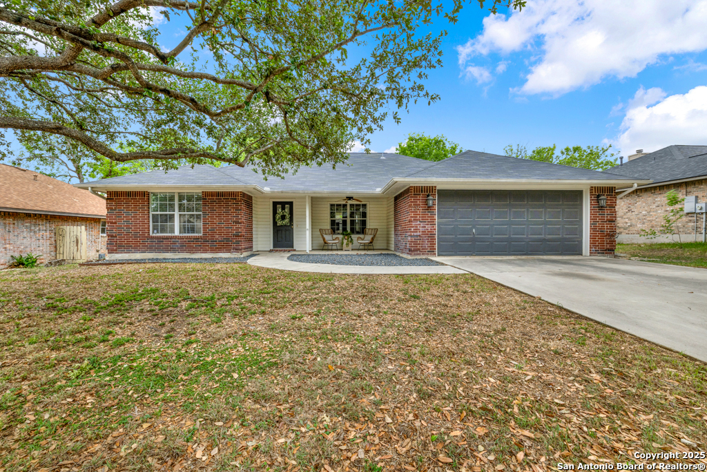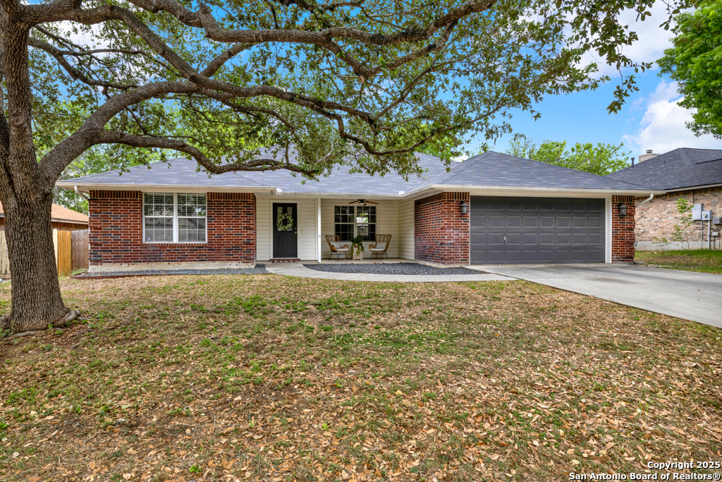 Welcome to this beautifully updated 3-bedroom, 2-bath home nestled on a quiet cul-de-sac-offering both comfort and convenience with no HOA! Step inside to discover high ceilings, floor-to-ceiling brick fireplace, and a spacious open-concept layout that seamlessly connects the living room, kitchen, and breakfast area-perfect for entertaining or relaxing at home. The kitchen has been tastefully renovated with calming neutral tones and offers both style and functionality. Say goodbye to carpet-this home features hard flooring throughout for easy maintenance and a clean, modern feel. Retreat to the light-filled master suite complete with a trey ceiling, dual vanities, a walk-in shower, and a generous walk-in closet. The two additional bedrooms are spacious and also feature walk-in closets, giving everyone plenty of room to unwind. Enjoy peaceful evenings or lively gatherings under the covered patio, ideal for outdoor entertaining. All of this, just minutes from shopping, dining, parks, and quick access to I-35. Don't miss your chance to make this move-in-ready home yours-schedule a showing today!