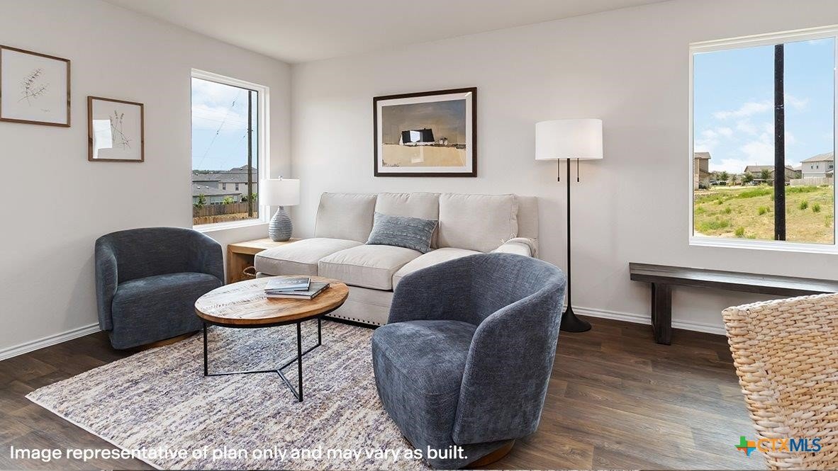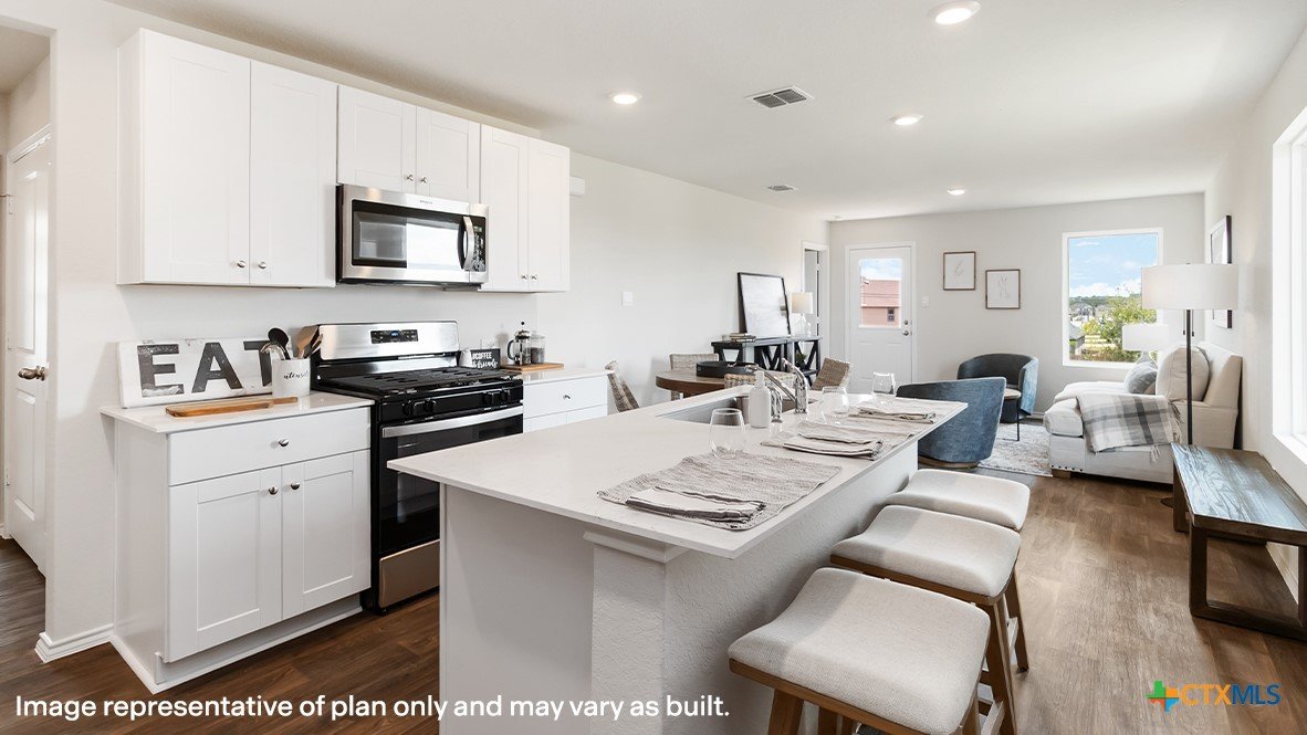 Welcome to the Atlanta, a beautifully designed one-story home in our Pecan Creek community in Temple, TX. Offering approximately 1,156 sq. ft., this thoughtfully crafted 3-bedroom, 2-bath layout is the perfect blend of comfort, style, and functionality. As you step through the foyer, you’ll find a convenient coat closet before entering the open-concept heart of the home – the kitchen and family room. The kitchen features a spacious island, stainless steel appliances, and plenty of counter space for both meal prep and casual dining. Just off the kitchen are two secondary bedrooms and a secondary bathroom, with easy access to the laundry room. Natural light fills the living room from large rear-facing windows, creating a warm and inviting space for relaxing or entertaining. Tucked away off the living room, the primary bedroom offers a peaceful retreat, complete with a walk-in shower and walk-in closet for plenty of storage space. Every D.R. Horton home has smart home technology built in. Feel connected as you control and secure your home through the Qolsys smart panel, through your phone, or even with your voice. Discover how the Atlanta can be the perfect place to call home. Contact us today to make it yours at Pecan Creek.