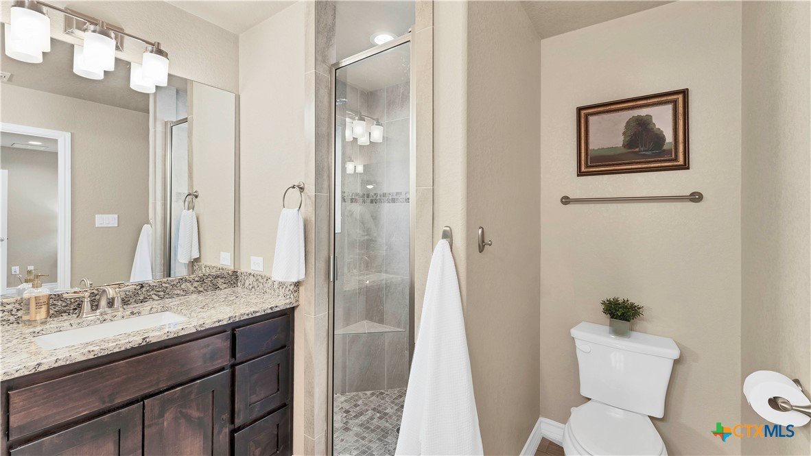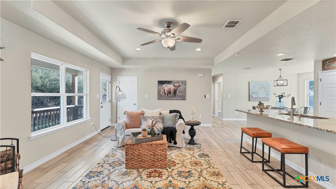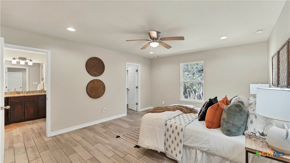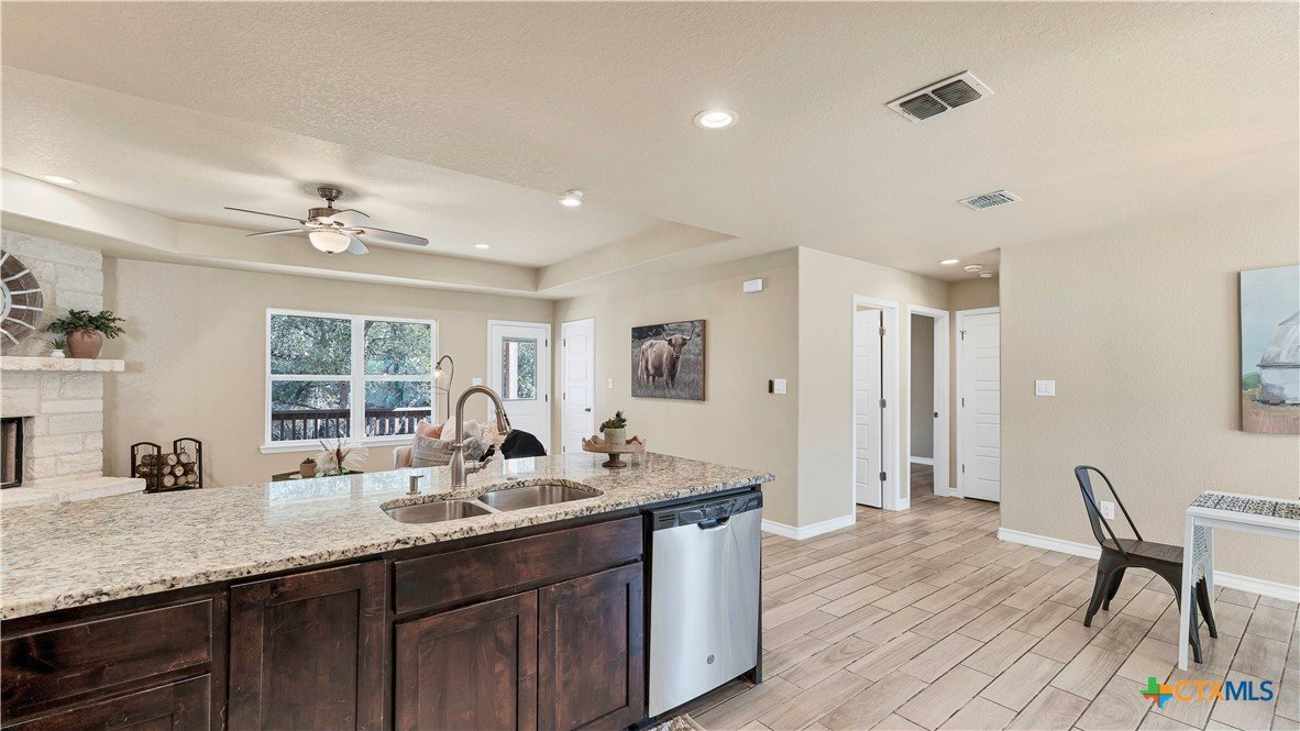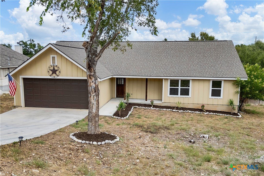 Welcome Home to the country! 1139 Persimmon Pass in Fischer, TX is conveniently located between I-35 and Hwy 281 with easy access to Austin, San Antonio, New Braunfels and San Marcos, yet with peaceful living in the country. This home sits on .54 AC with a dry creek running through the back of the property, mature trees and secluded back yard. This 1506 sq ft home with built in 2019 has 3 bedrooms and 2 baths, an open living space with the kitchen over looking the living area, a wood burning fireplace with stone surround and large dining space off the kitchen. The kitchen has custom wood cabinetry, granite countertops with large prep space for cooking, an electric range with built-in microwave plus dishwasher. The master bedroom suite has a walk in closet, double vanity, granite countertops with custom wood cabinets and walk in shower with tile surround. The laundry/utility room is conveniently located near the master bedroom and garage with storage. On the other side of the house are 2 additional bedrooms that share a guest bath. Head outside off the living room to the large private back yard, a storage room/workshop (22x25) with double garage doors and electricity. Get ready to enjoy the cooler fall weather with the back yard fire pit and a dry creek that runs through the back yard. 2 car garage, septic, no HOA, no city taxes.
