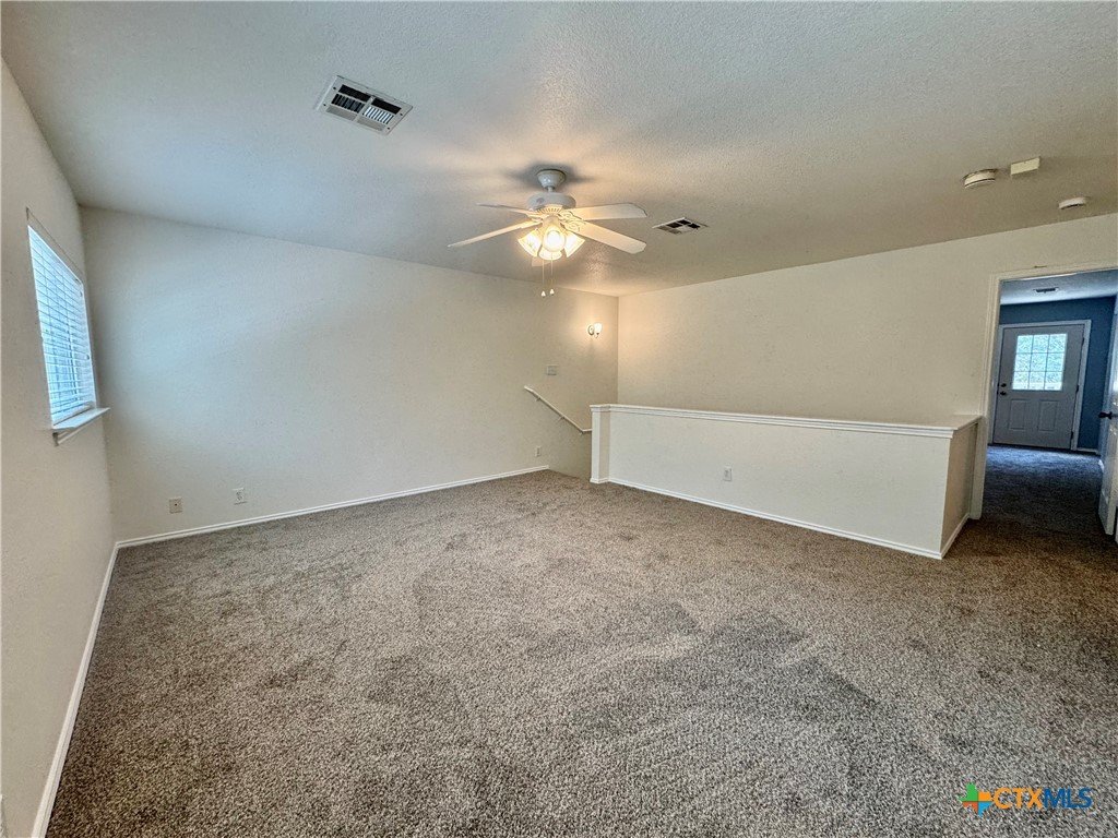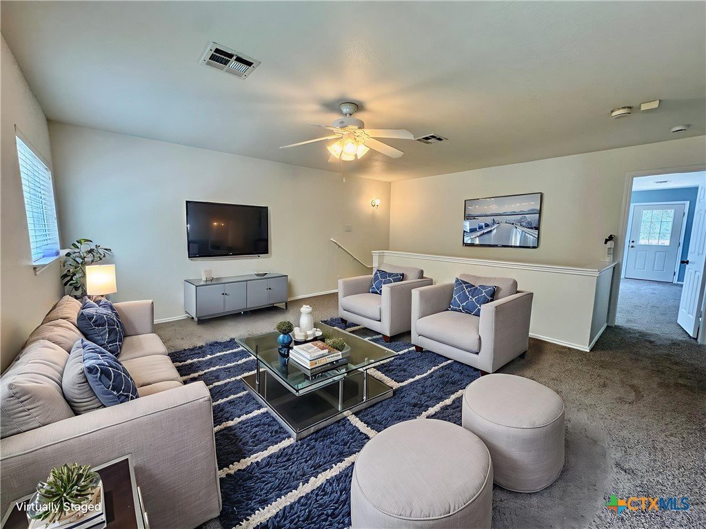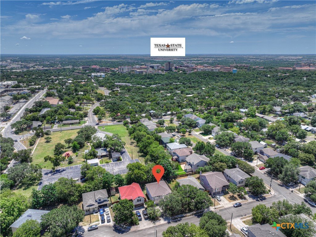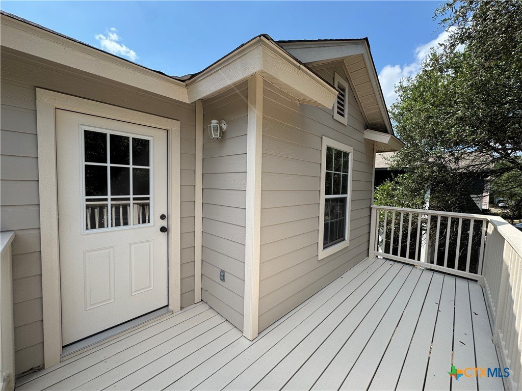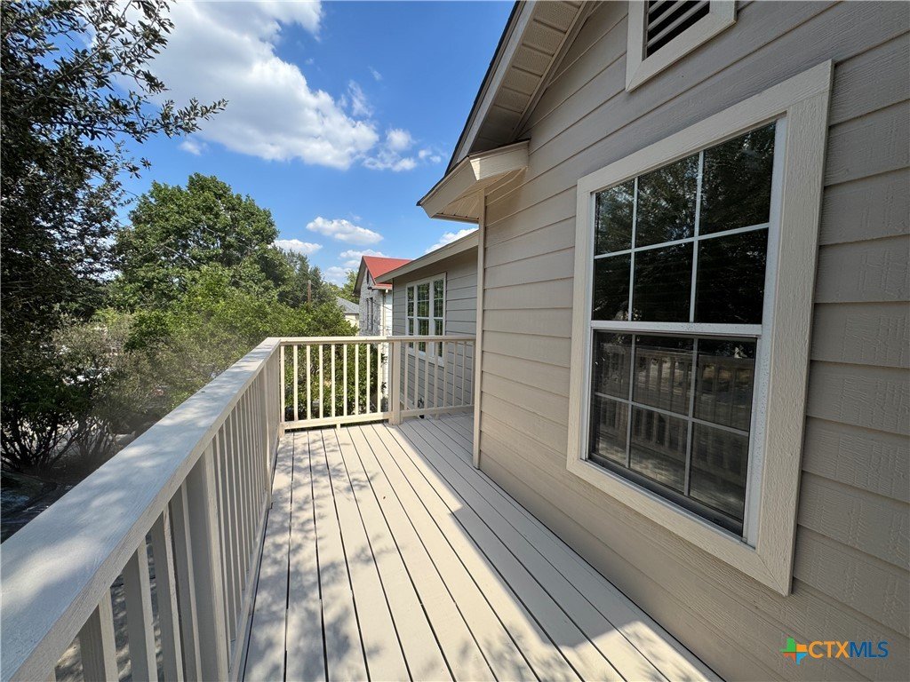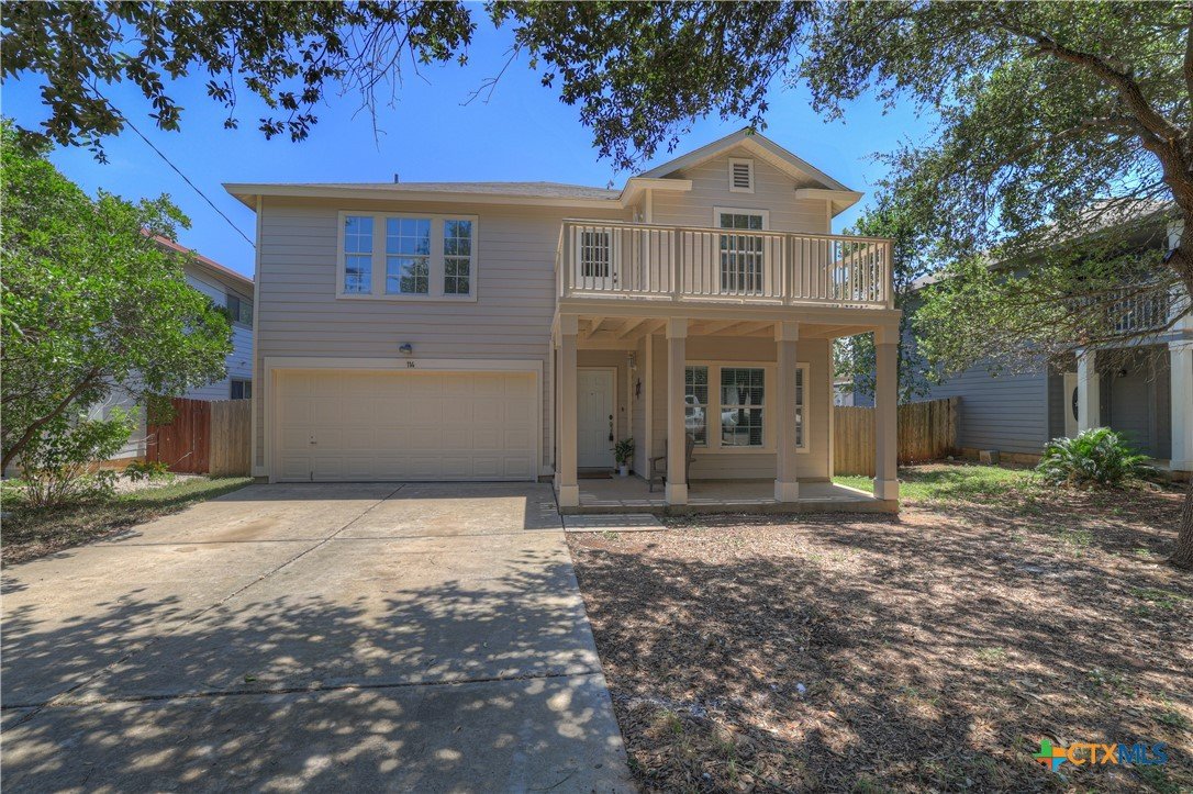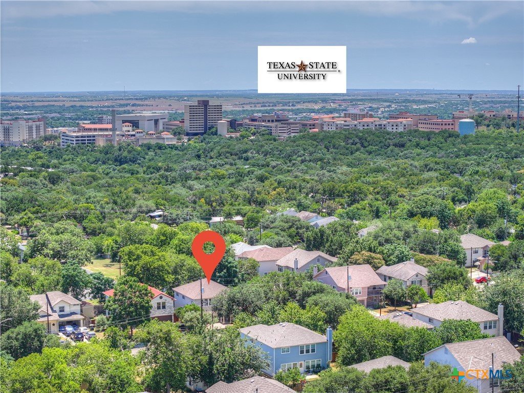 Significant Price Improvement!!! New paint, carpet, fixtures... This spacious two-story home in San Marcos offers 3 bedrooms, 2.5 bathrooms, and generous living spaces in a prime location near Texas State University and downtown. With two large living areas, a dedicated dining room, and additional island seating in the kitchen, there is plenty of room for family or entertaining. Downstairs has ceramic wood-look tile throughout. The kitchen includes ample cabinet storage and a large pantry located in the utility/laundry room. Upstairs, the expansive primary suite includes direct access to a second-story deck. The backyard offers enhanced privacy with no rear neighbors, a covered back porch, and a recently installed wood fence. Located on a quiet cul-de-sac in a small neighborhood just north of downtown, the home is within walking distance to a Texas State bus stop and surrounded by well-established neighborhoods. A strong value in a prime location—this home is priced to sell and move-in ready!