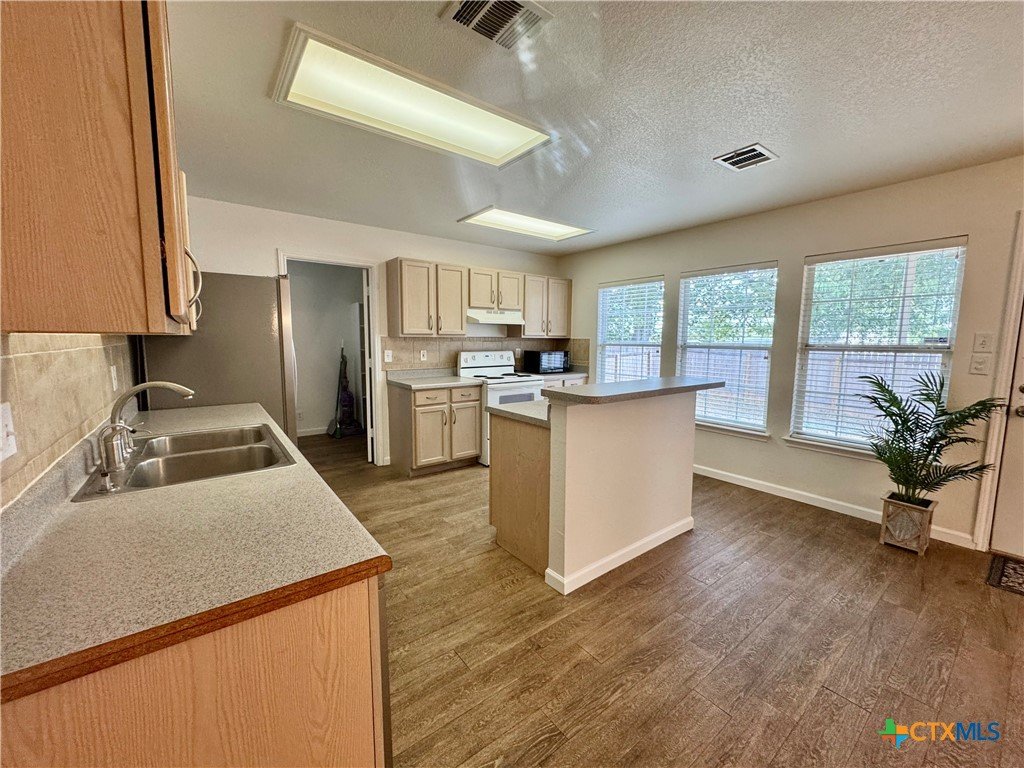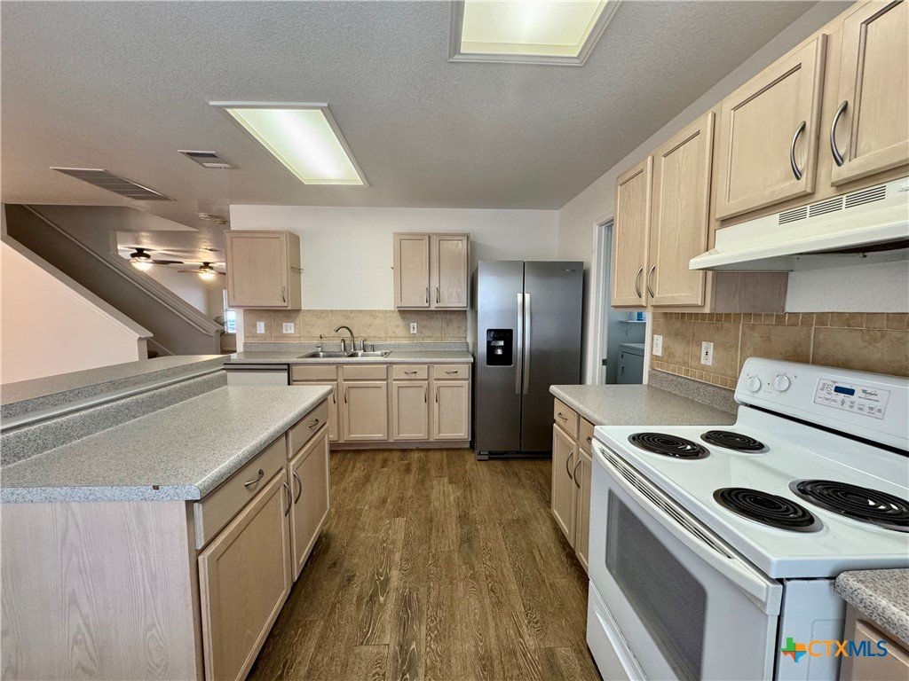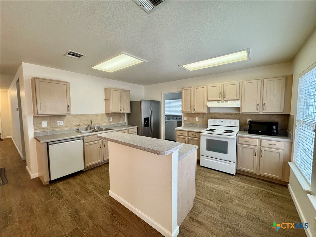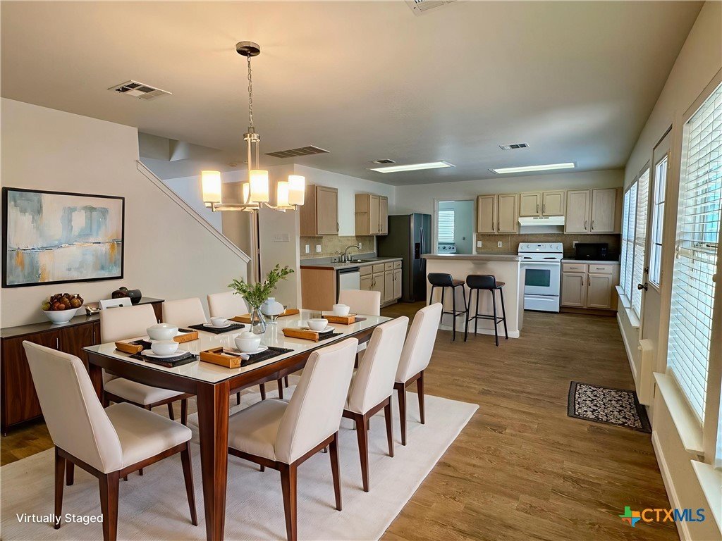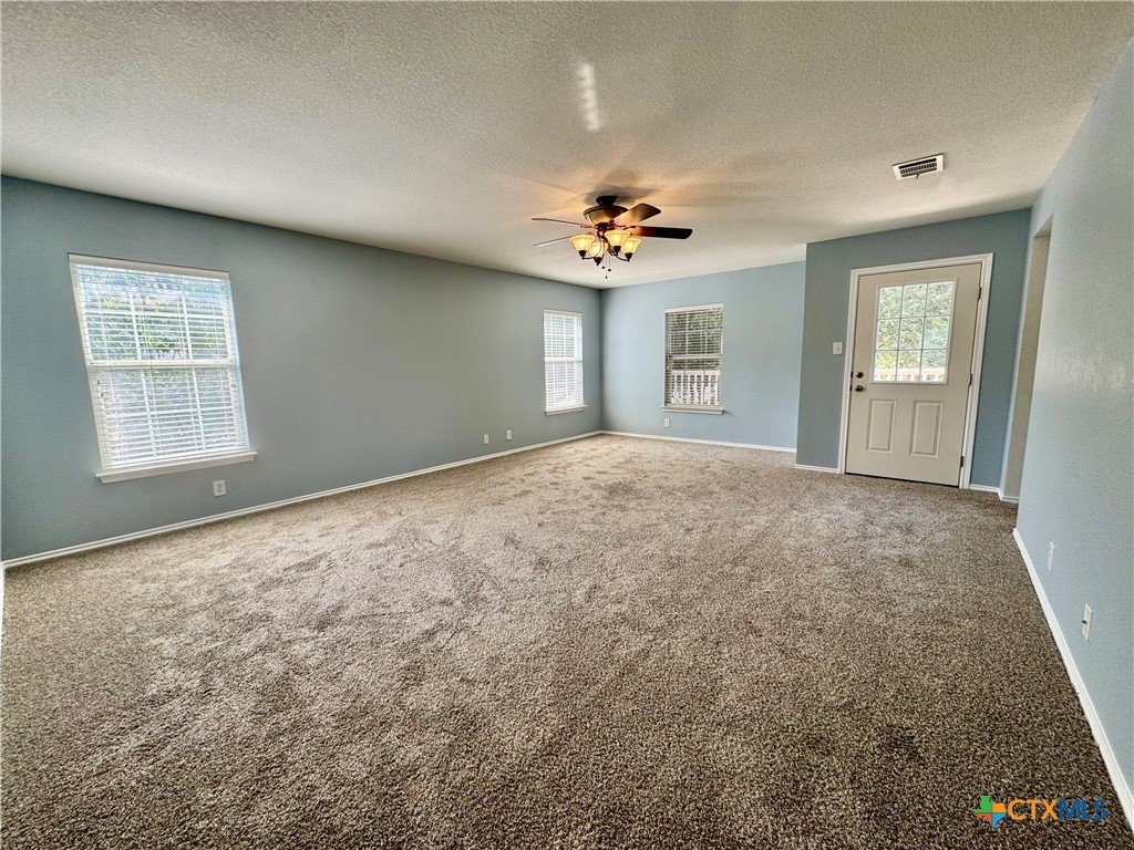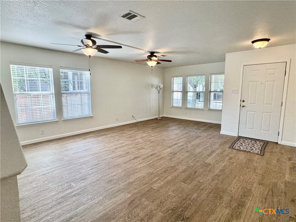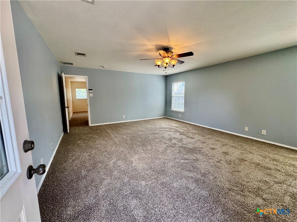 Significant Price Improvement!!! New paint, carpet, fixtures... This spacious two-story home in San Marcos offers 3 bedrooms, 2.5 bathrooms, and generous living spaces in a prime location near Texas State University and downtown. With two large living areas, a dedicated dining room, and additional island seating in the kitchen, there is plenty of room for family or entertaining. Downstairs has ceramic wood-look tile throughout. The kitchen includes ample cabinet storage and a large pantry located in the utility/laundry room. Upstairs, the expansive primary suite includes direct access to a second-story deck. The backyard offers enhanced privacy with no rear neighbors, a covered back porch, and a recently installed wood fence. Located on a quiet cul-de-sac in a small neighborhood just north of downtown, the home is within walking distance to a Texas State bus stop and surrounded by well-established neighborhoods. A strong value in a prime location—this home is priced to sell and move-in ready!