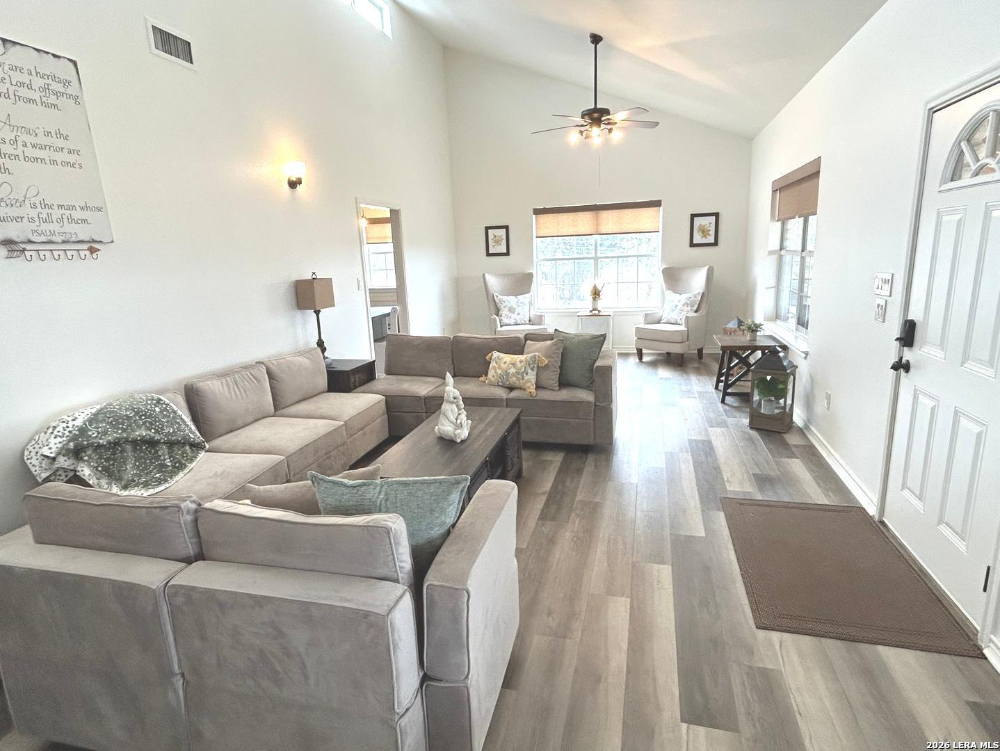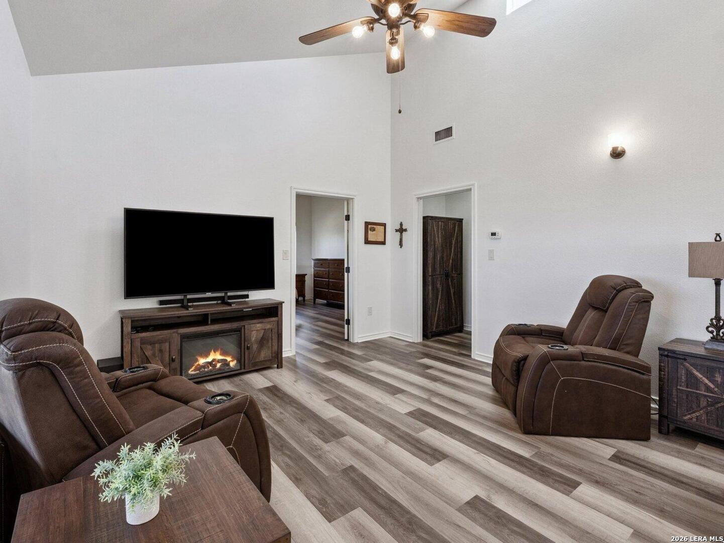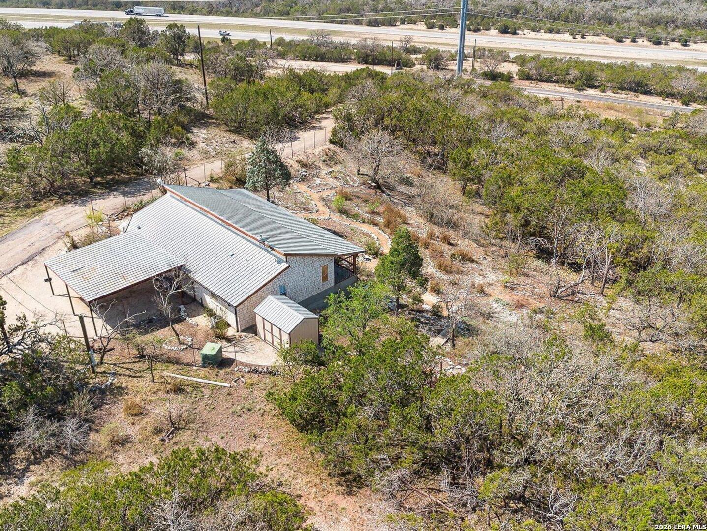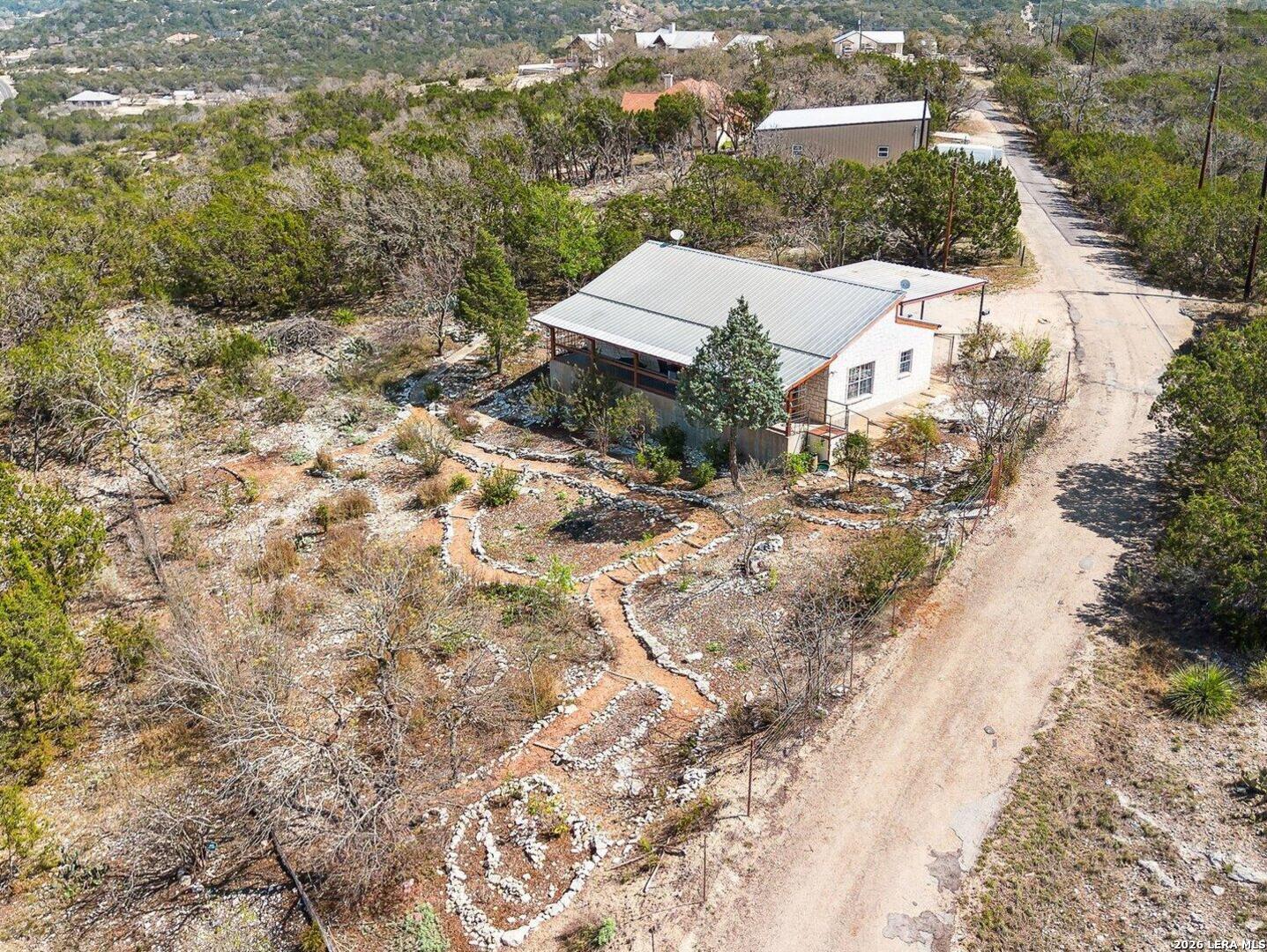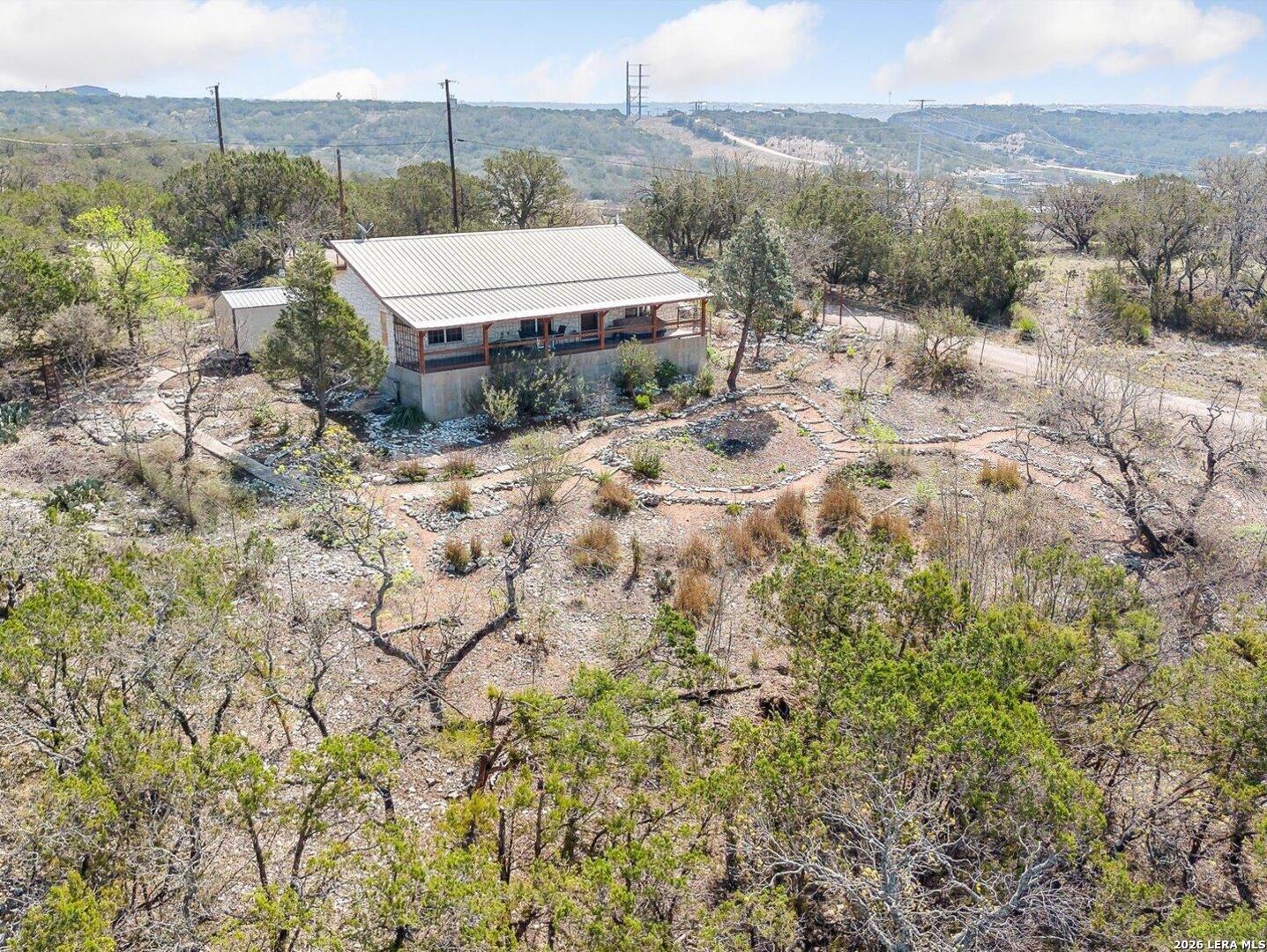 Enjoy watching the sunset every night from the large covered deck of this beautiful rock home located atop a hill with incredible westward-facing views of the Texas Hill Country. Along with impeccable views, this home had a NEW ROOF added back in May. Located off of a private road with an additional gated access to the lower property from the main road. This stunning remodeled home offers the perfect blend of modern living and rustic charm, just 1.5 miles west of the Kerrville Cross. Nestled on 10 wooded acres with fenced terraced garden/park area boasting dozens of flower varieties and abundant wildlife, you will forget you are less than 2 miles to the town of Kerrville with easy access to I-10 and Hwy 16. This gem offers high ceilings in living room and main bedroom with ceiling fans for added comfort, plus a Queen Murphy Bed in guest room, and solid wood doors throughout. All kitchen appliances plus washer/dryer, 2 refrigerator/freezers, & water softener are included. With a large utility room, granite countertops in the kitchen and bathrooms, durable laminate flooring throughout, and tile flooring in the main bathroom, maintenance is a breeze. Custom roller shades grace the windows, in-wall spray foam insulation provides energy efficiency. Another great feature is the extra 275 gallon water tank which provides peace of mind if ever needed. The excellent well water service is provided & monitored by the Saddle Mountain Water Cooperative, and owners recently installed a new water pump, and pump saver. Additional features that will convey are the ring doorbell cameras, portable fireplace console, furnishings if the buyer would like & decor. With its metal roof & single-story layout, this 1,529 sq ft, 2 bedroom, 2 bathroom residence exudes durability, accessibility, and convenience. Along with the new roof, an attached 2-car carport and newly built custom storage shed are located next to the home, with 40' shipping container on lower portion of property for all your storage needs. There is also a large graded area just waiting for your new barn, shop, or additional home(s) to be built! You'll fall in love with this property located within peaceful Kerrville Country Estates. In addition to living in this wonderful community, you will have access to the neighborhood's private lake and covered picnic area which offers plenty of room to entertain and explore. Whether you're watching wildlife, enjoying the views, or making use of the mature trees for shade, this home is perfect for country living close to town. Don't miss out on this one-of-a-kind property! Schedule a viewing and make this dream home yours.