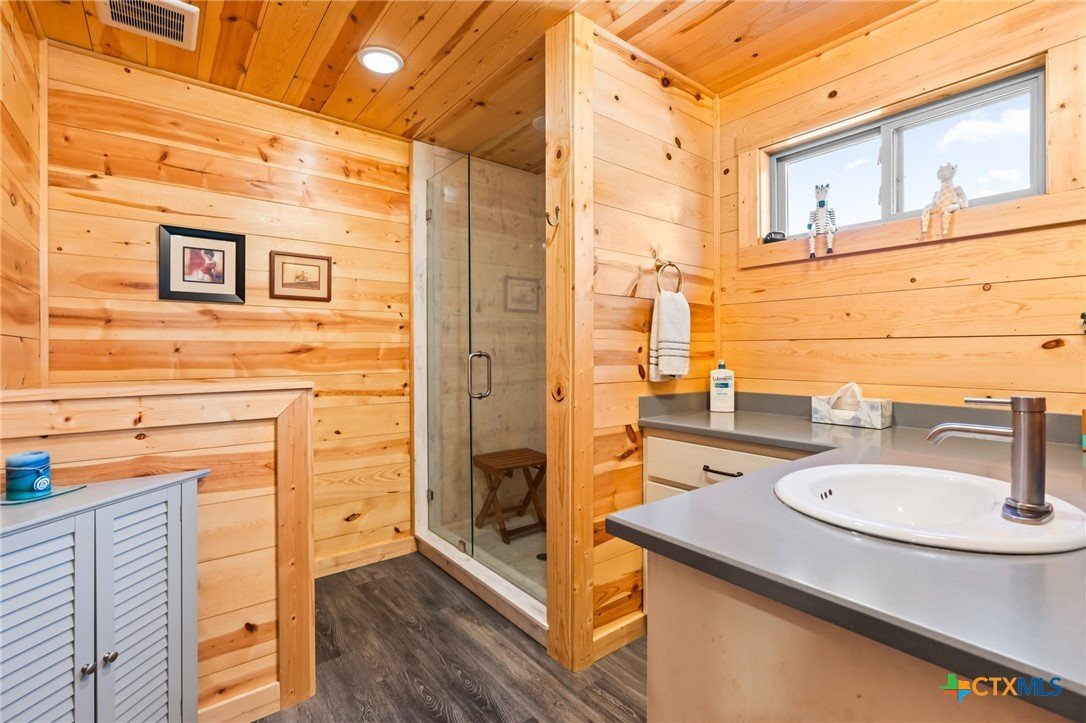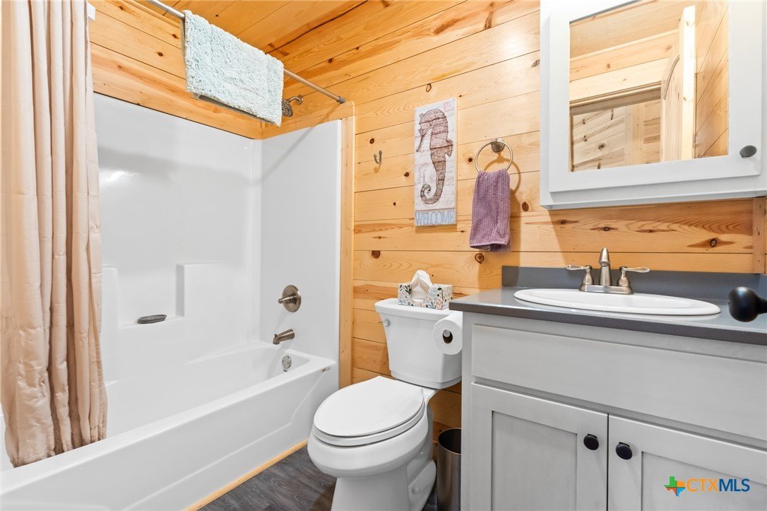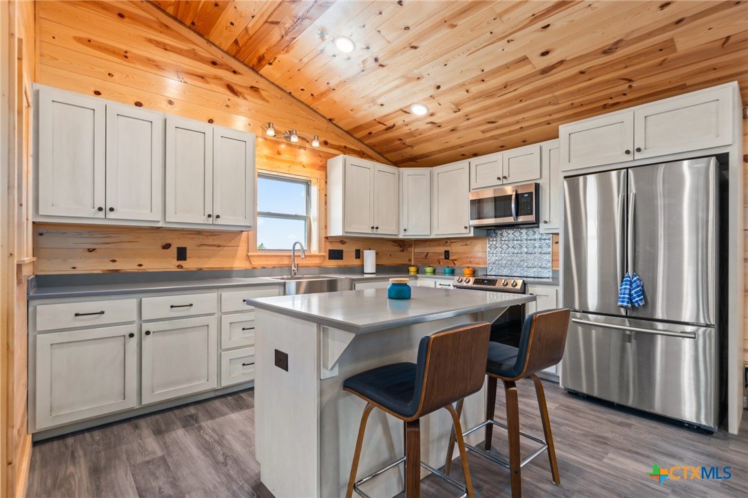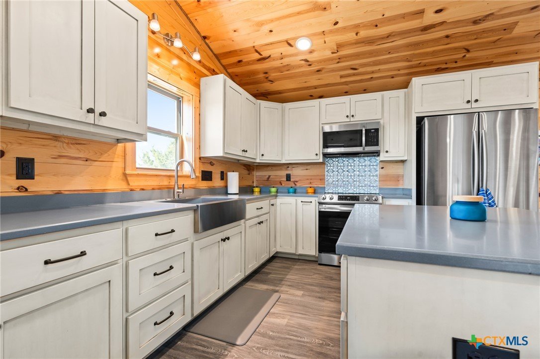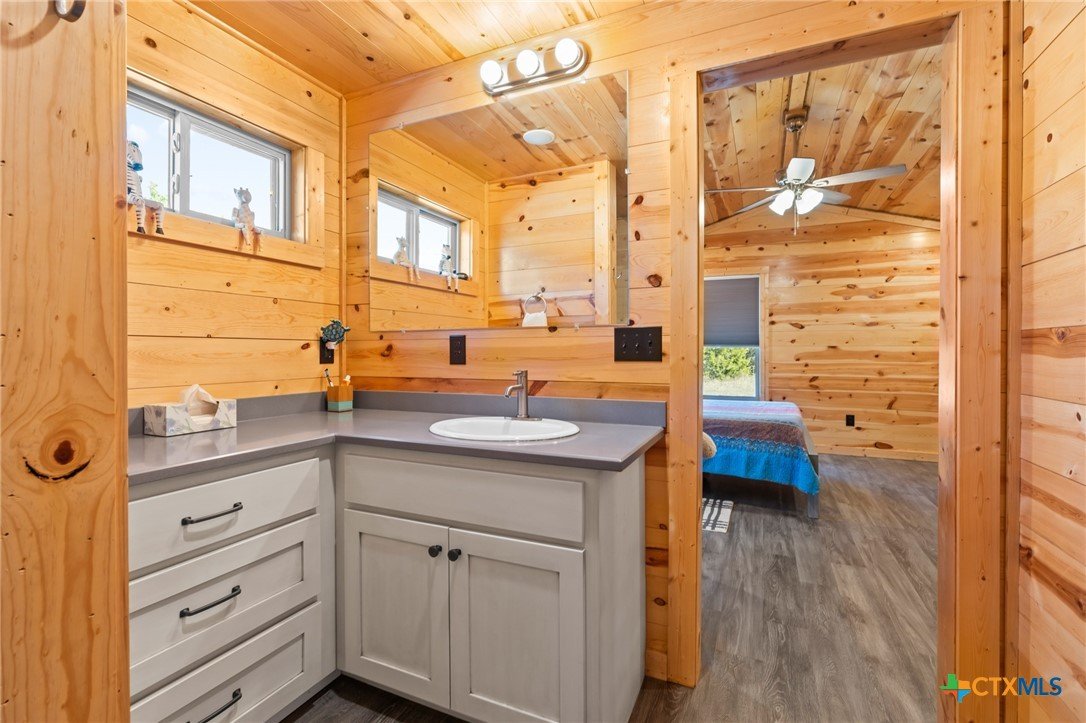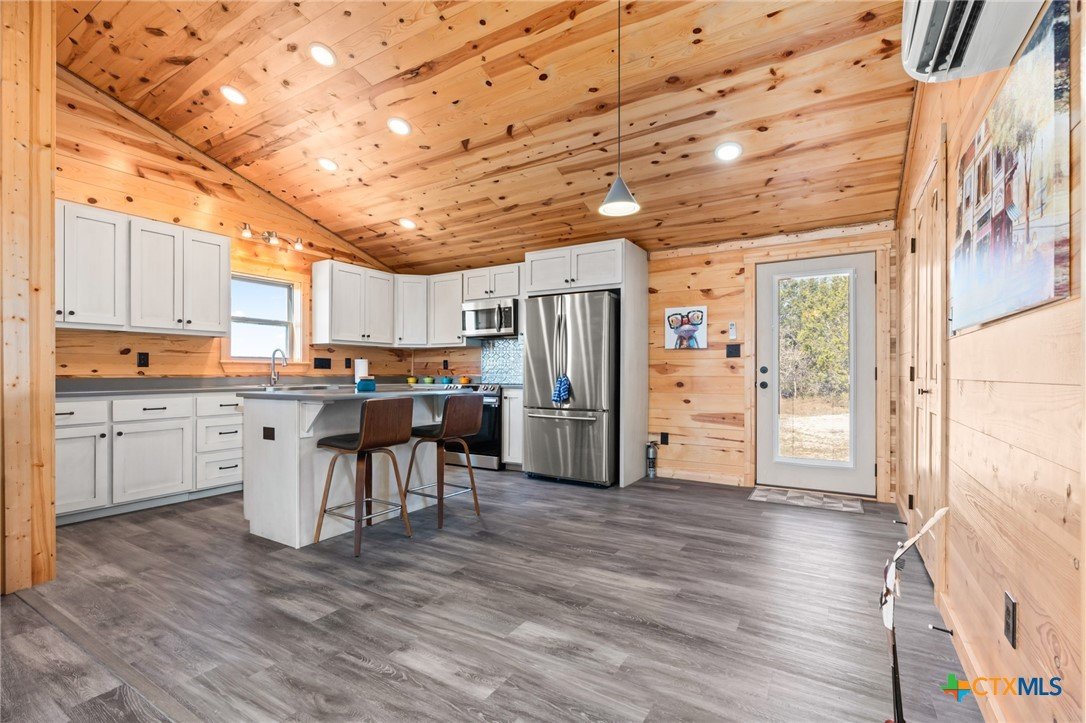 3 bedroom, 2 bath home with approx. 1,313 sq ft of living space situated on 5.42 acres, known as Lot 85. The home features high vaulted ceilings with natural woodwork throughout. Walking into the home you are greeted to a spacious living room with the kitchen off to the side. The kitchen boasts stainless steel appliances, a center island, and plenty of cabinet space for storage. The home has 3 roomy bedrooms, with the primary offering an ensuite bathroom with a walk in shower. On the front porch you have a stone fireplace, perfect for enjoying your morning coffee or hosting family and friends. There is a one care garage on the property. Well and septic are on site. The home also has a 22Kw whole house generator. The property is centrally located, being approximated 30 minutes from Lampasas & Gatesville, 15 minutes to Copperas Cove, and an hour and a half from Austin. This property is a part of a subdivision and subject to deed restrictions.