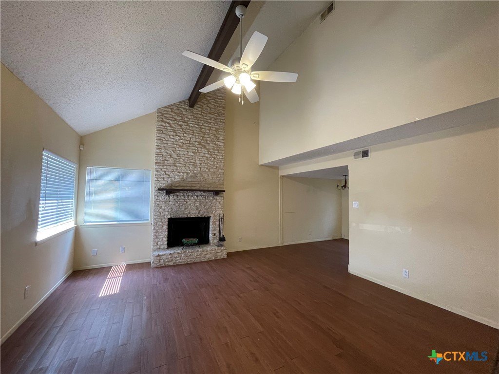 Well established neighborhood, minuets from the West Gate of Fort Hood. Wonderful floor plan great utilization of space. The living room has a beautiful floor to ceiling fireplace, vinyl plank flooring and a ceiling fan. The kitchen offers a gas stove, double sink, plenty of cabinets and counter space. High traffic areas have vinyl plank flooring, carpets in one bed room, stairwell and landing, all the bedrooms have ceiling fans.