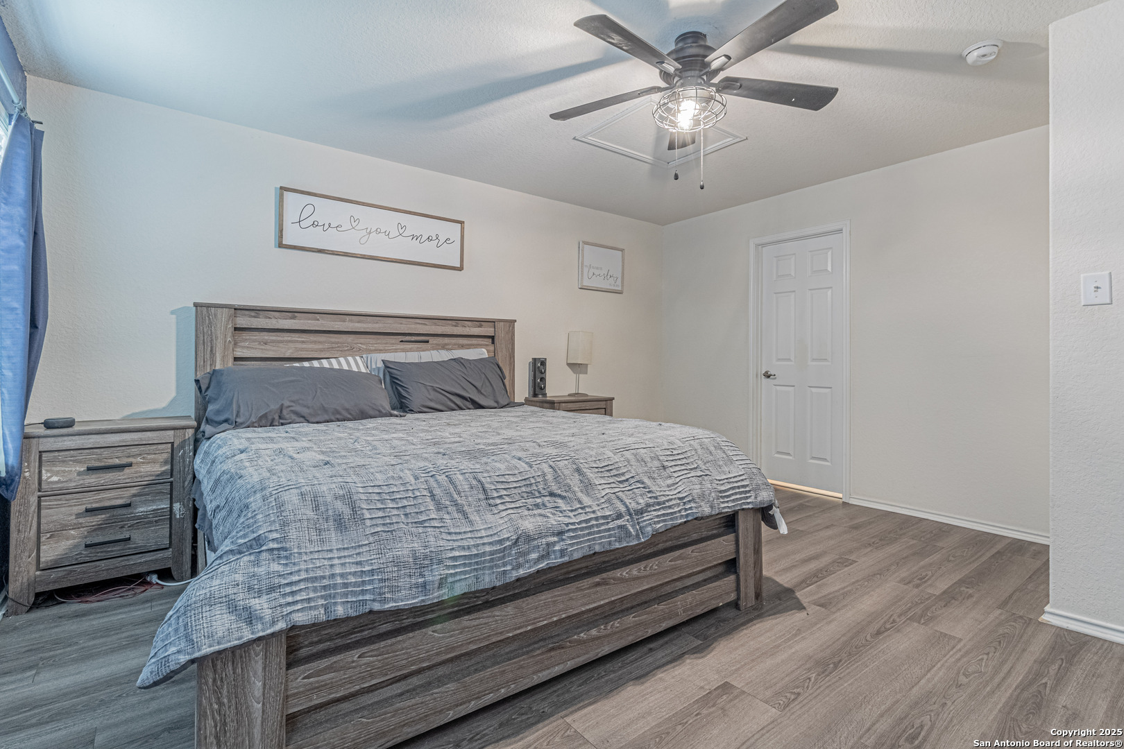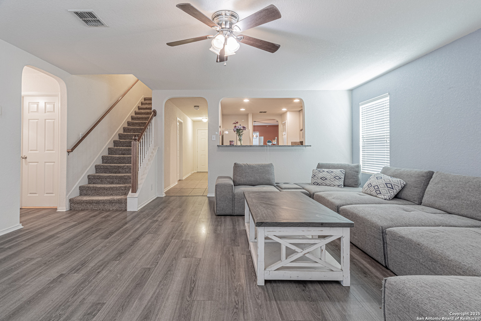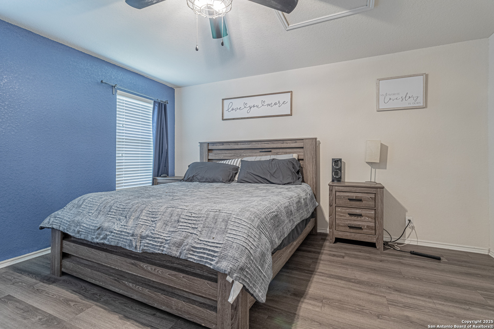 Tucked away in the desirable gated community of Dove Meadow, 11410 Durango Way features 4 bedrooms, 2.5 bathrooms, and generous living spaces designed for comfort and connection. The primary suite is conveniently located on the main level and features a walk-in closet and private bath. Wood-like laminate flooring flows through the main level, complemented by ceramic tile in the kitchen and plush carpet in all bedrooms. Upstairs, you'll find three spacious secondary bedrooms and a large game room-perfect for movie nights, a play area, or a second living space. The kitchen is highlighted by granite countertops and a functional layout ideal for gatherings. Additional features include a laundry room with extra storage space and ceiling fans throughout. The backyard offers a peaceful retreat with mature trees and space to create your own outdoor oasis. With easy access to schools, shopping, and major roads, this move-in-ready home checks all the boxes!