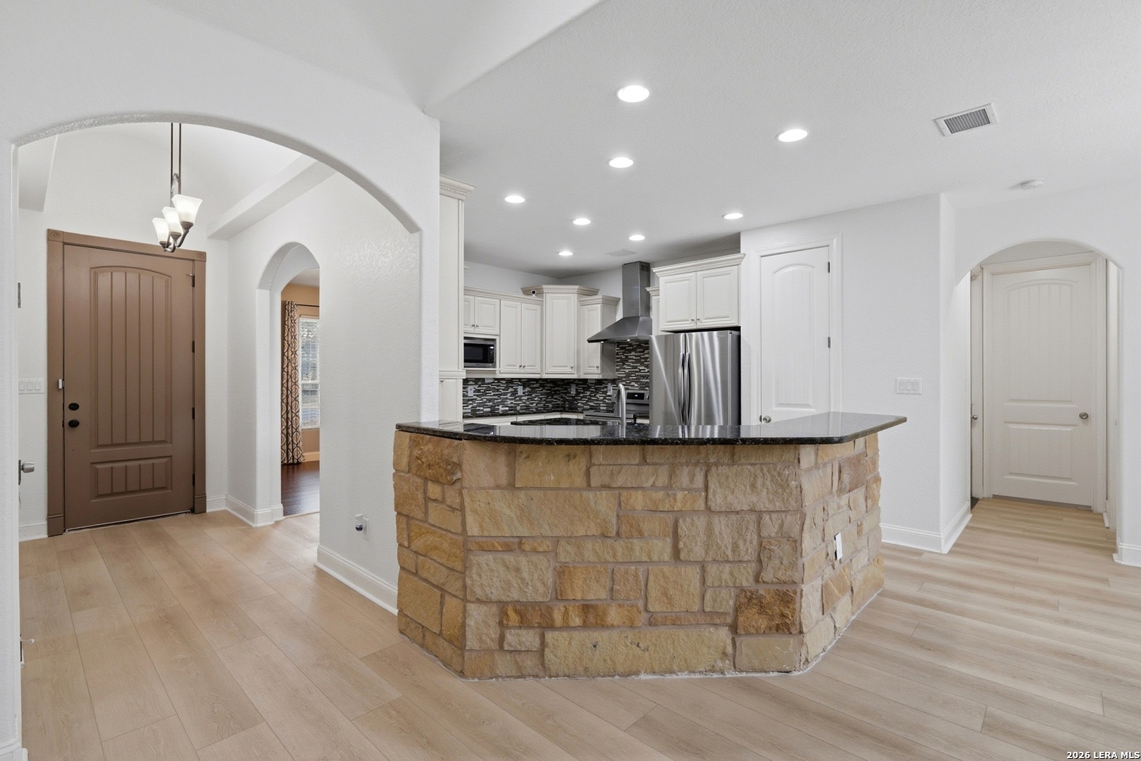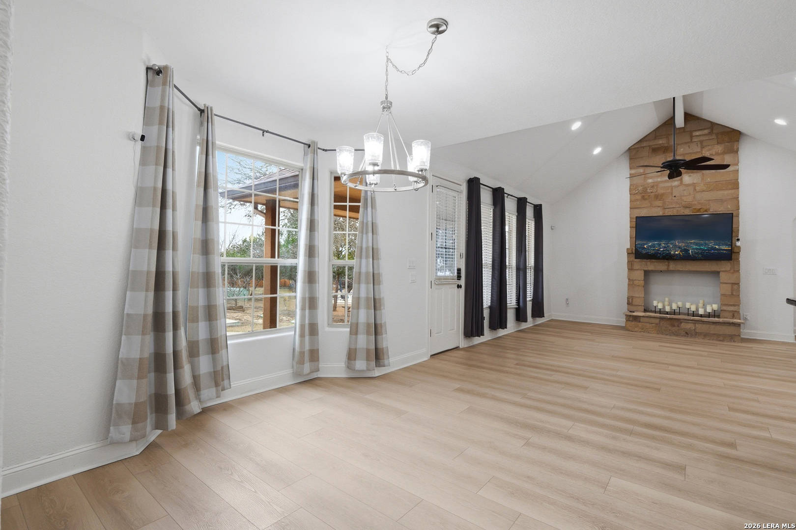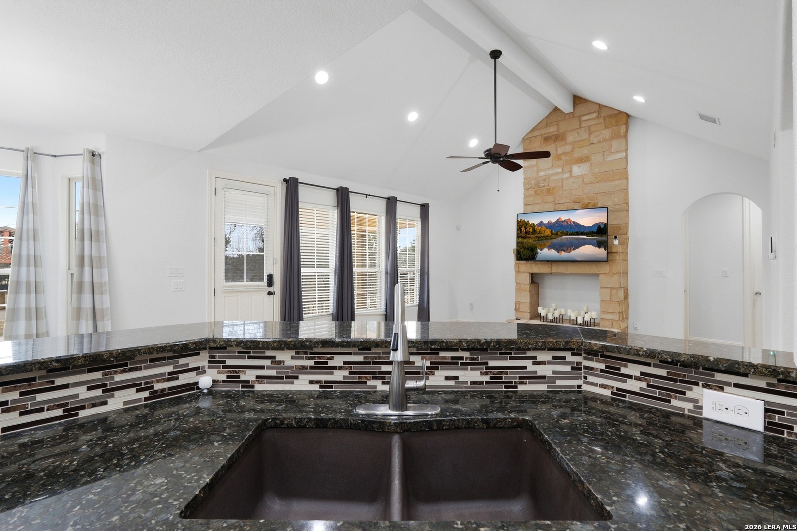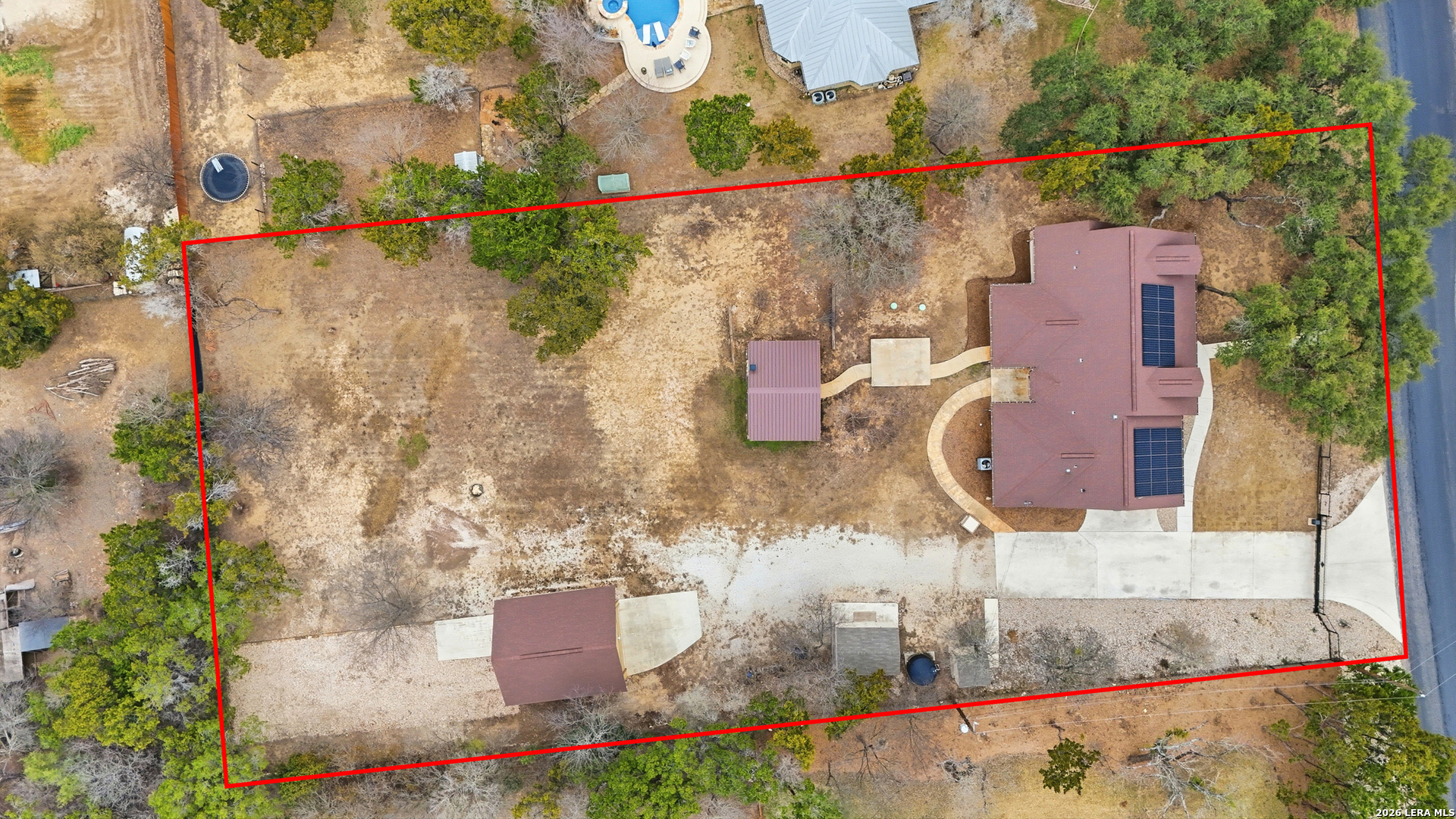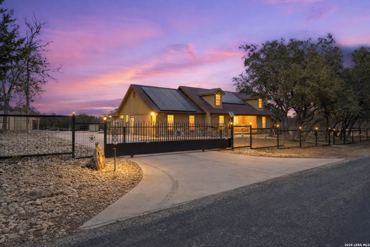 Open House: February 13, 2026 from 1PM - 4PM. Tucked beneath mature oaks on a sprawling lot, this stunning Helotes home offers a rare combination of privacy, efficiency, and thoughtful upgrades. Freshly repainted interiors welcome you with a warm, modern palette and light wood flooring throughout. The chef's kitchen features granite counters, stainless steel appliances, and ample cabinetry, all anchored by a striking stone breakfast bar. The spacious living area boasts a vaulted ceiling and floor-to-ceiling stone fireplace, perfect for cozy evenings. The split bedroom layout offers comfort and flexibility, with secondary bedrooms served by a full bathroom-ideal for guests, family, or a home office. The primary suite features a private en-suite with a shower only, creating a spa-like escape. Outside, an entertainer's dream awaits-a fully equipped outdoor kitchen under a custom metal-roofed pavilion. Enjoy the Texas sunsets or host unforgettable gatherings with ease. The home is also equipped with solar panels and includes a massive 1,200 sqft detached two-story garage, ideal for a workshop, home business, or future conversion. The neighborhood does not have an HOA so your options are limitless.This Hill Country retreat is ready to impress!