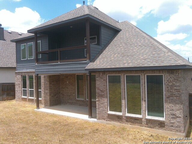 Stunning 2-Story Retreat with Designer Touches & Prime Location! Step into over 3,300 sq ft of beautifully crafted living space featuring 4 spacious bedrooms (2 upstairs, 2 downstairs) and 3.5 luxurious baths. The main-level owner's suite offers a spa-like ensuite with a super shower, while a private in-law suite adds flexibility and comfort. Highlights Include: Open-concept layout with soaring ceilings and a dramatic fireplace accented by a raised hearth and cedar mantle, Gourmet kitchen with 42" white cabinetry, upgraded slate built-in appliances, wet bar, and formal dining area, Light-filled study perfect for remote work or creative pursuits, Upstairs game room opens to a covered balcony-ideal for entertaining or relaxing, Custom blinds throughout and pre-plumbed for water softener. Community Perks: Enjoy neighborhood amenities including a park, playground, and scenic jogging trails. Conveniently located near top-rated schools, dining, shopping, and just minutes from IH-35 for easy commuting. Move-In Ready-Your Dream Home Awaits!