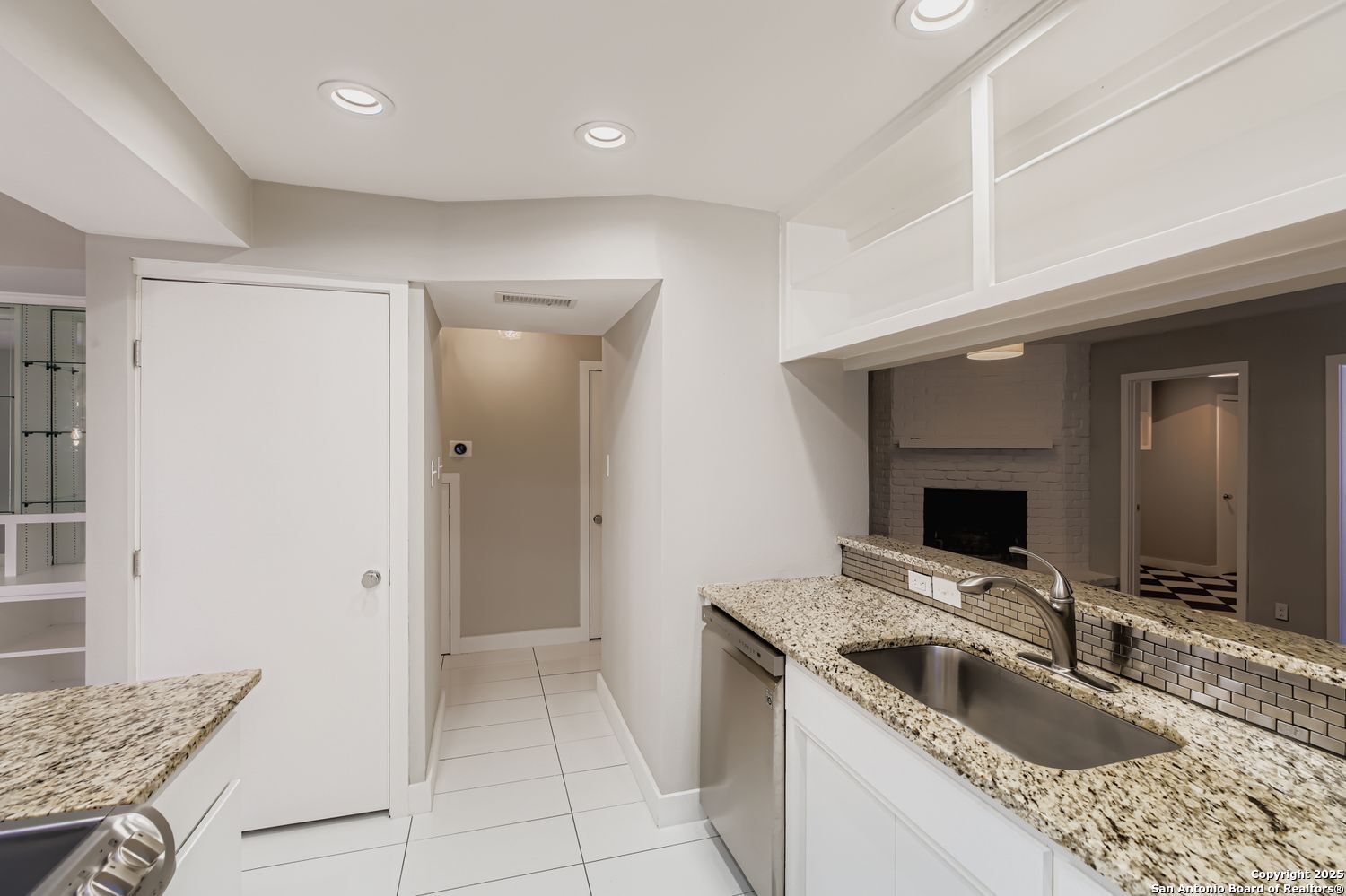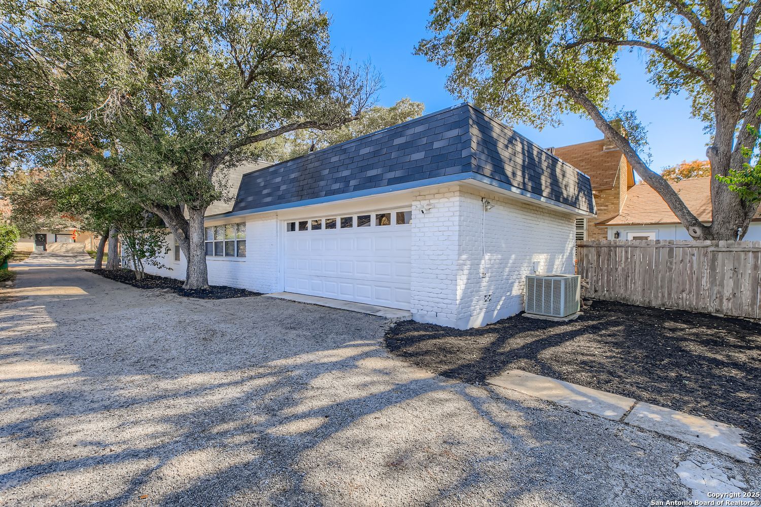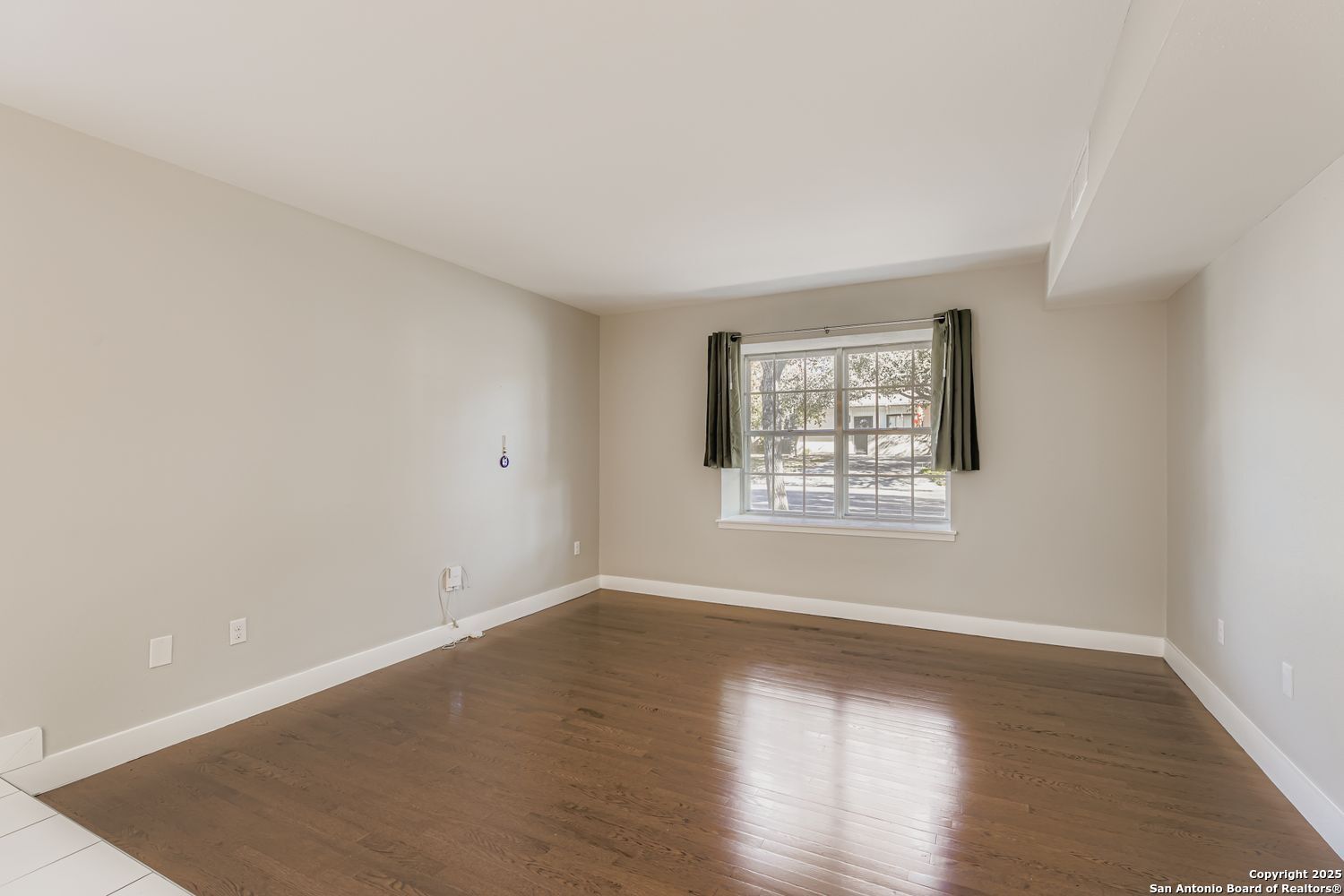 Discover effortless living in this beautifully updated townhome in the desirable Whispering Oaks community. This spacious two-story layout features 2 bedrooms and 2 full bathrooms plus a 1/2 bathroom along with multiple living and flex spaces designed for comfort and versatility. Step inside to find modern lighting/ceiling fans and porcelain tile and flooring that carry throughout the main living areas. Living room and family room boast wood floors. Kitchen with plenty of cabinets and stone counters its ready for your gourmet meal prep. Includes refrigerator. The home offers both a living room and a separate family room with a cozy wood-burning fireplace, plus a dedicated dining room for gatherings. An extra featured flex room provides the perfect spot for a home office, movie room, gaming space, or creative studio-whatever suits your lifestyle. The owners suite with updated marble vanity and shower area are the perfect retreat after a long day. Enjoy the convenience of a 2-car side-entry garage and the privacy of a greenbelt behind the home. Located in one of San Antonio's most established and tree-filled neighborhoods, this house combines modern updates with classic Whispering Oaks charm-a perfect blend of comfort, style, and convenience.