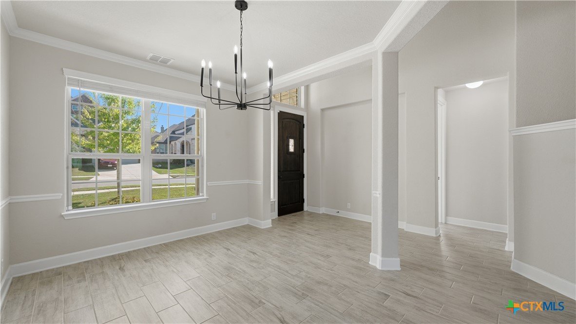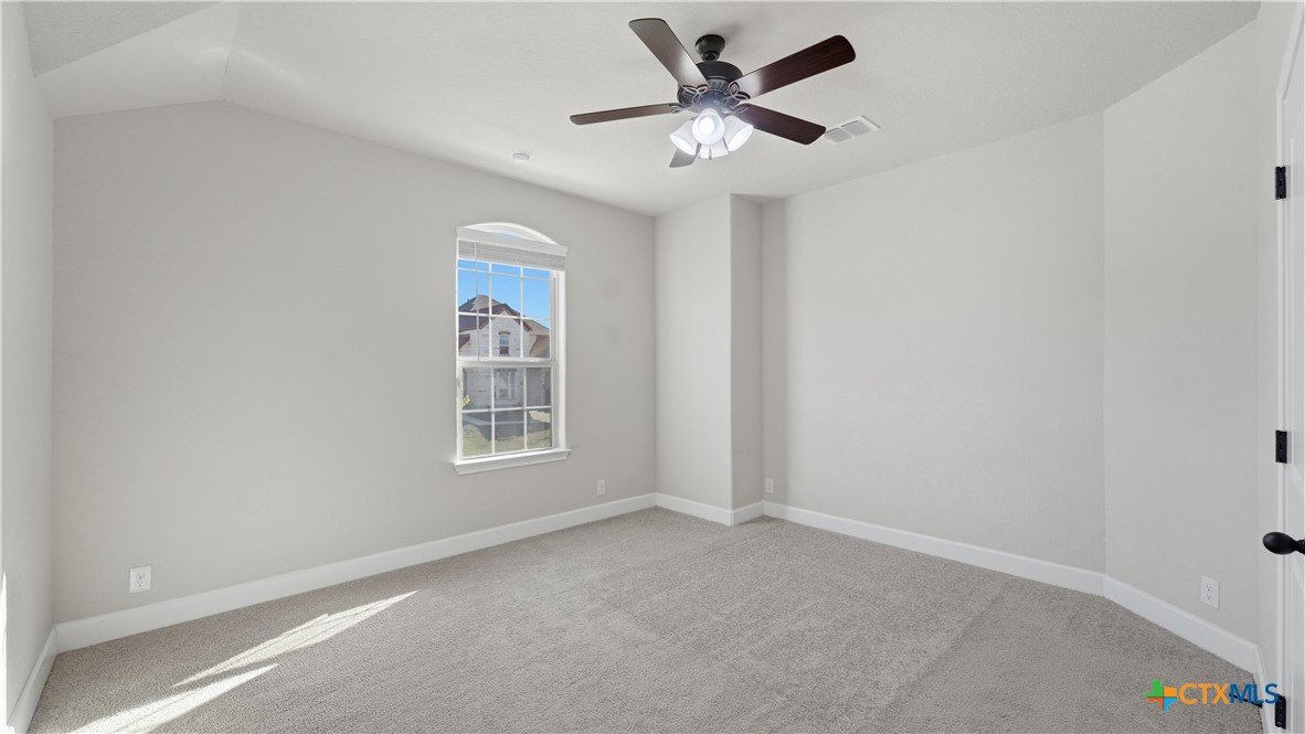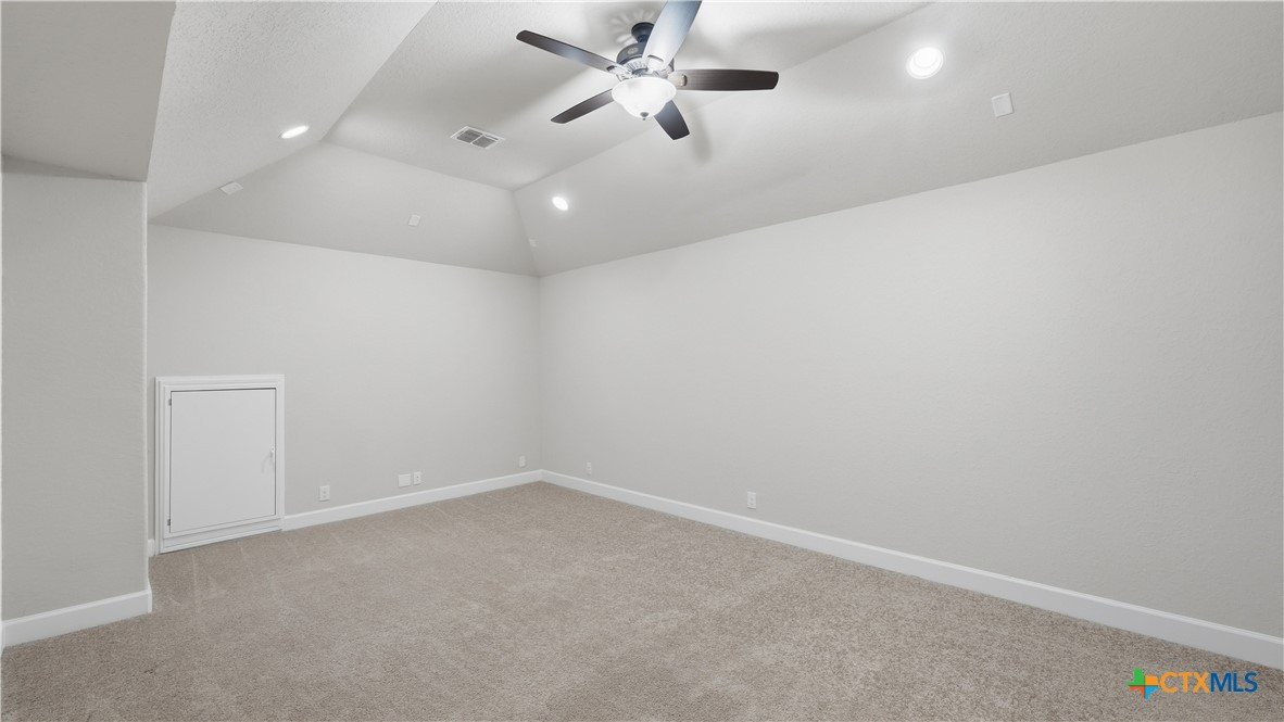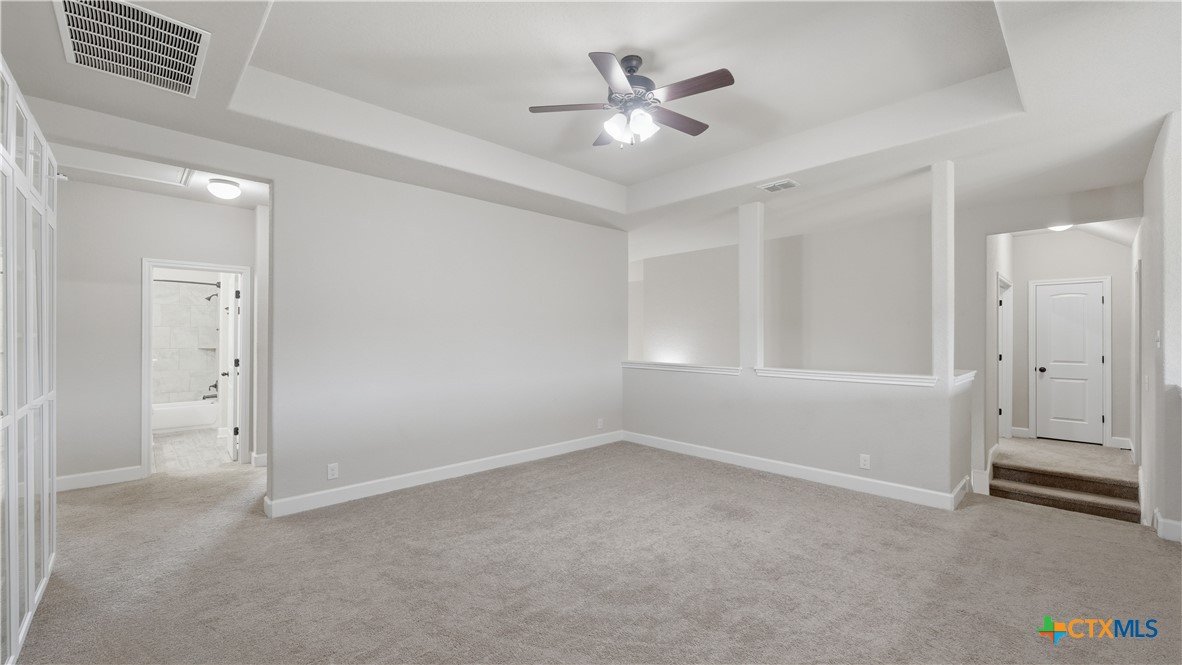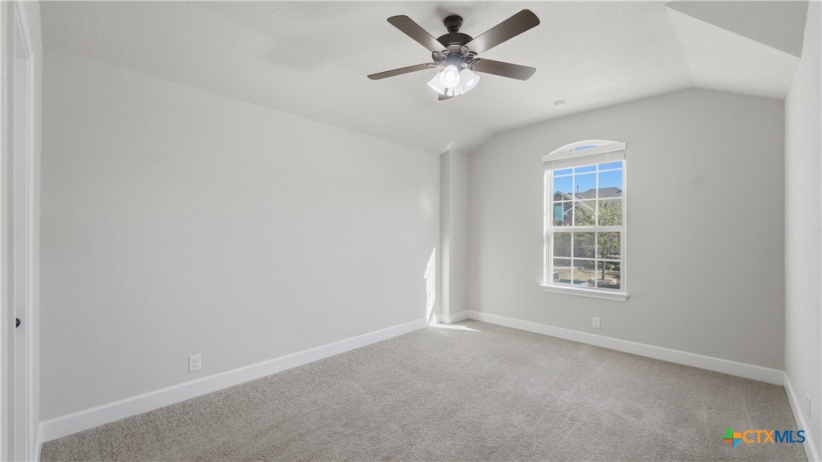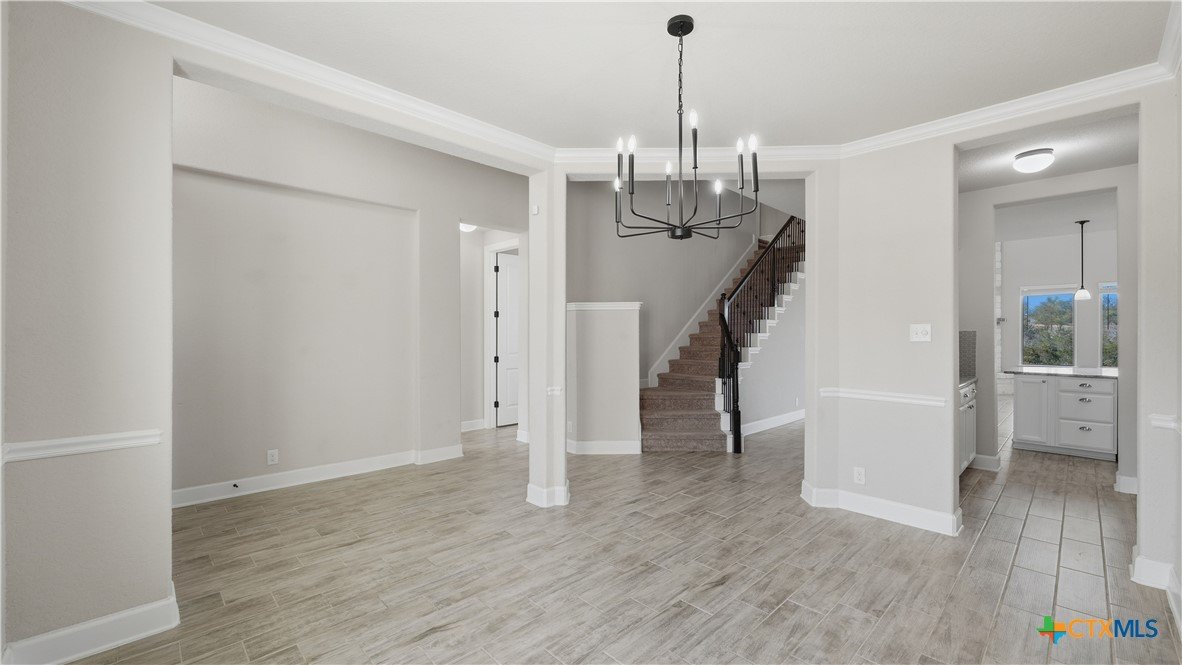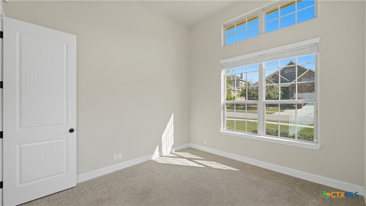 Roaring Falls Overlook is positioned in the sought-after Estates at Stone Crossing, a beautifully designed Ashton Woods home capturing sweeping Hill Country views with no rear neighbors, creating a private and peaceful backdrop that is increasingly rare in New Braunfels. From the moment you step inside, soaring ceilings, expansive windows, and an open-concept layout showcase the natural beauty beyond the home while filling the interior with abundant natural light. The thoughtfully designed floor plan offers both functionality and flexibility with multiple living and dining areas, ideal for everyday living and entertaining. The spacious living room is anchored by a stunning floor-to-ceiling stone gas fireplace and framed by dramatic windows that highlight the elevated views. The open kitchen is designed for both everyday living and entertaining, featuring custom cabinetry, double ovens, gas cooking, generous counter space, and an oversized breakfast bar with additional seating. A walk-through butler's pantry connects the dining room to the kitchen, adding both convenience and additional storage. The primary suite is conveniently located on the main level and offers a private retreat with large windows overlooking the serene landscape. A secondary bedroom with its own bathroom is also located downstairs, providing an ideal setup for guests, multigenerational living, or a private home office. Upstairs, additional living space includes a media room and flexible space for a game room, study, or secondary lounge. Designed to maximize the scenery, the home opens to a covered outdoor living area where you can enjoy panoramic views of New Braunfels and the surrounding Hill Country with no homes directly behind you. Whether hosting gatherings or enjoying quiet mornings, the outdoor space offers both privacy and tranquility. This home offers a rare combination of privacy, views, and convenience in one of New Braunfels' desirable communities.