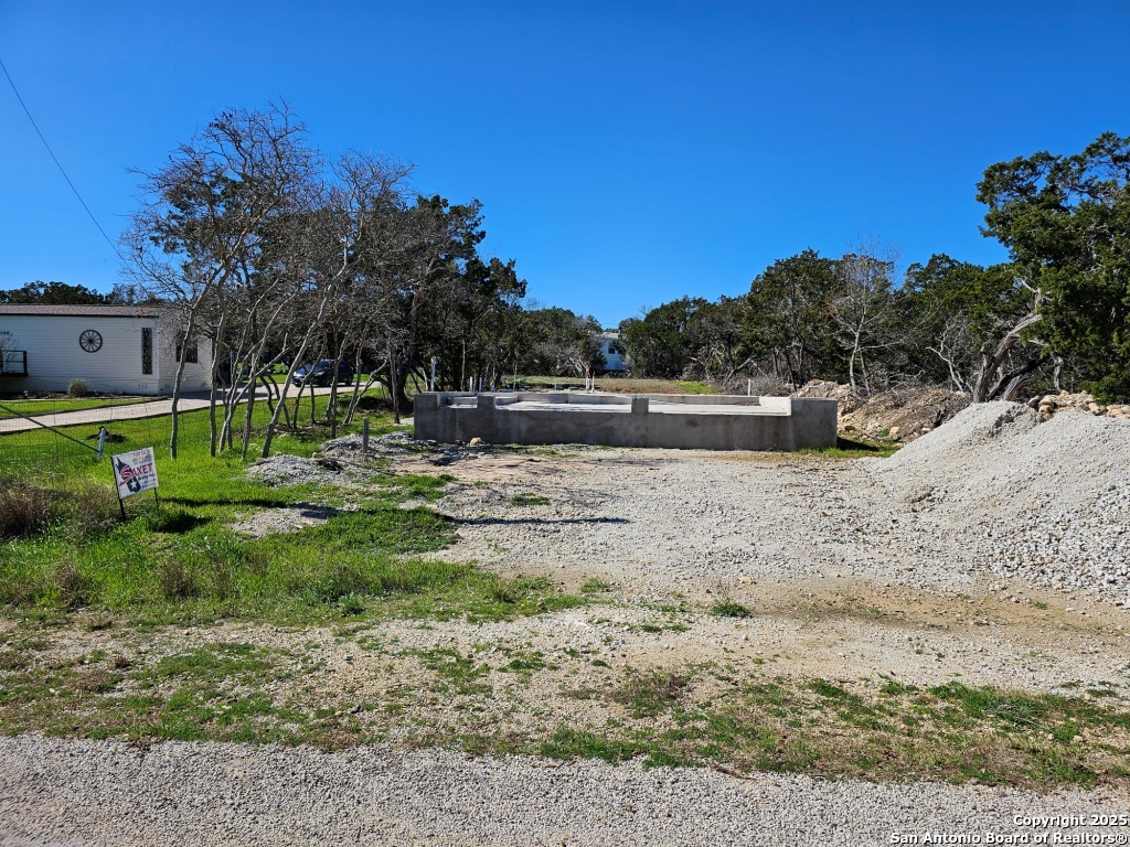 Great Hill Country Views and Fabulous Breezes from this potential 2-story house with PARTIAL CONSTRUCTION. This was to be the retirement home of an elderly San Antonio gentlemen, but he recently passed away before being able to see his dream come to true. This sale comes WITH existing plans/specs in place for a 3 bedroom/ 3 bath 2 story home with a 2 car garage. Everything currently on site has been paid for and there are no outstanding liens on this property. The family has simply decided that they do not wish to continue with the project. There are both a 2 story and 1 story version available for flexibility. The GOOD NEWS? A great deal of the high dollar items have already been completed. The lot has been cleared, the plans/specs have been paid for and are in hand, the enormous concrete slab has been poured as per plans and specs and the electric/plumbing stub outs have been installed as per plans, the EXPENSIVE, drip Aerobic Septic System has been installed and comes with a 3 year maintenance plan. The Water meter is in place. This project is ideal for someone who wants input on finish-outs but doesn't want to go through the whole design process. This is an ideal time for someone to jump in and finish out their Canyon Lake, Hill Country DREAM HOME. Plans available for review if you want to get bids on cost to complete. Great BUILDER Opportunity! This subdivision has a mandatory POA that currently does NOT allow STRs. Annual Fee is $24 unless you want access to the community pool and then there is an additional fee ($75 annually, but please verify with POA) Please feel free to show and walk the property AT YOUR OWN RISK. There is construction debris on site and the concrete slab is rather high to access. Notify the Agent prior to access.