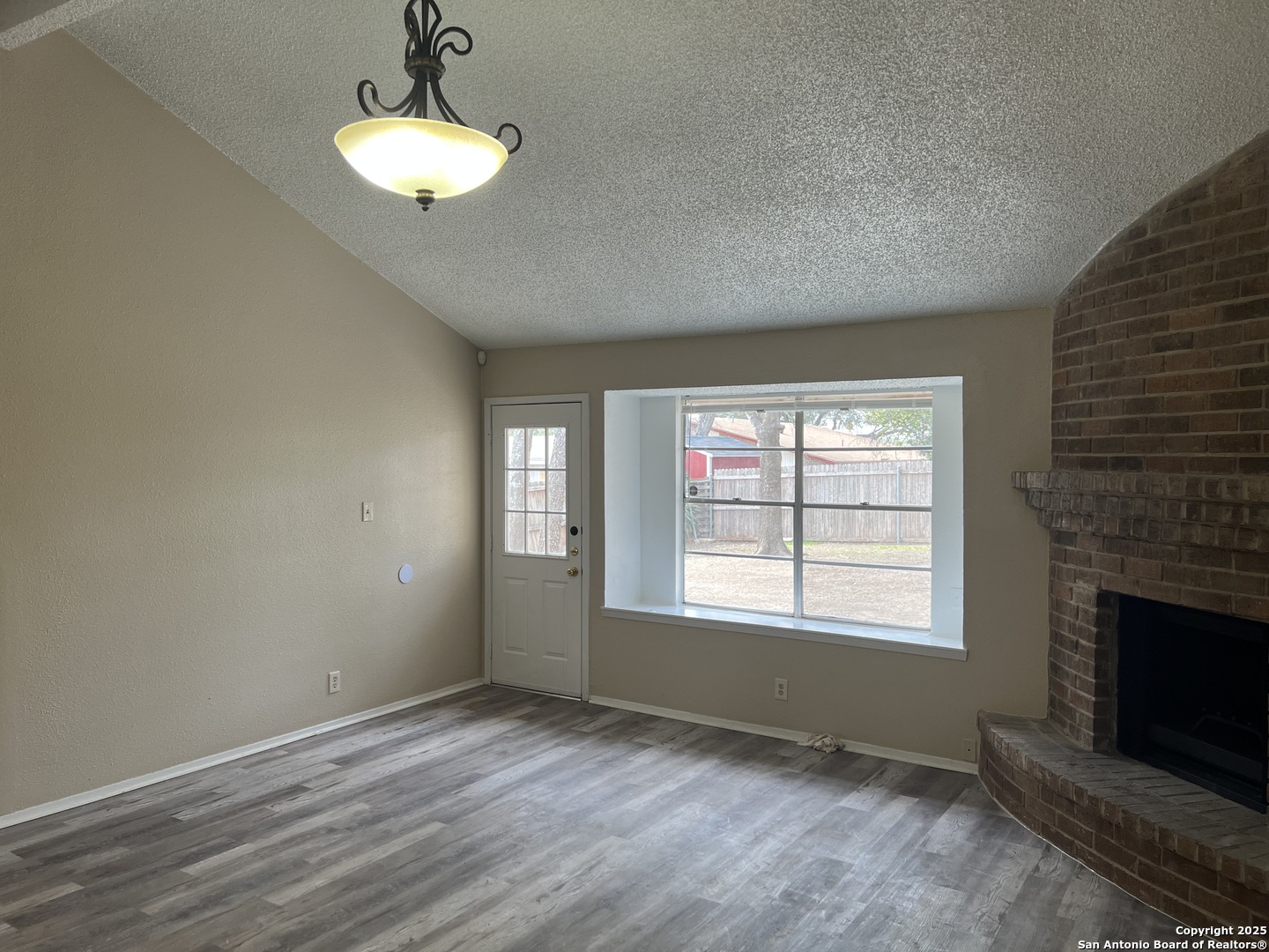 Nice open floor plan property with high ceilings and a fireplace. Near shopping and restaurants. Laminate flooring through out property, Newly tiled primary bathroom shower. Hall bathroom has tub/shower combo. Formal dining room that can be used as a second living area.