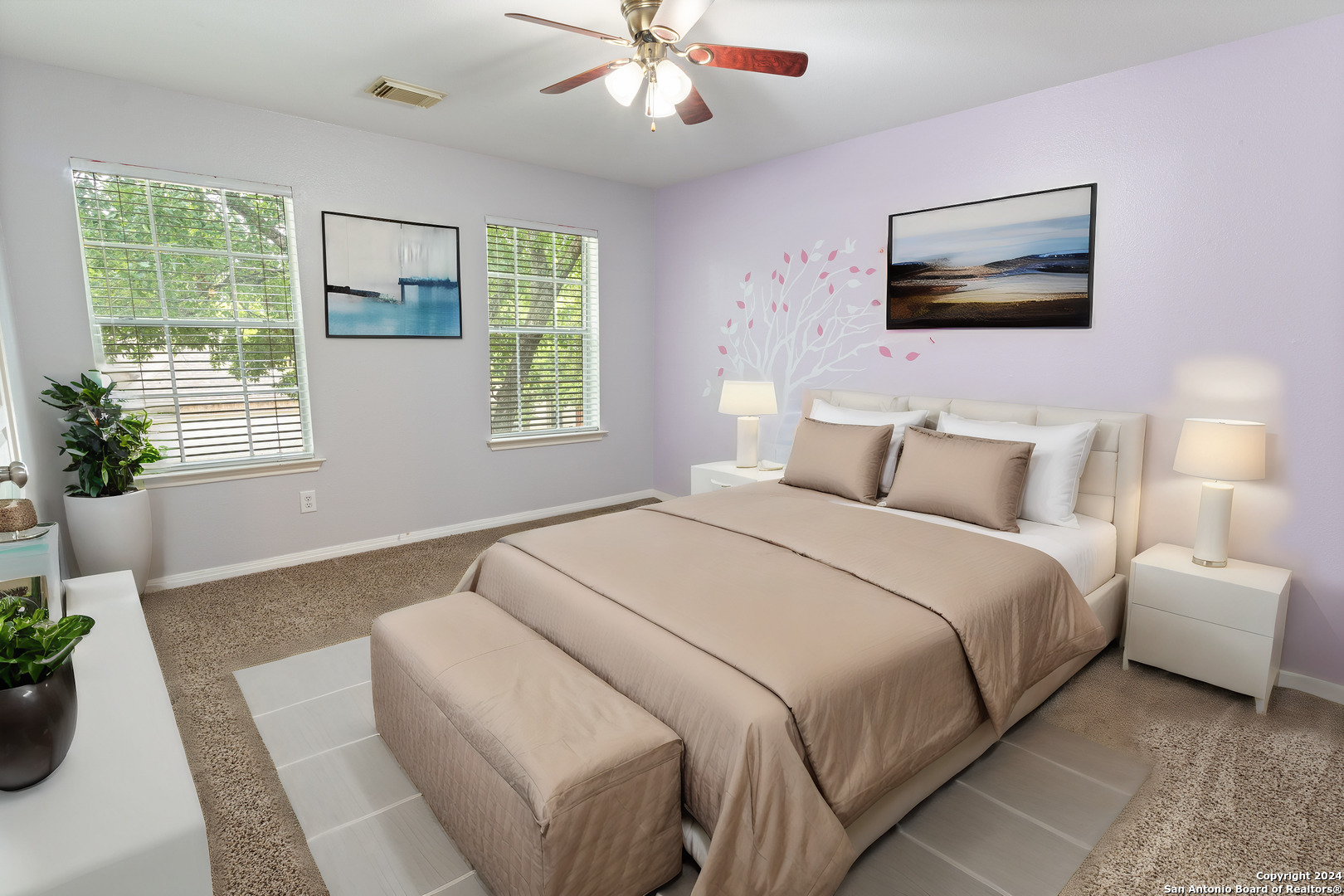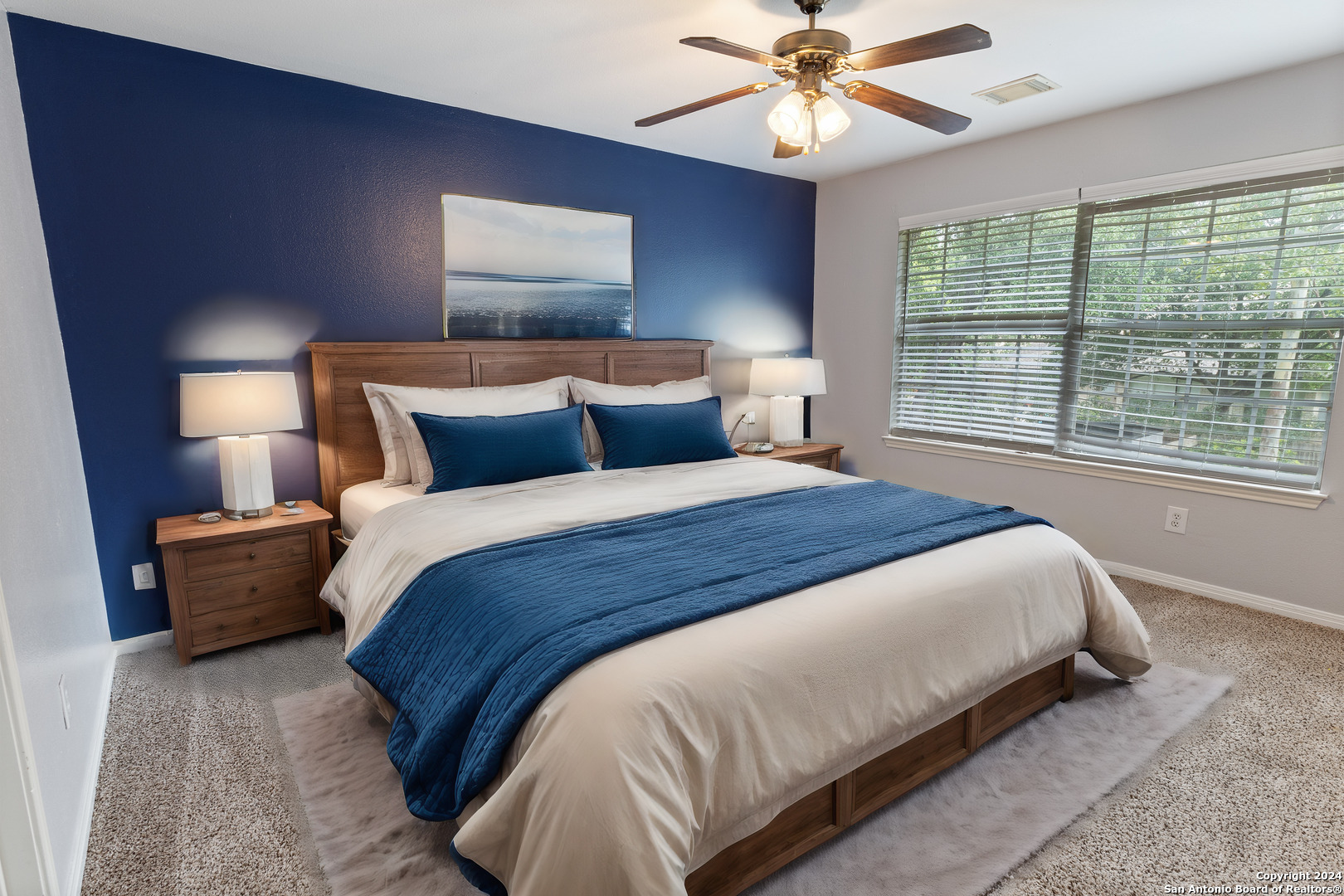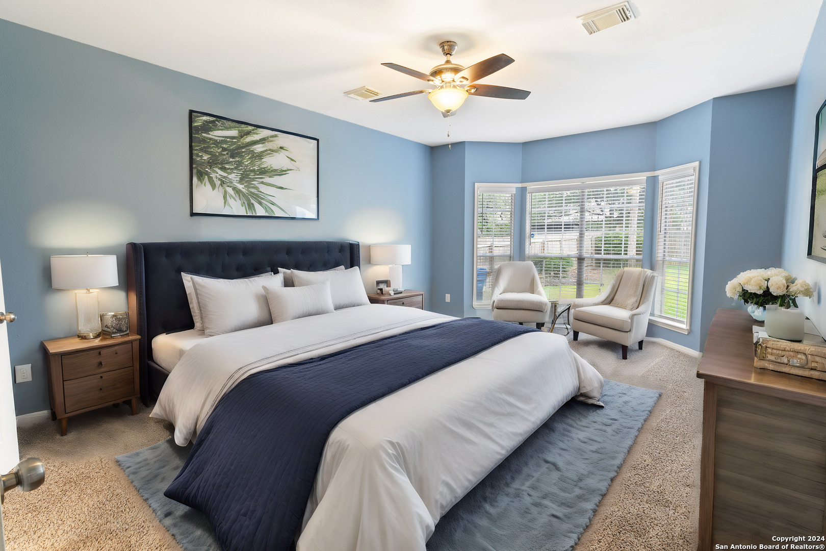 Beautiful home in the quiet gated community of Blanco Bluffs. Located just inside 1604, this spacious open floorplan is well appointed for entertaining. The beautiful master suite is situated downstairs and features a bay window looking out into the tree lined backyard. Upstairs boasts 3 spacious bedrooms, 2 full baths, a large Game Room and a study. The private and peaceful backyard is ready for entertaining surrounded by mature trees.