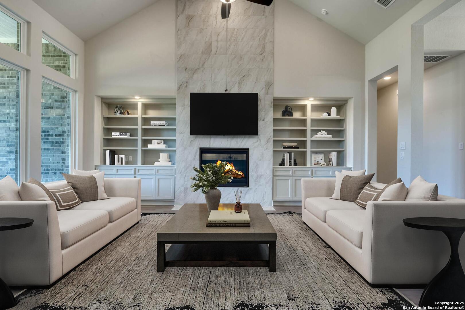 Elegant one-story home with a gourmet kitchen featuring a cooktop, built-in appliances, a walk-in pantry and a large center island open to the spacious family room features a warm, inviting fireplace. Private study located off the foyer perfect for working from home. Seperate dining room with butler's pantry is great for entertaining and holiday meals. The luxurious primary suite includes two walk in closets and private bath with a spa-like oversized shower, seperate vanities, and garden tub. Secondary bedrooms each feature a walk-in closet. Bedroom 2 and 3 have private baths. Retreat area perfect for a game room or media room. Three car side-entry garage for plenty of storage.
