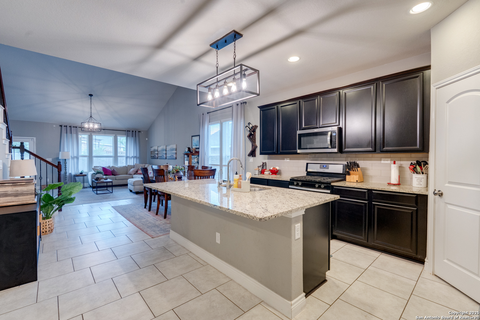 Welcome to 115 Aberdeen. This beautifully crafted two-story home in the heart of Boerne, TX, blends modern comfort with timeless farmhouse charm. Featuring 4 bedrooms, 3.5 bathrooms, and thoughtful upgrades throughout, this move-in-ready home is designed for everyday living and effortless entertaining. From the moment you arrive, the crisp white stone exterior and inviting front porch set a warm and welcoming tone. Inside, a spacious flex room offers versatility, perfect as a formal dining area, home office, or cozy reading nook. The open-concept design flows seamlessly from the living room to the kitchen and dining space, all filled with natural light. The living area showcases a custom fireplace and large windows that frame the outdoor views. The kitchen impresses with granite countertops, stainless steel appliances, a gas range, and abundant cabinetry-ideal for hosting, cooking, or enjoying your morning coffee. Just off the kitchen, you'll find a conveniently located laundry room and a smartly tucked-away office nook beneath the stairs. The main-level primary suite is a true retreat, featuring oversized windows, peaceful backyard views, and an expansive en-suite bath with dual walk-in closets. Upstairs, a versatile loft offers endless possibilities as a game room, media area, or playroom, along with three additional bedrooms and two full bathrooms. Step outside to relax on the front porch or enjoy the covered back patio, surrounded by a privacy fence, perfect for BBQs, pets, or playtime. Recent updates include brand-new carpet throughout and a new garage door, ensuring peace of mind and move-in readiness. If you're seeking comfort, flexibility, and timeless charm in a desirable Boerne neighborhood, 115 Aberdeen is ready to welcome you home.