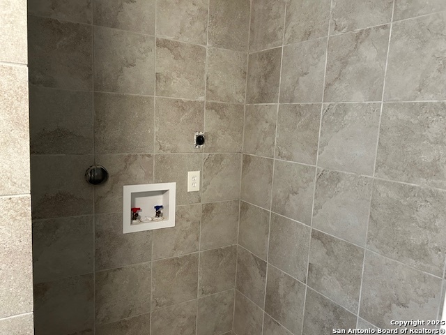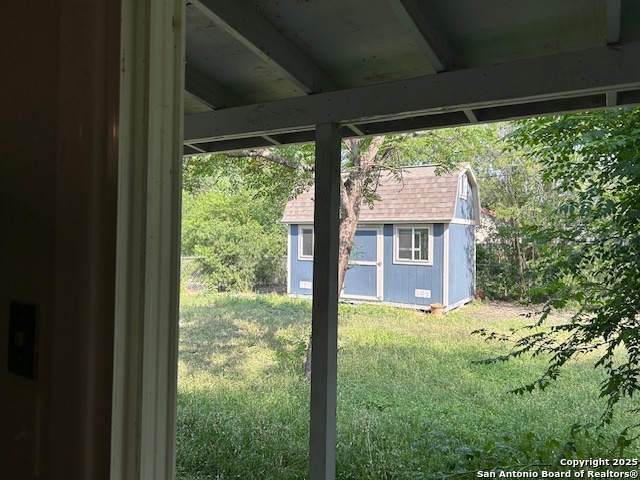 Cute house with a big backyard. Covered patio in back and a covered carport with several cars fitting in the driveway, for guests, and one going behind the gate. Large shed out back. Laundry room is in the bathroom but not necessarily a bad thing as it allows a place to set stuff. Has a nice size storage unit in the bathroom and also larger closets in the hallway. Has an eat in kitchen as well as a dining room you could probably combine with living area if you need more space. Close to daycare, churches, middle school, right off 410 so a good escape to shopping, restaurants, and Lackland AFB.
