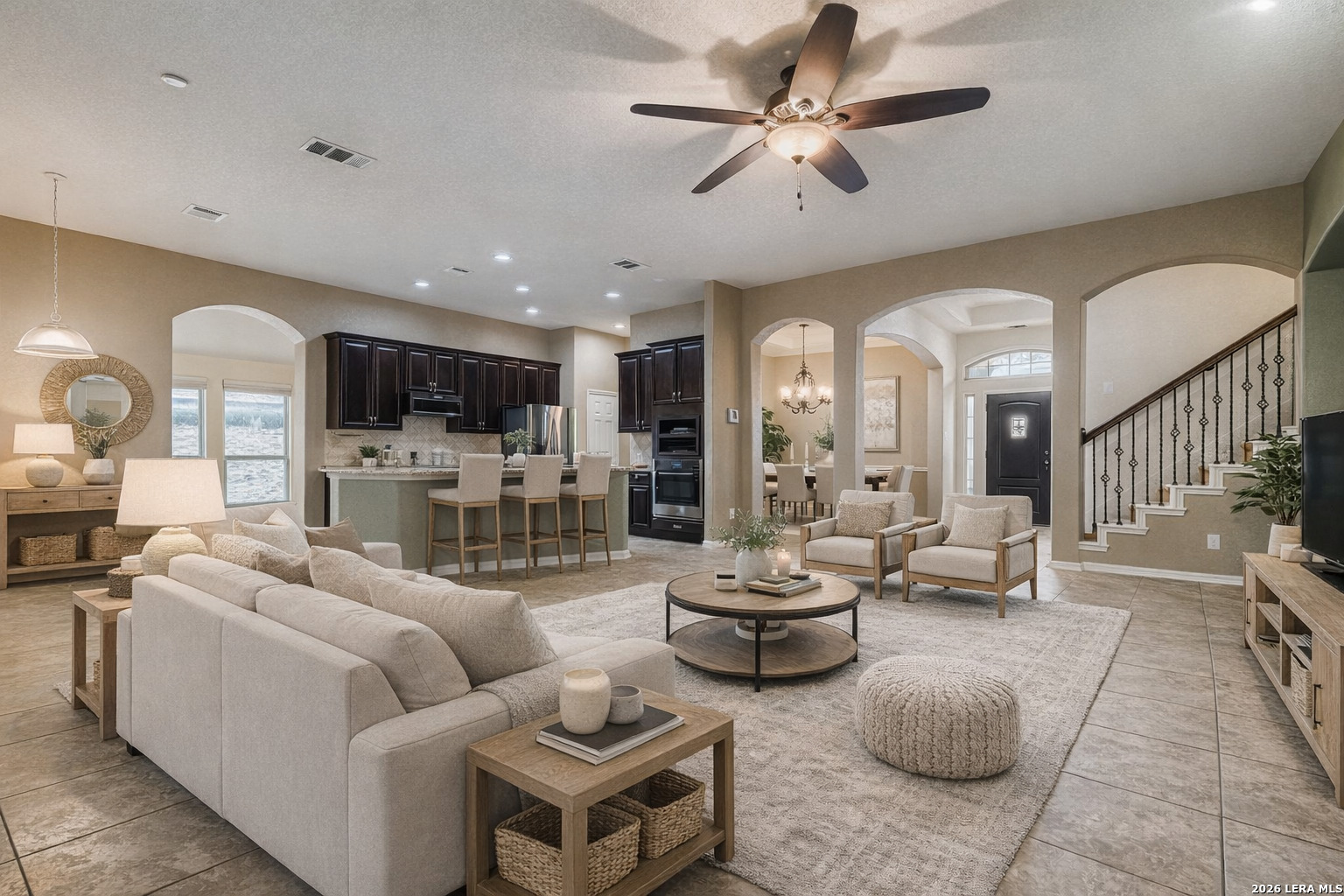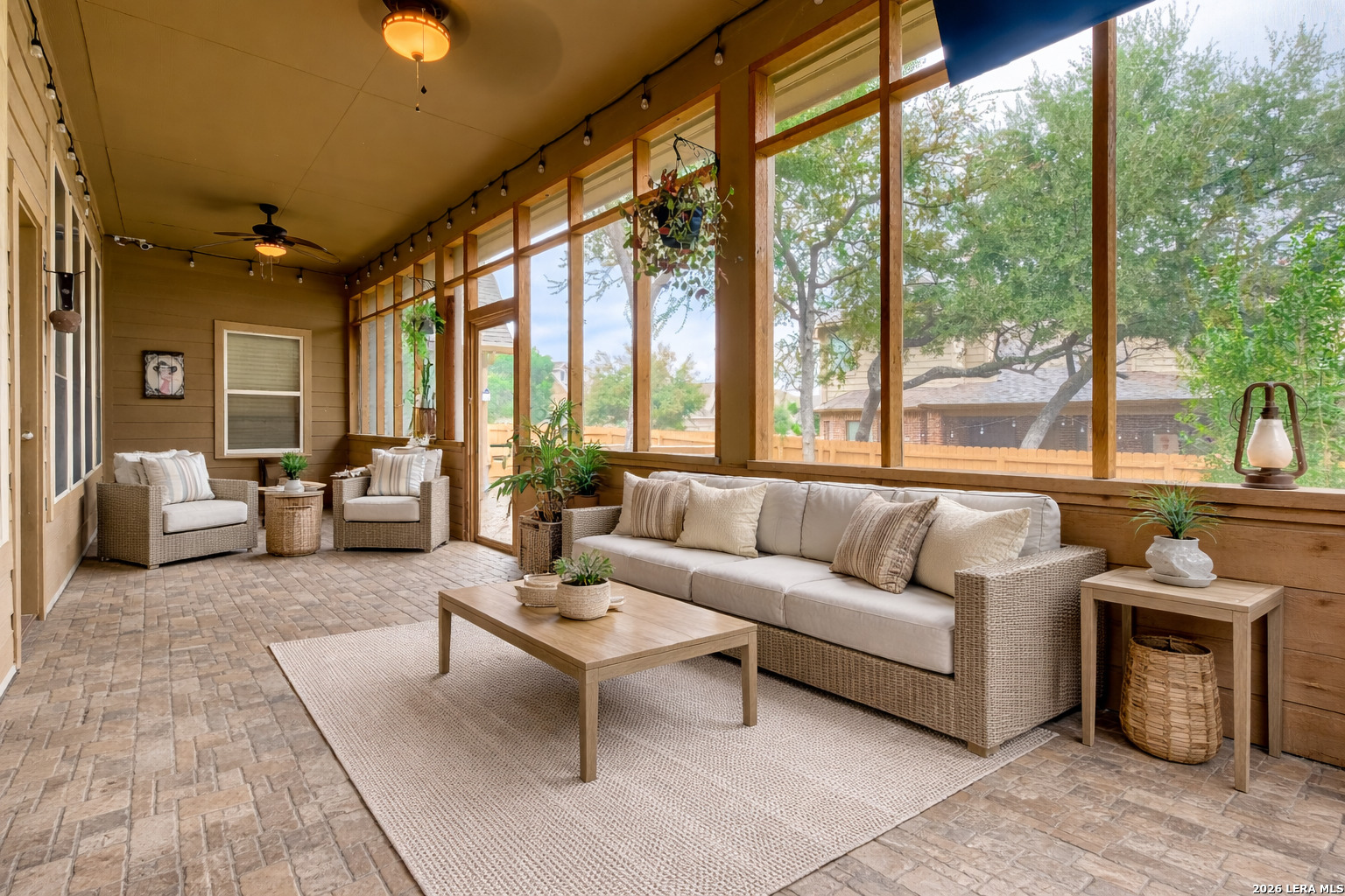 Welcome to 11523 Camp Real Ln, a beautifully maintained 3,350 sq. ft. home set on a serene corner lot with mature trees-including fruit trees, gorgeous landscaping, and a private courtyard entrance. Whole house exterior lighting. Designed for both comfort and versatility, this property offers 4 bedrooms, 2.5 baths, a 3-car tandem garage, a dedicated office, flexible bonus space, and an upstairs game/media room with its own half bath. Inside, the open layout is filled with natural light and enhanced by crown molding and a cozy brick fireplace. The chef's kitchen features granite countertops, stainless steel appliances, a raised breakfast bar, pantry, and sunny breakfast nook, while a formal dining room and screened porch with extended deck make entertaining effortless. The main-floor primary suite overlooks the backyard and includes a spa-inspired bath with a jacuzzi tub, a walk-in shower, dual vanities, and a spacious California closet. Located within Northside ISD and just minutes from Hoffmann Elementary, Briscoe Middle, and Taft High School, this property also offers easy access to parks, shopping, and entertainment. Enjoy nearby Phil Hardberger Park and O.P. Schnabel Park, shopping at Alamo Quarry Market, North Star Mall and La Cantera Shopping, and look forward to new destinations such as Borgfeld Crossing, Alamo Commons, and the Santikos Entertainment expansion. This home truly blends comfort, convenience, and community-a must-see opportunity in one of San Antonio's most desirable areas!