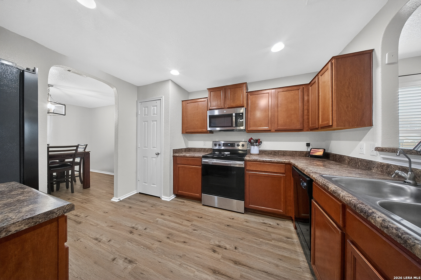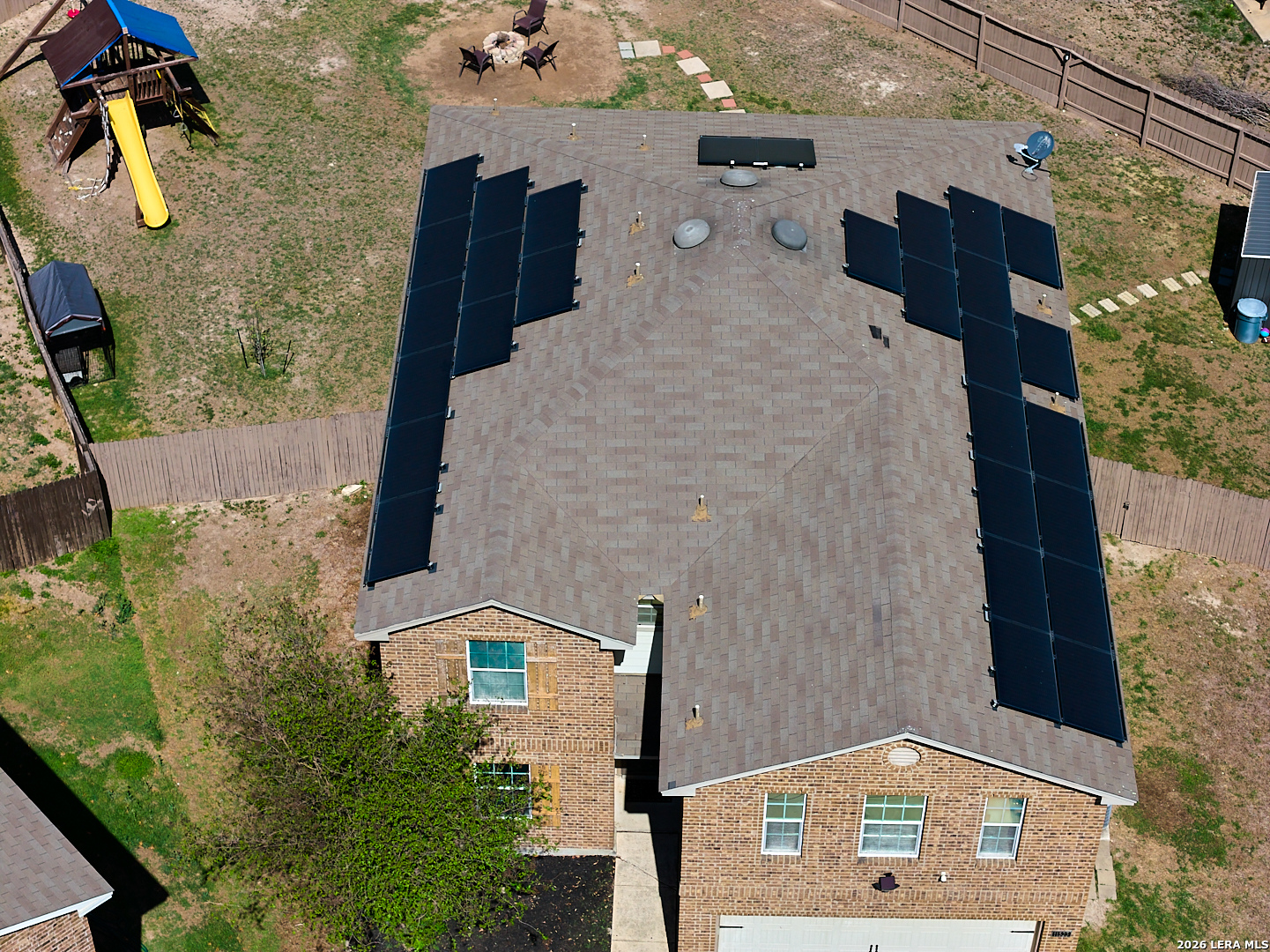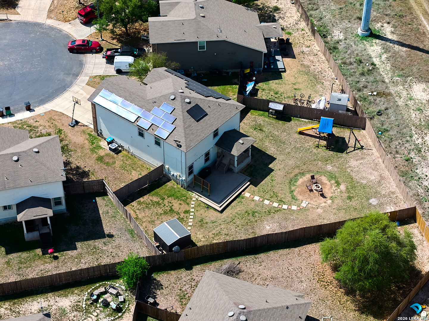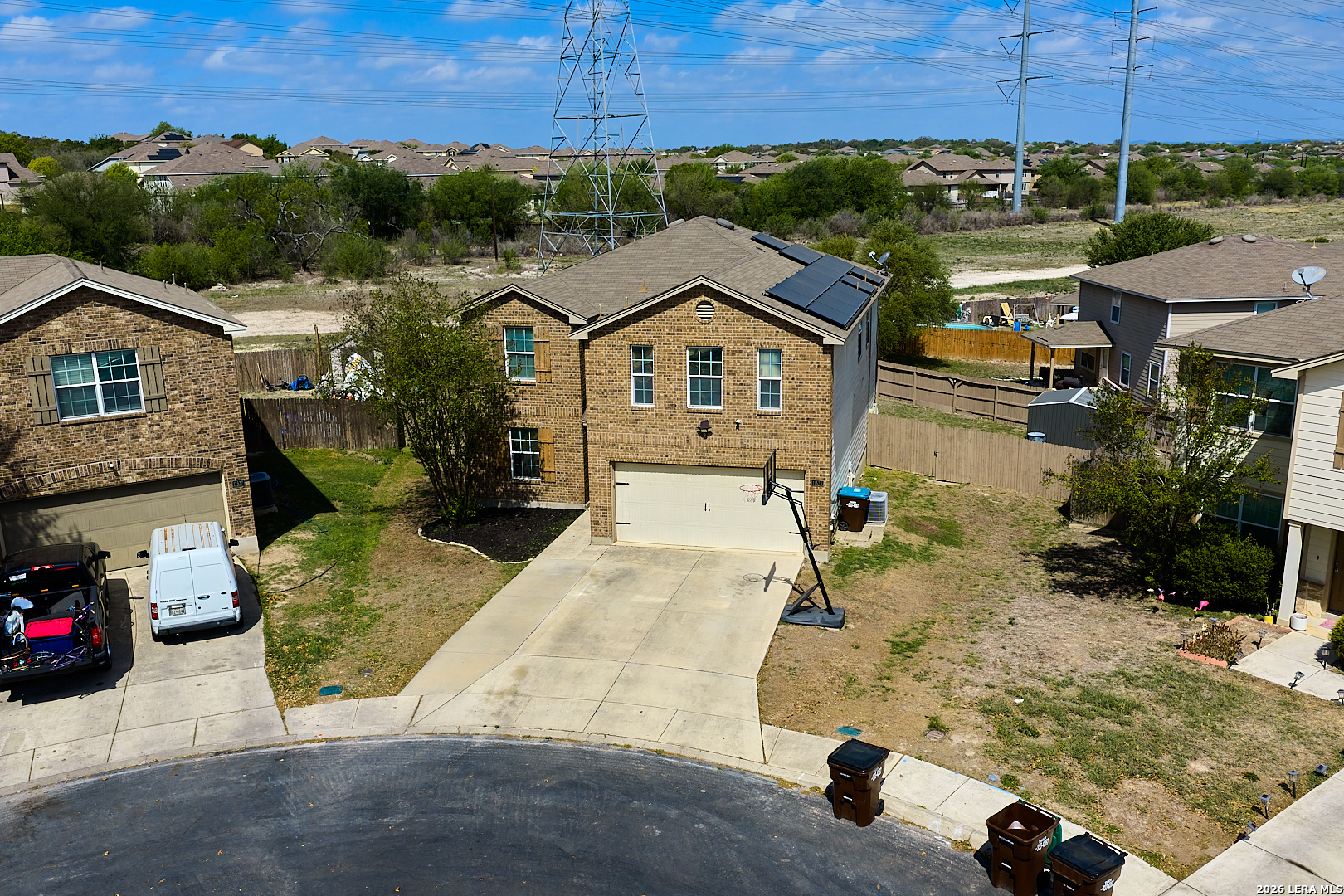 Welcome to this beautiful maintained 5-bedroom 3.5 bath home, situated on a quiet cul-de-sac and backing to a peaceful greenbelt. Step inside to find a light-filled interior with functional and inviting layout. The spacious kitchen features warm wood cabinetry, ample counter space, and a seamless connection to the dining area- perfect for everyday living and entertaining. Primary bedroom downstairs and 2 sets of Jack-n-Jill bedrooms upstairs with 2 full baths. Each bedroom has own sink. Step outside to Your Private Backyard Oasis that backs up to the greenbelt. Perfect Yard for entertaining!!! Lastly enjoy the benefits of Fully Paid Solar Panels.