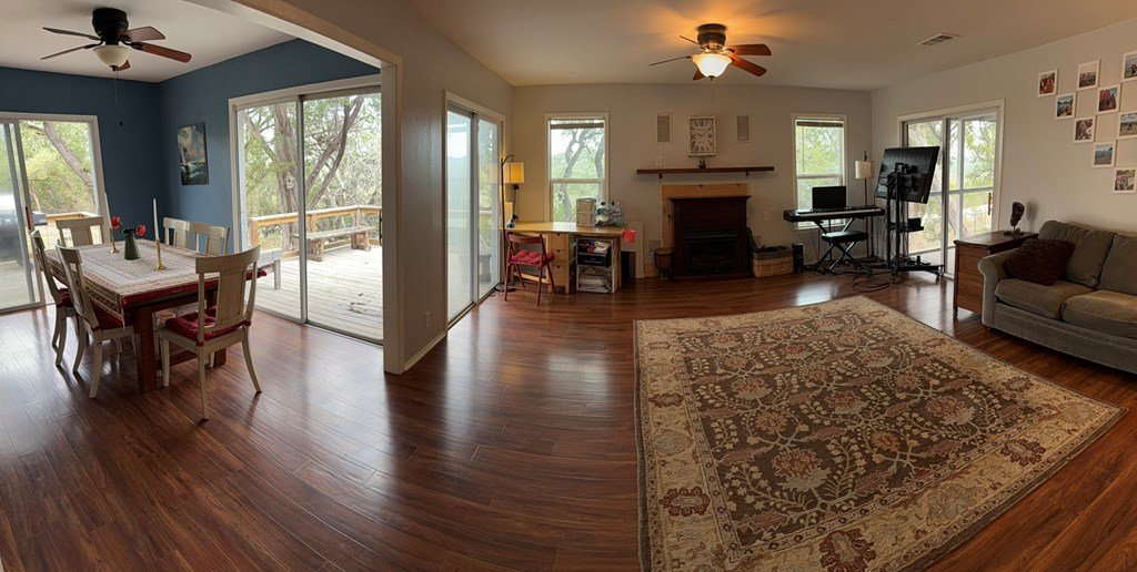 Adorable 1602SF Home on .356 Acres with adjoining 1 acre lot. This 3/2 has been remodeled. Some of the new features include: opening up Dining to Den, new Pergo flooring throughout, new windows, New PEX tubing, Propane for kitchen stove and FP in family area, New AC in 2014 and more. Decks all along back and side for enjoying the views and out doors. One deck is screened with a doggie door. Storage building on slab. Adjoining lot is enjoyed by the family for extended activities and privacy. $60 optional POA for access to Neighborhood park. Canyon Lake Camp grounds just down Park Road at the dead end. Priced Below County Appraisal Market Value.