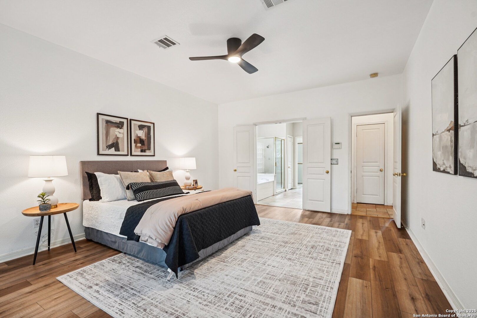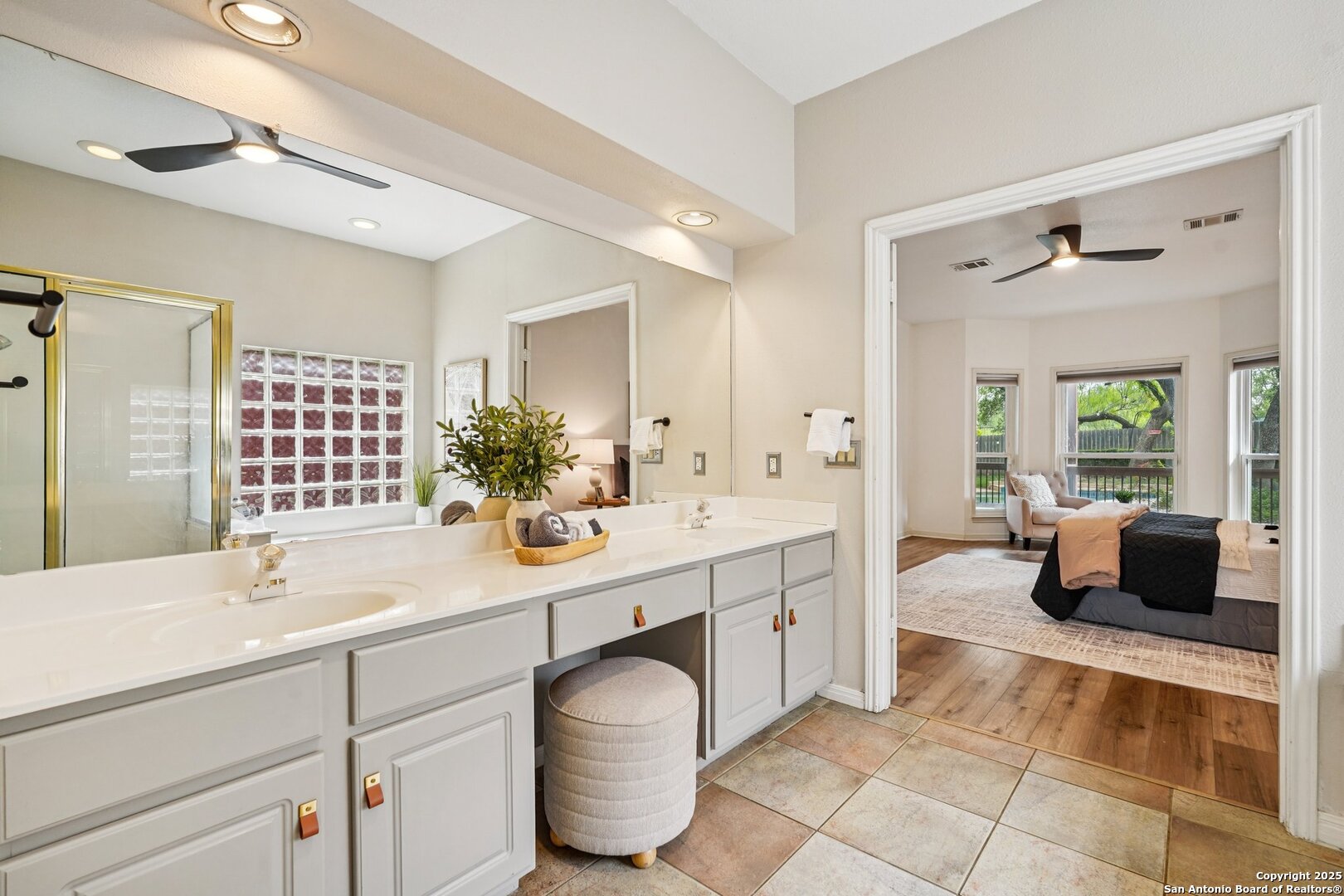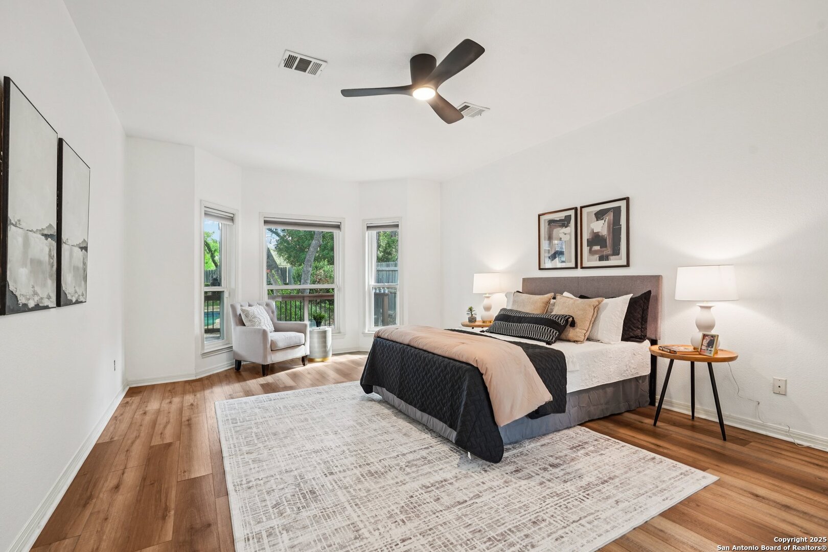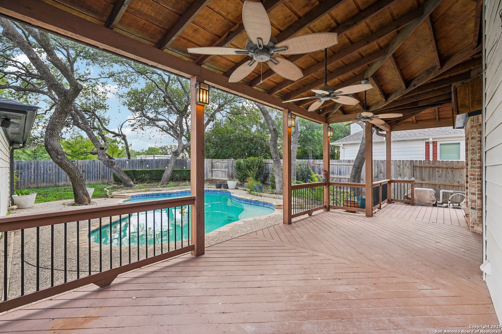 Welcome to this beautiful Pulte-built home located in the gated community of Blanco Bluffs. Ideally situated near fine dining, shopping, and top conveniences, this spacious 4-bedroom, 3.5-bath home also features a dedicated home office-perfect for remote work, study, or creative pursuits. Enjoy a private, oak-studded backyard with a sparkling Gary Pool and an oversized custom patio-ideal for entertaining or relaxing in a peaceful setting. The bright, chef-inspired kitchen includes a six-burner range and is filled with natural light throughout. The primary suite is located on the main floor, while the upstairs features a second living area with elegant wood flooring. With 3,417 sq ft of thoughtfully designed living space, this home offers comfort, versatility, and room for everyone. No carpet, highly rated Northeast schools, a 4 year old roof, completely updated windows that help with energy efficiency and a detached garage, this home is perfect for entertaining family and friends!