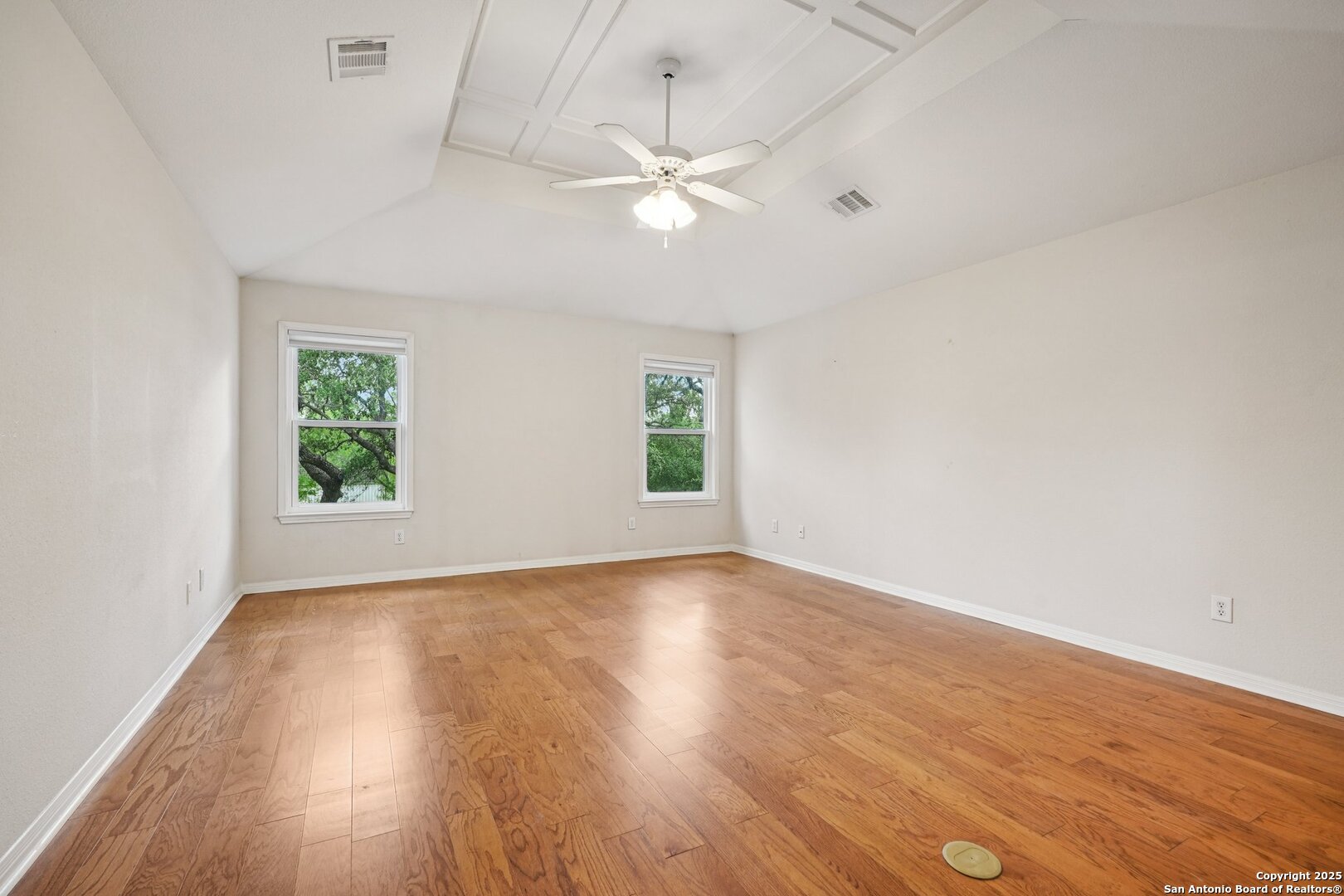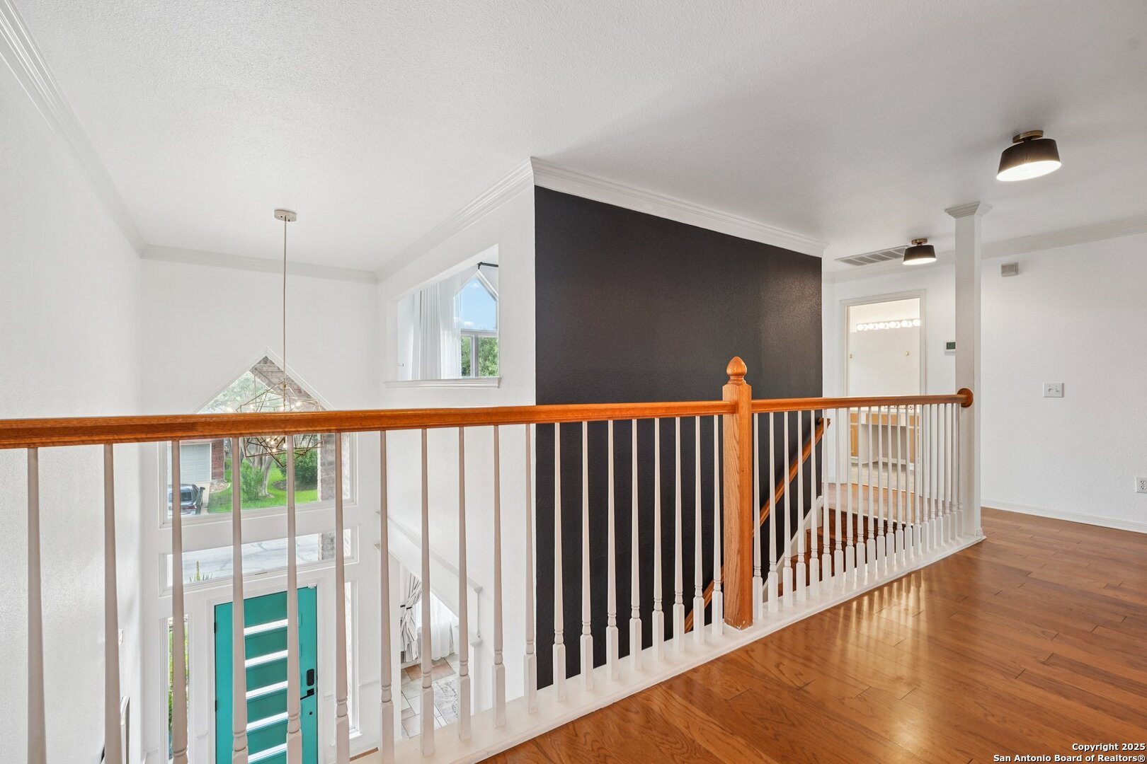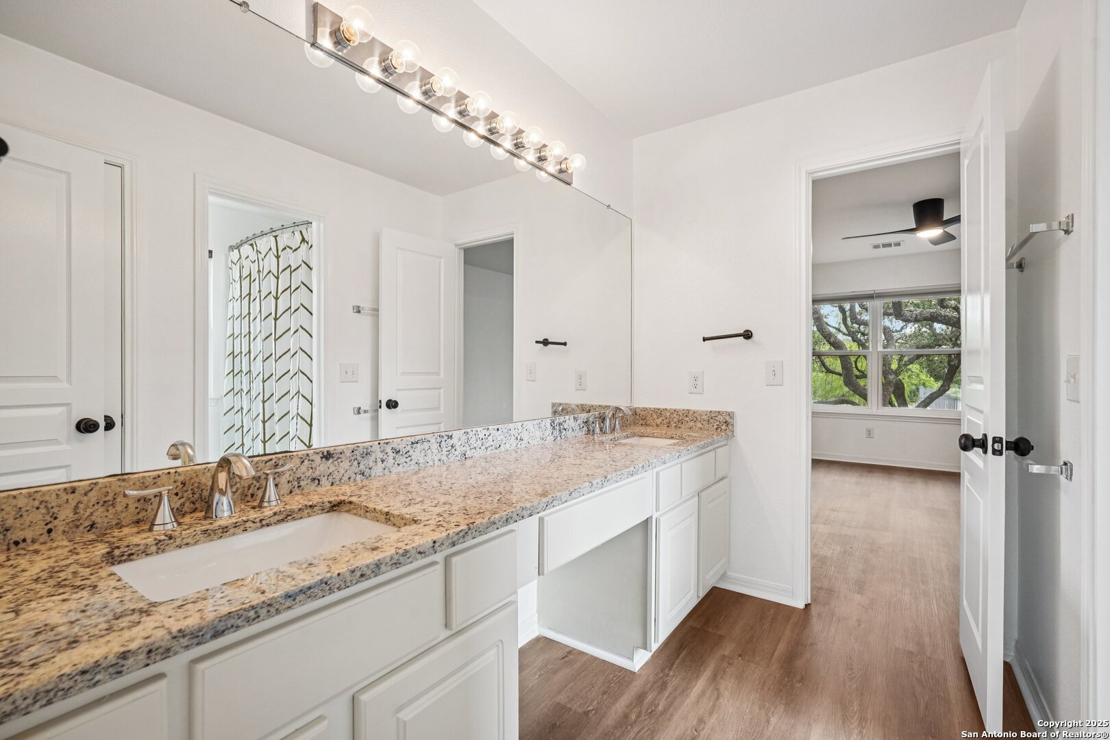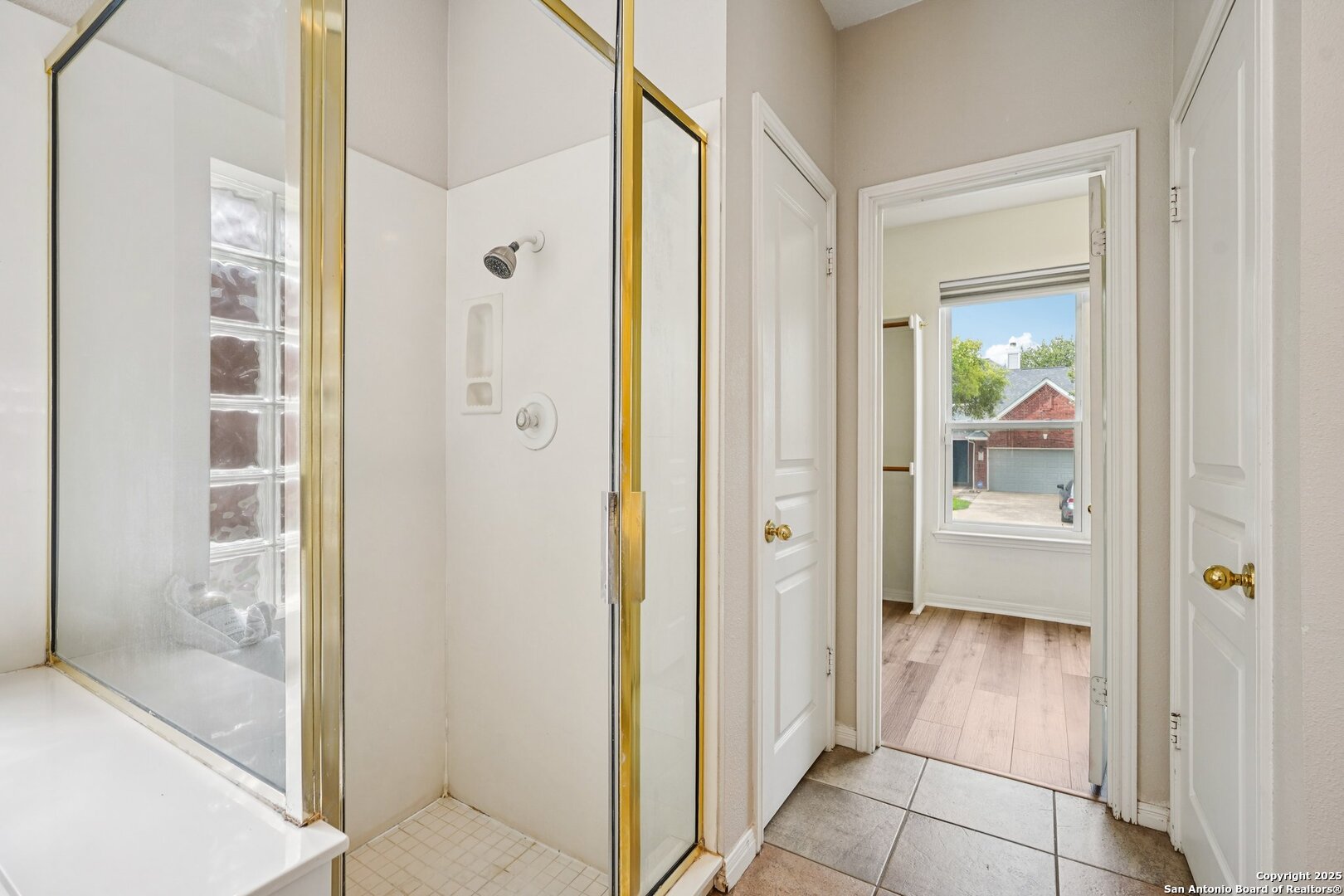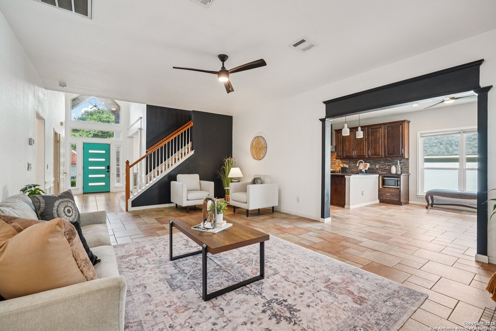 Welcome to this beautiful Pulte-built home located in the gated community of Blanco Bluffs. Ideally situated near fine dining, shopping, and top conveniences, this spacious 4-bedroom, 3.5-bath home also features a dedicated home office-perfect for remote work, study, or creative pursuits. Enjoy a private, oak-studded backyard with a sparkling Gary Pool and an oversized custom patio-ideal for entertaining or relaxing in a peaceful setting. The bright, chef-inspired kitchen includes a six-burner range and is filled with natural light throughout. The primary suite is located on the main floor, while the upstairs features a second living area with elegant wood flooring. With 3,417 sq ft of thoughtfully designed living space, this home offers comfort, versatility, and room for everyone. No carpet, highly rated Northeast schools, a 4 year old roof, completely updated windows that help with energy efficiency and a detached garage, this home is perfect for entertaining family and friends!