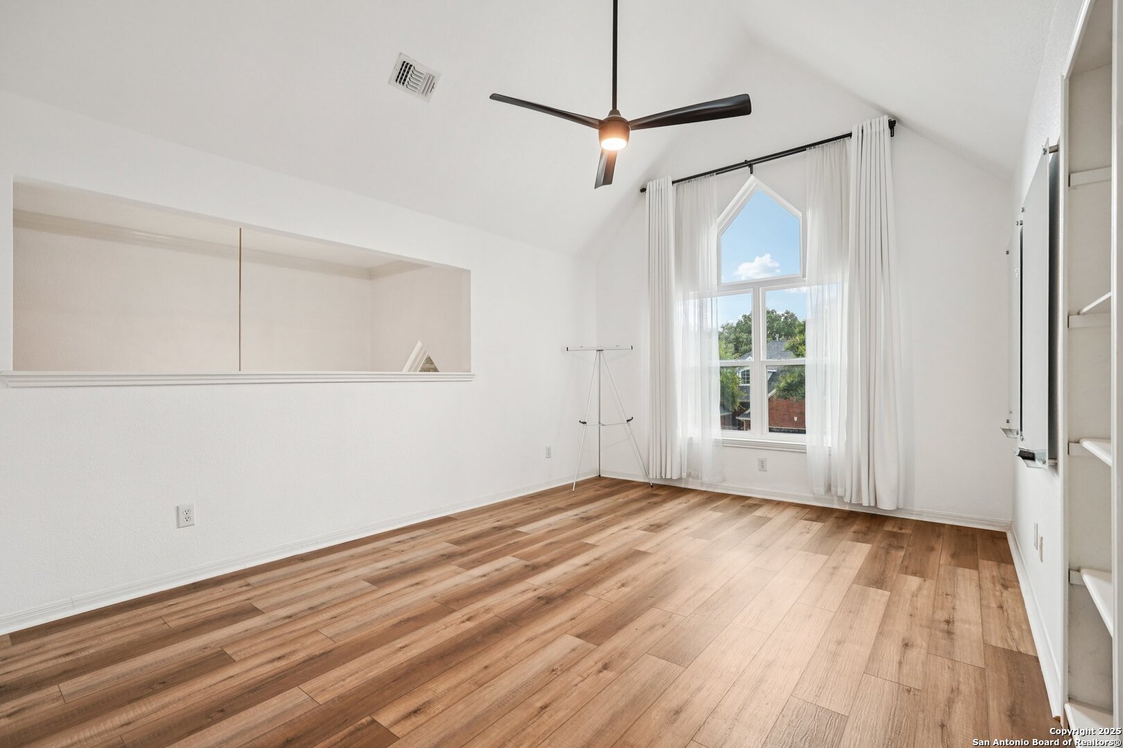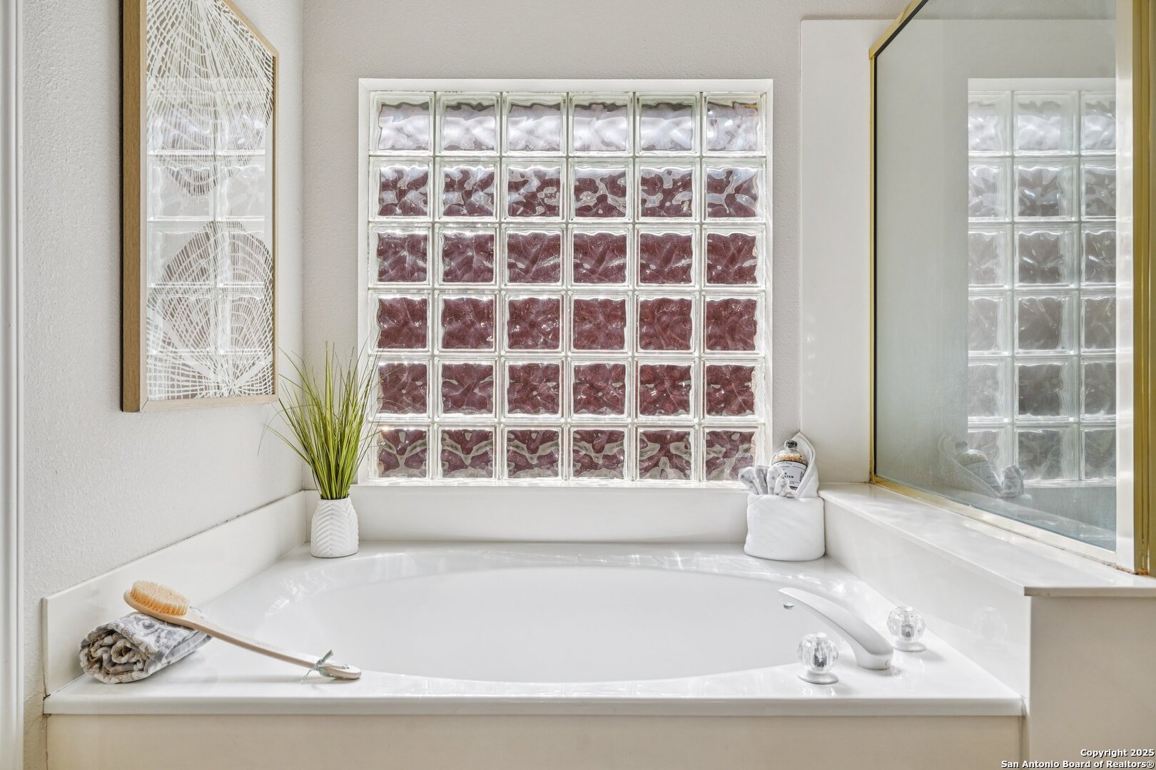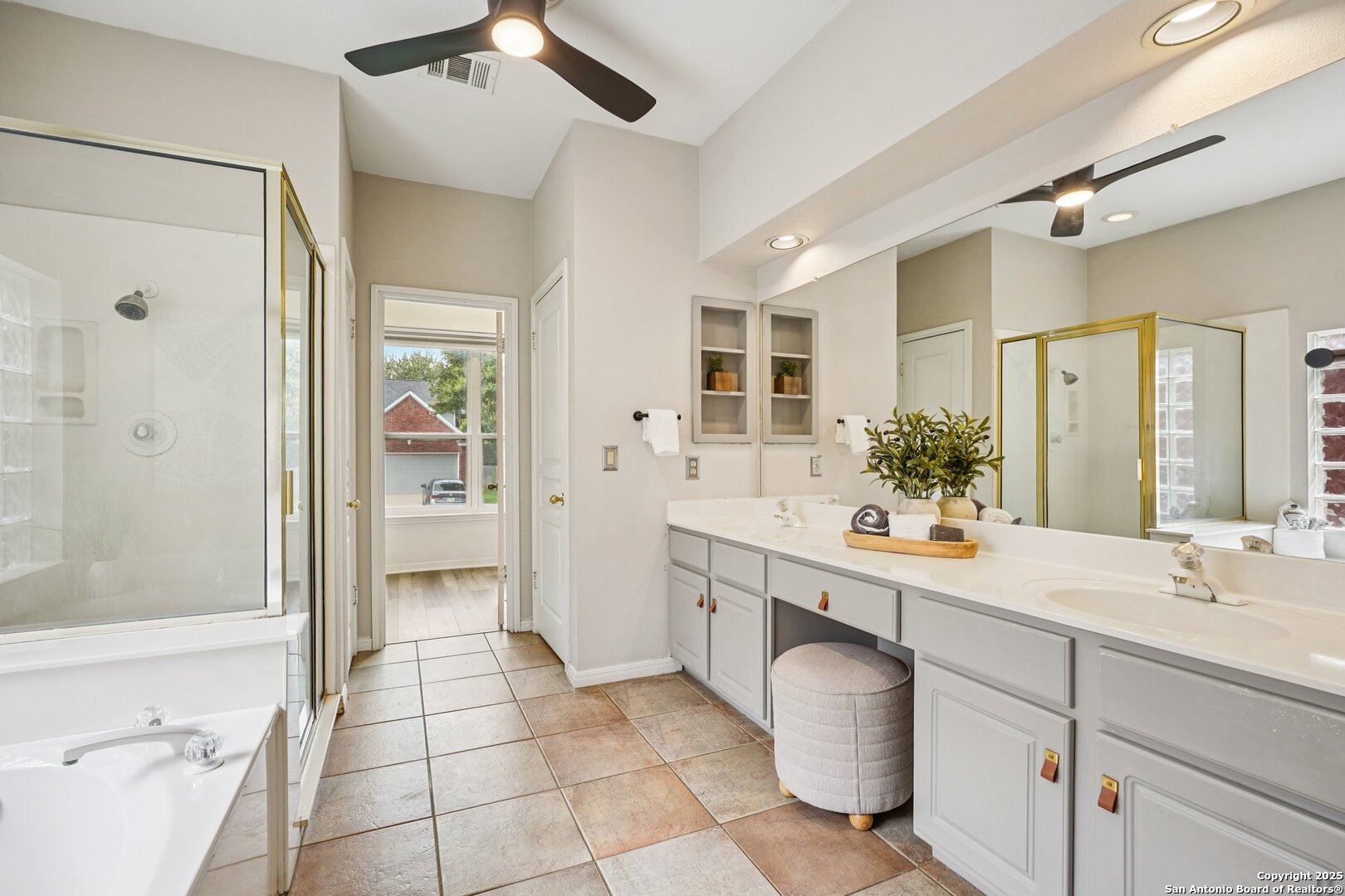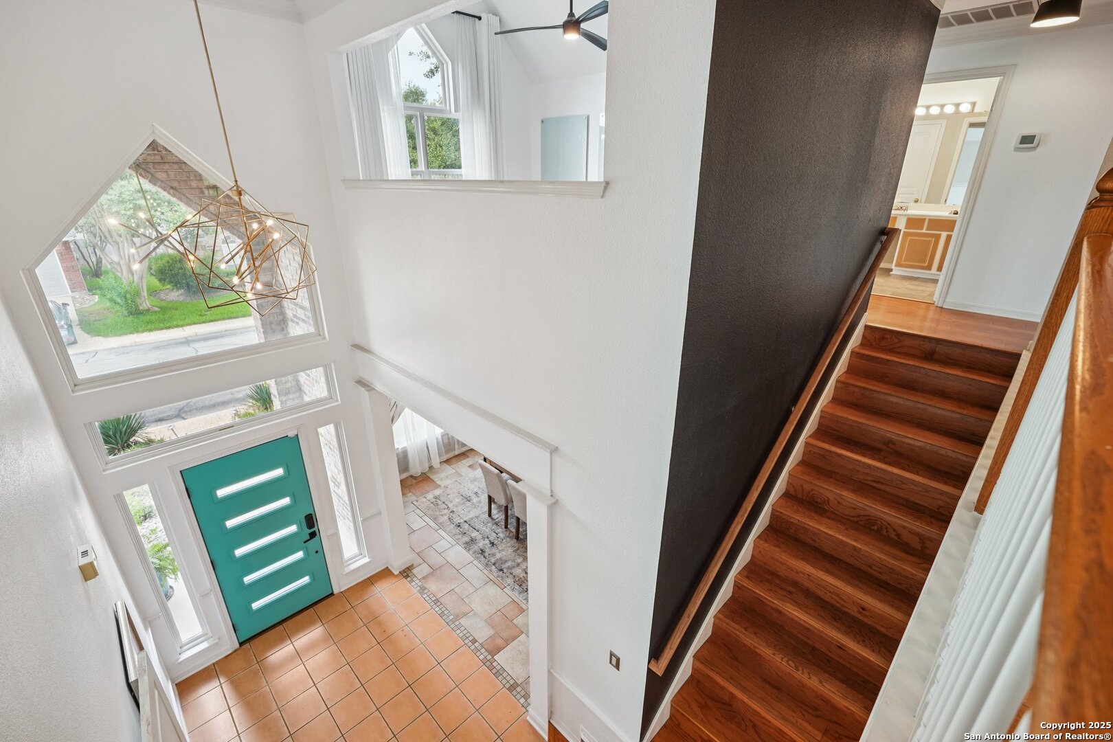 Welcome to this beautiful Pulte-built home located in the gated community of Blanco Bluffs. Ideally situated near fine dining, shopping, and top conveniences, this spacious 4-bedroom, 3.5-bath home also features a dedicated home office-perfect for remote work, study, or creative pursuits. Enjoy a private, oak-studded backyard with a sparkling Gary Pool and an oversized custom patio-ideal for entertaining or relaxing in a peaceful setting. The bright, chef-inspired kitchen includes a six-burner range and is filled with natural light throughout. The primary suite is located on the main floor, while the upstairs features a second living area with elegant wood flooring. With 3,417 sq ft of thoughtfully designed living space, this home offers comfort, versatility, and room for everyone. No carpet, highly rated Northeast schools, a 4 year old roof, completely updated windows that help with energy efficiency and a detached garage, this home is perfect for entertaining family and friends!