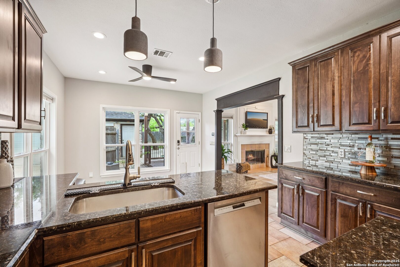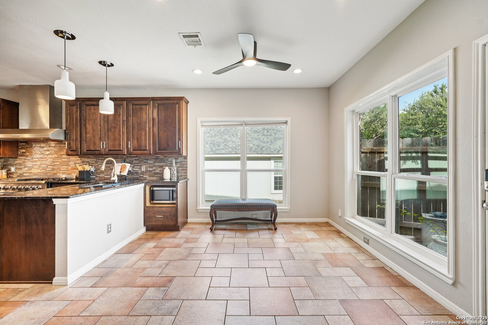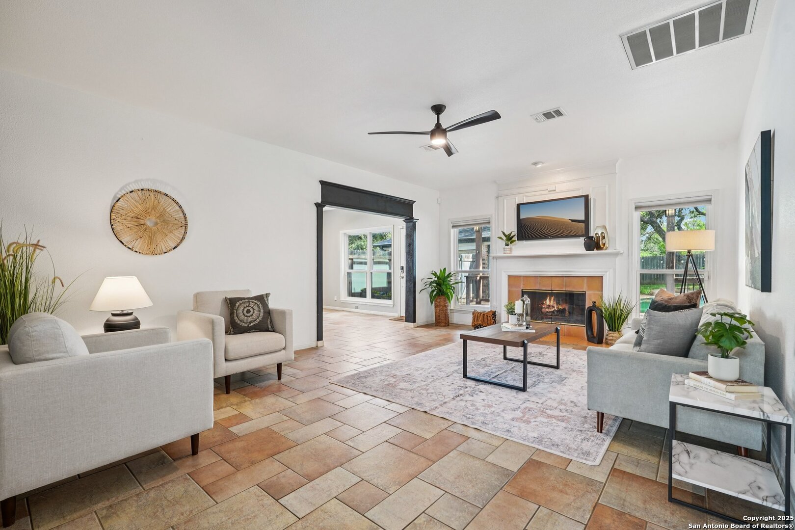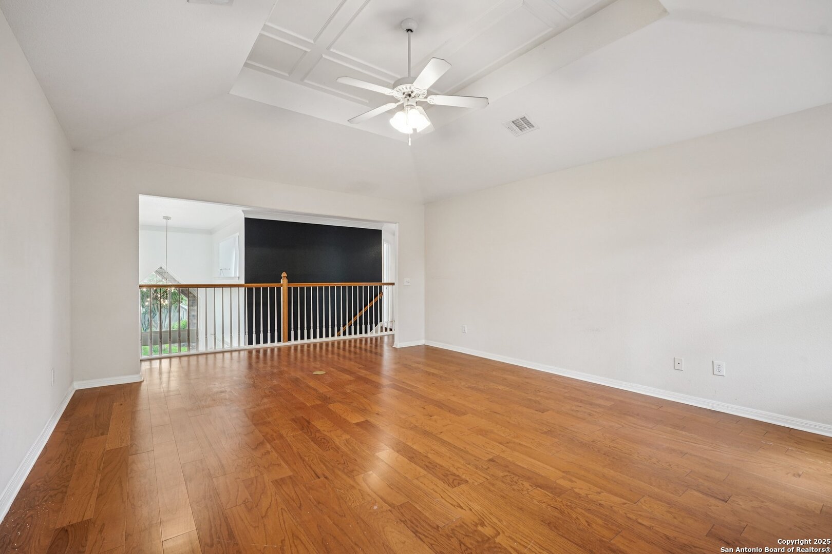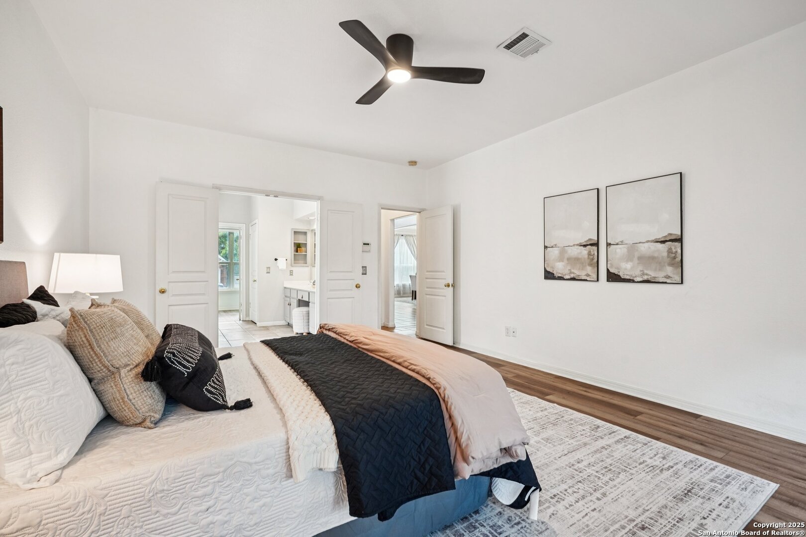 Welcome to this beautiful Pulte-built home located in the gated community of Blanco Bluffs. Ideally situated near fine dining, shopping, and top conveniences, this spacious 4-bedroom, 3.5-bath home also features a dedicated home office-perfect for remote work, study, or creative pursuits. Enjoy a private, oak-studded backyard with a sparkling Gary Pool and an oversized custom patio-ideal for entertaining or relaxing in a peaceful setting. The bright, chef-inspired kitchen includes a six-burner range and is filled with natural light throughout. The primary suite is located on the main floor, while the upstairs features a second living area with elegant wood flooring. With 3,417 sq ft of thoughtfully designed living space, this home offers comfort, versatility, and room for everyone. No carpet, highly rated Northeast schools, a 4 year old roof, completely updated windows that help with energy efficiency and a detached garage, this home is perfect for entertaining family and friends!