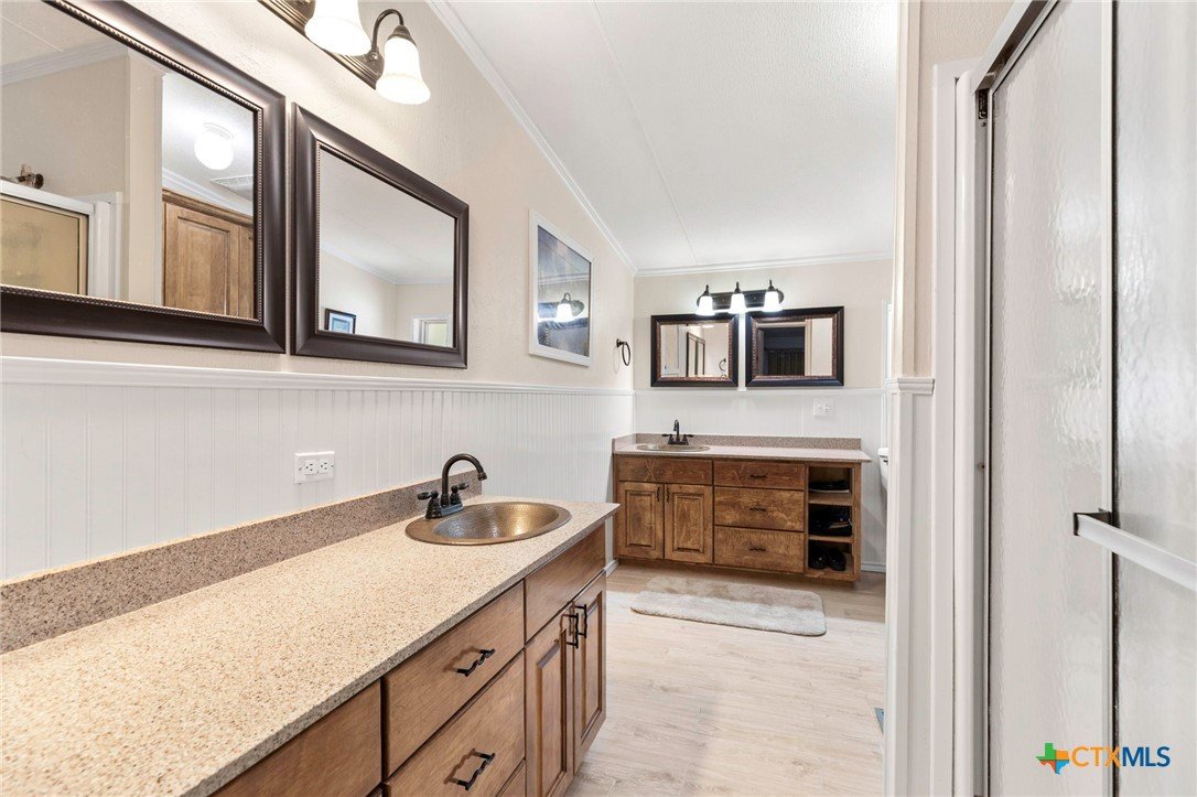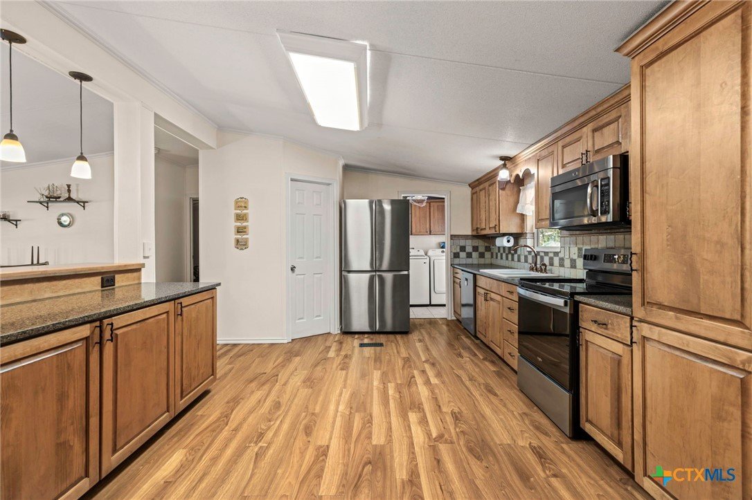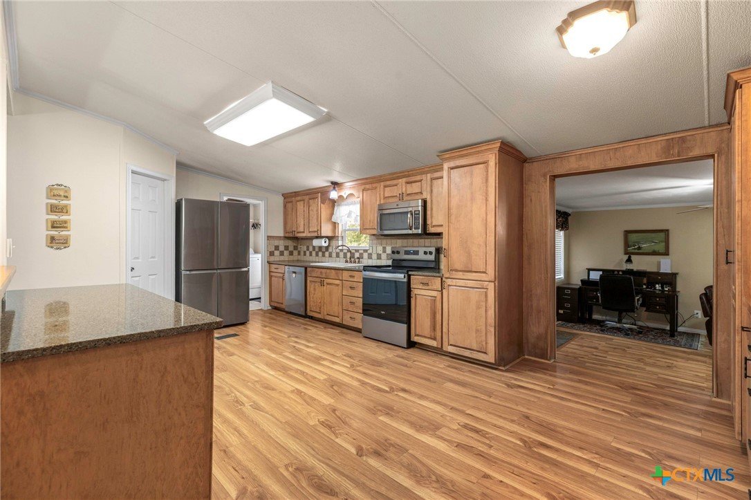 Welcome to this unique property in Lockhart, offering the perfect blend of self-sufficiency, modern updates, and natural beauty. Shaded by mature trees that help keep utility costs low with an average electric bill of just $130 per month, this home is set up for comfortable living and sustainable homesteading. Inside, you’ll find central HVAC installed in 2021 along with a mini-split system from 2019, a new roof added in 2021, and a brand-new water heater placed in 2024. The kitchen features custom cabinetry throughout, rich mahogany cabinets, a mix of wood and granite counters, stainless appliances, a walk-in pantry, a new dishwasher from 2024, and a new stove from 2025. Parking and storage are plentiful with an enclosed garage, a two-car carport with exterior lighting, a lean-to shed in the orchard, and a large storage shed on slab. The yard and home are fully fenced, while the creek area remains open, and the property is cross-gated for easy farm equipment access. Water and irrigation are well-supported with Aqua Water service, a drip irrigation system around the property, and extensive rainwater storage including a 2,100-gallon tank by the carport, two 300-gallon tanks, and eight 300-gallon cube tanks. Multiple faucets and valves are conveniently located along the fence line and orchard, and a 35-amp RV hookup with water access is also available. Outdoors, the property shines with a producing orchard featuring peach, cherry, plum, pomegranate, fig, apple, pear, and pecan trees. Gardens yield watermelons, cherry tomatoes, blackberries, grapes, and more, supported by a compost pile and two greenhouses for year-round growing. A chicken chalet provides space for poultry, while the grounds themselves offer plenty of room to enjoy the natural setting. With updates throughout and homesteading infrastructure already in place, this Lockhart property is ready to welcome its next owner seeking a lifestyle that combines comfort, sustainability, and country charm.