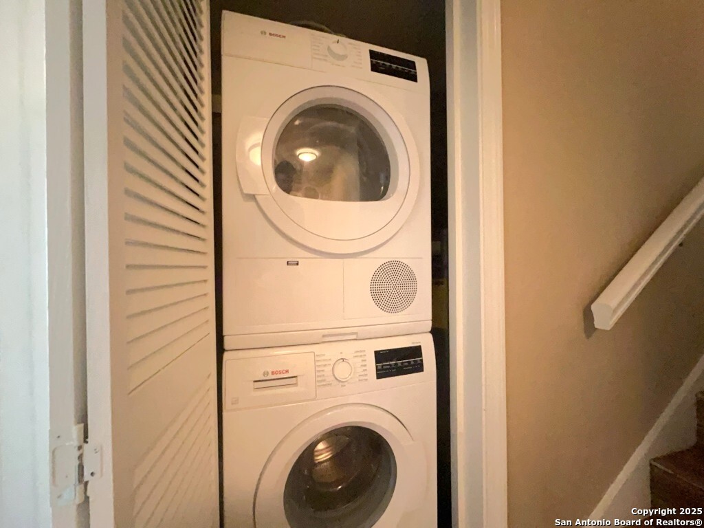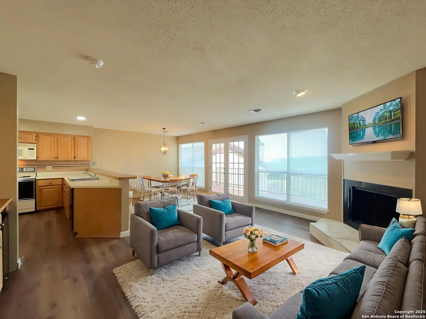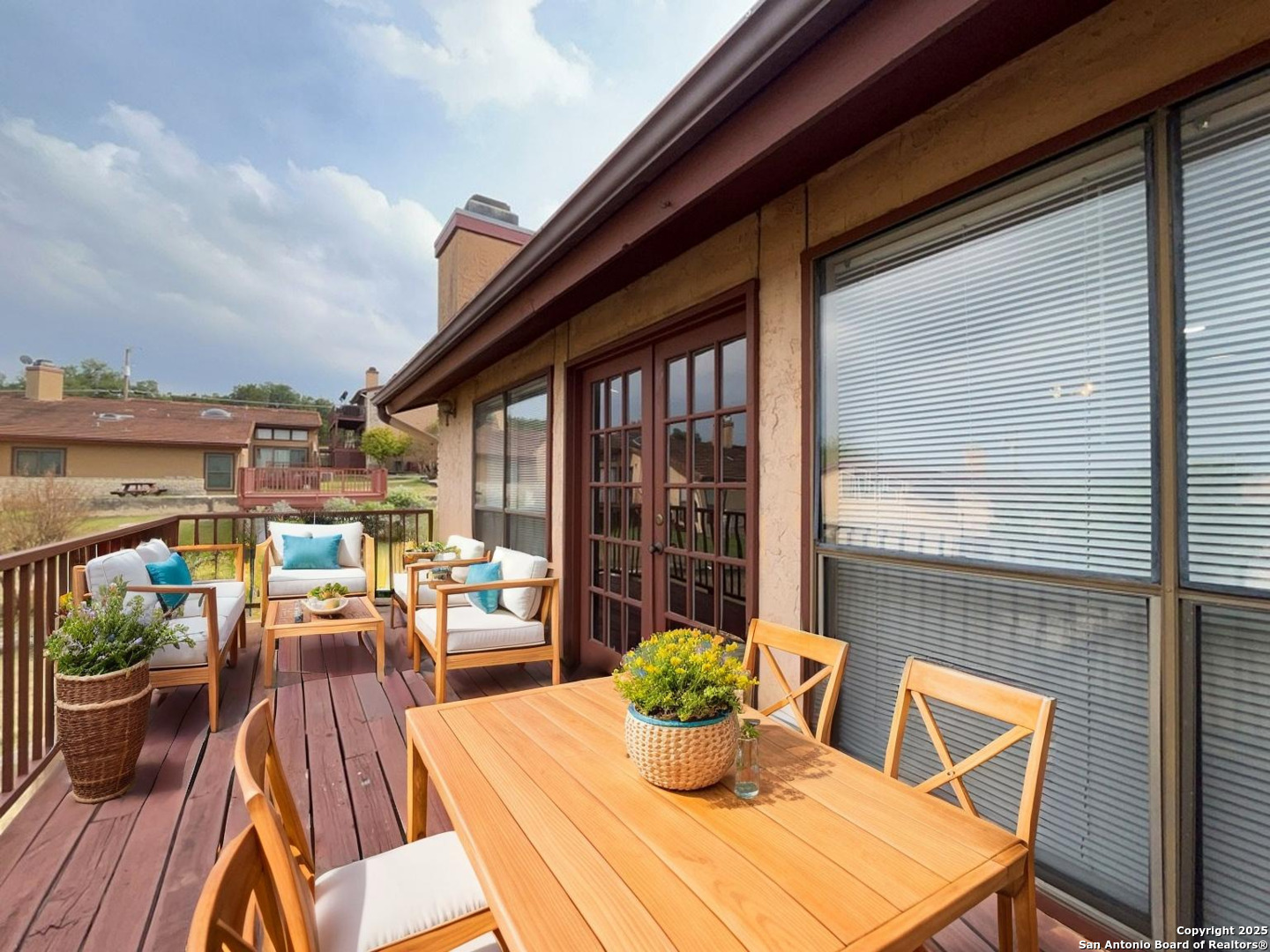 Welcome to this beautifully appointed 2-bedroom, 2.5-bath home offering a perfect blend of comfort and convenience. Step inside to discover a spacious living and dining room combo anchored by a cozy fireplace and enhanced with durable ceramic tile and vinyl flooring throughout. The open-concept living area also features a wet bar and wine fridge ideal for entertaining or relaxing evenings at home. Enjoy cooking in a thoughtfully designed kitchen that includes a breakfast bar, electric stove, microwave, dishwasher and a refrigerator. A stacked washer and dryer are conveniently tucked away in a laundry closet on the lower level for easy access. The primary suite features a private ensuite with a tub/shower combo and access to a covered balcony a peaceful retreat for morning coffee or evening wind-downs. The main living area also opens to an additional balcony, perfect for enjoying fresh air and scenic views. Additional highlights include an HVAC system with a programmable thermostat, an exterior storage building and a detached 2-car garage for ample parking and storage. Located near shopping and the beautiful Canyon Lake, this home offers both a tranquil setting and easy access to local conveniences. "RESIDENT BENEFIT PACKAGE" ($50/Month)*Renters Insurance Recommended*PET APPS $30 with credit card/debit payment per profile or $25 by ACH per profile. All information in this marketing material is deemed reliable but is not guaranteed. Prospective tenants are advised to independently verify all information, including property features, availability, and lease terms, to their satisfaction.