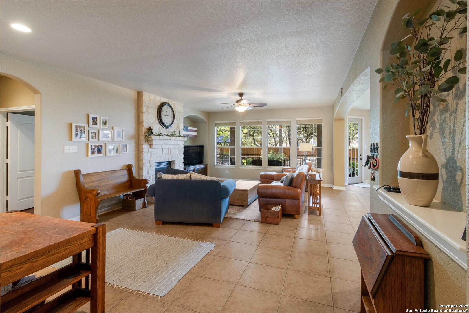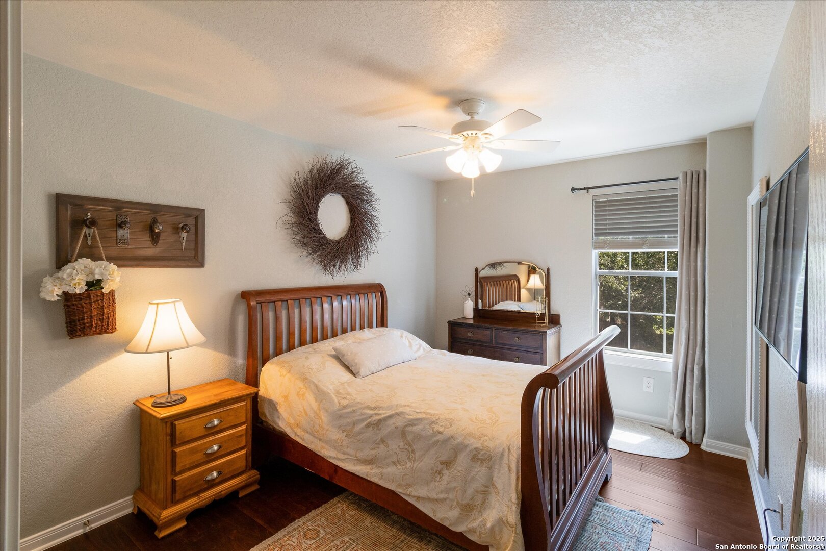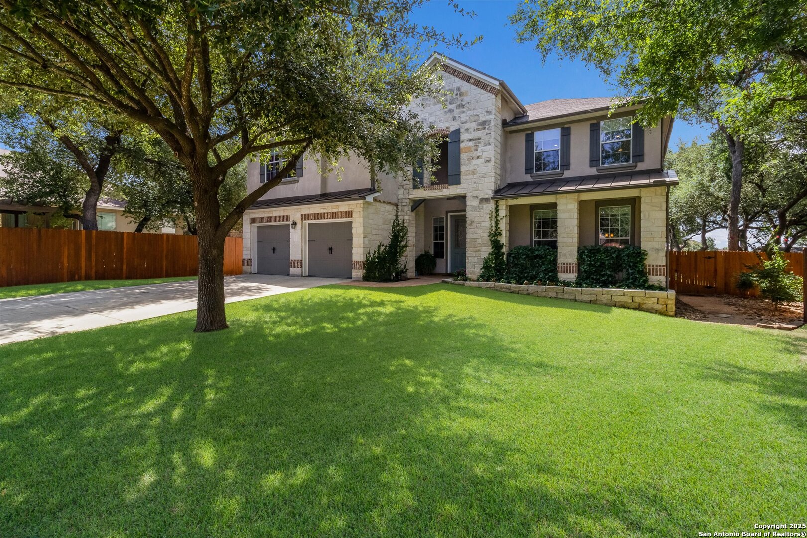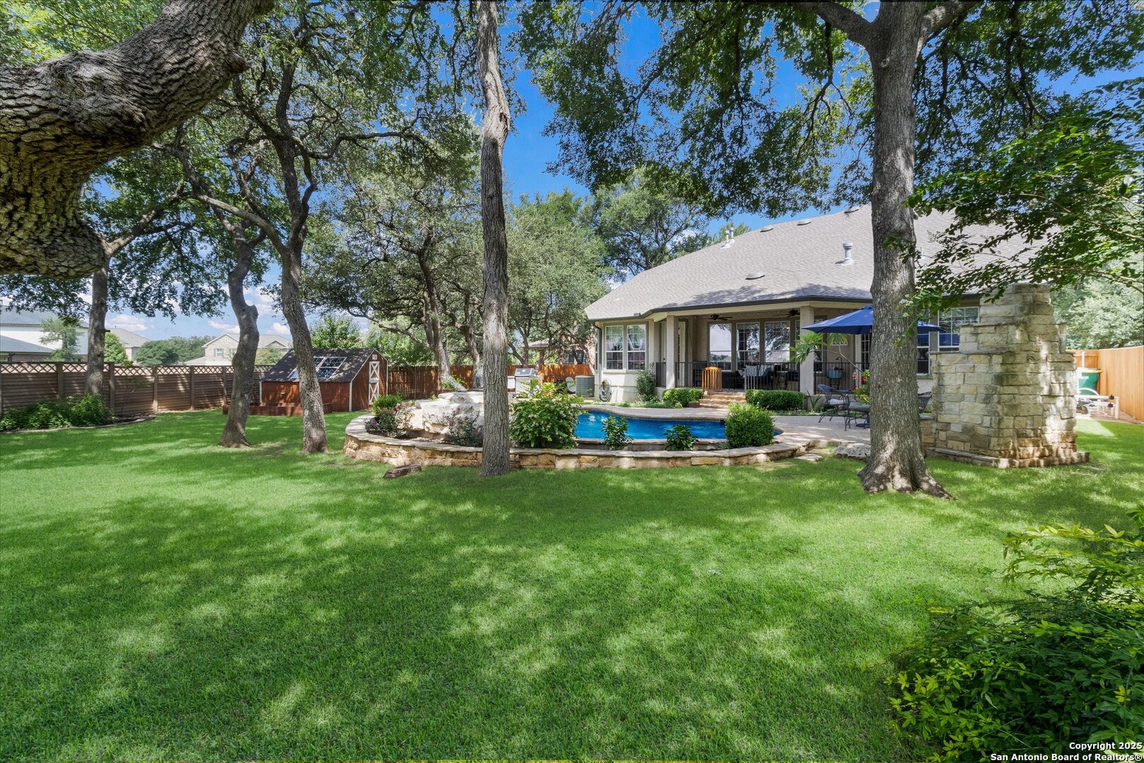 Welcome to a home that captivates from the moment you arrive, boasting charming curb appeal with its manicured lawn. Perfectly positioned on a quiet cul-de-sac just minutes from vibrant downtown Boerne, this beautifully upgraded residence offers the ultimate in comfort, charm, and convenience. Step inside this 4-bedroom, 3.5-bath home to discover a warm blend of hardwood and tile flooring flowing seamlessly into an open-concept living space. The thoughtfully upgraded kitchen features a dazzling quartz island and ample storage, ideal for effortless entertaining. A spacious layout includes a main-level primary suite for ease and privacy, while upstairs, three additional bedrooms and a versatile game room await, perfect for play or productivity. The backyard is a true retreat, with a sparkling Keith Zars inground pool, and a cozy outdoor fireplace, creating an inviting setting for gatherings or tranquil evenings under the stars. A sprinkler system keeps both front and back zoysia lawns pristine, complemented by a new roof installed in February 2022 and a reimagined laundry room for modern convenience. Within walking distance to top-rated elementary and high schools, as well as the neighborhood pool and playground, this home blends luxury with vibrant community living. Don't miss the chance to own this thoughtfully designed haven-schedule a tour today to experience its elegance and warmth firsthand.
