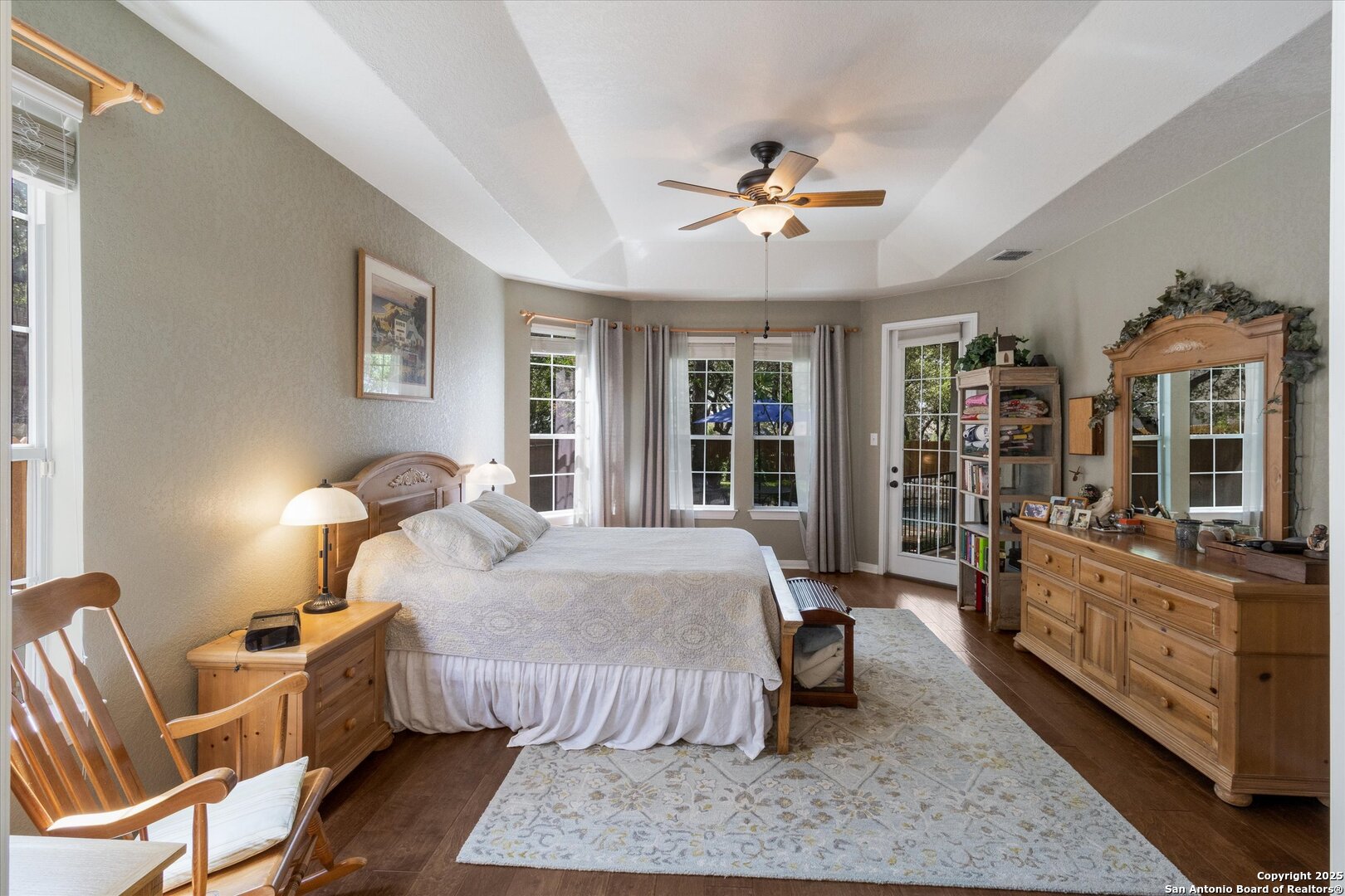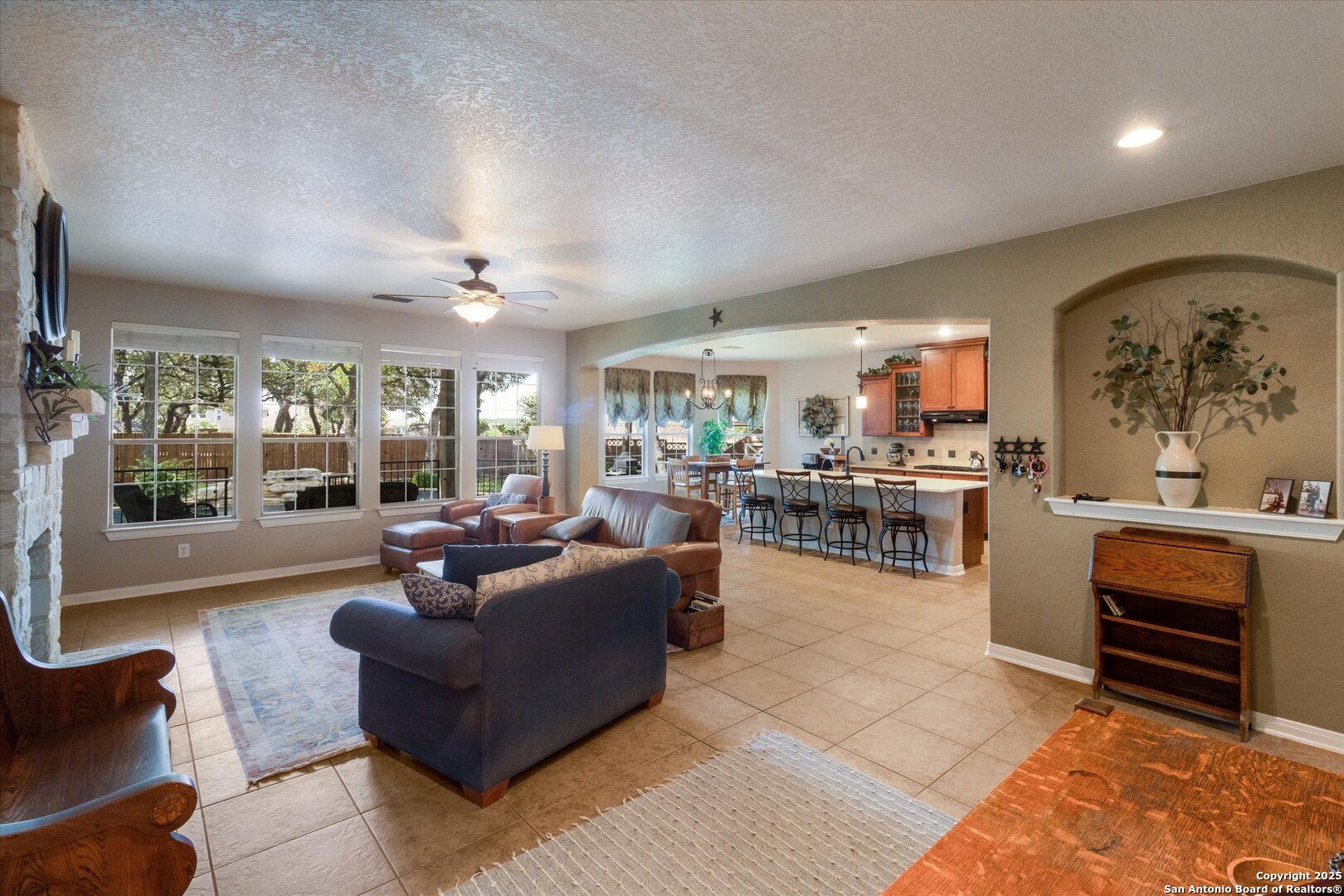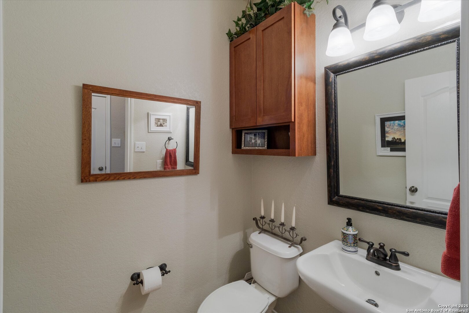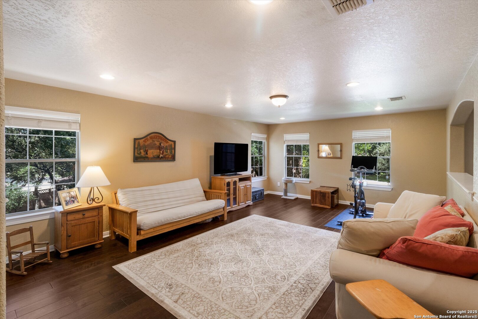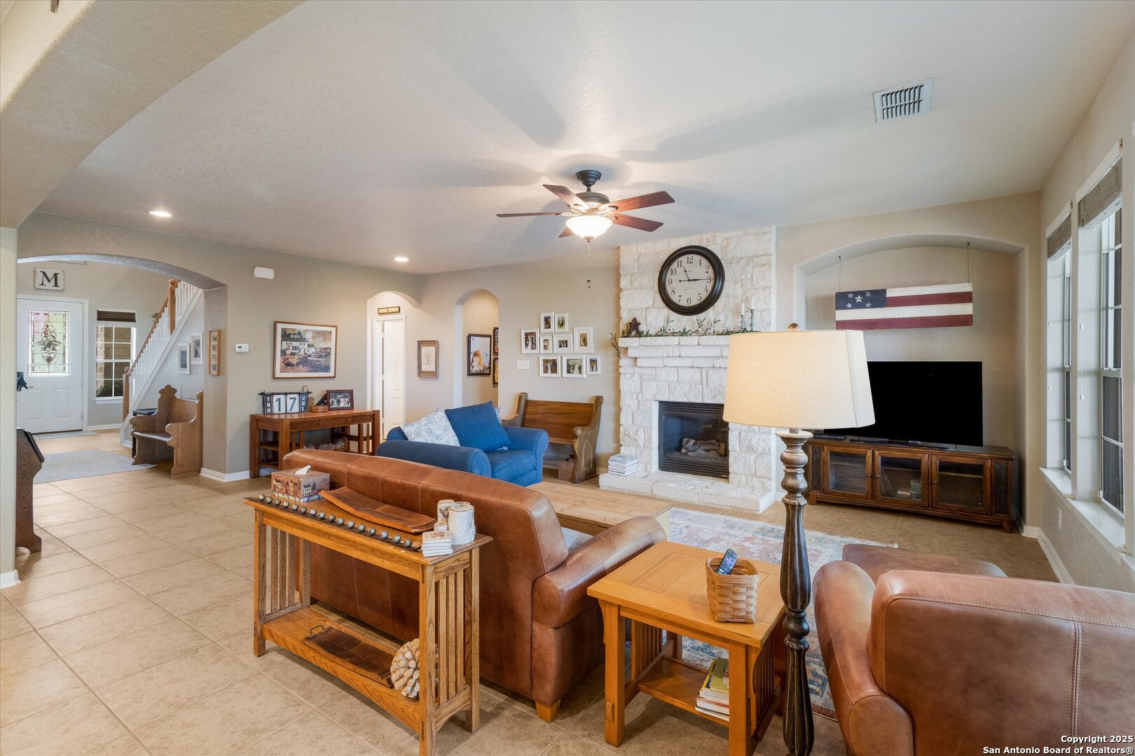Welcome to a home that captivates from the moment you arrive, boasting charming curb appeal with its manicured lawn. Perfectly positioned on a quiet cul-de-sac just minutes from vibrant downtown Boerne, this beautifully upgraded residence offers the ultimate in comfort, charm, and convenience. Step inside this 4-bedroom, 3.5-bath home to discover a warm blend of hardwood and tile flooring flowing seamlessly into an open-concept living space. The thoughtfully upgraded kitchen features a dazzling quartz island and ample storage, ideal for effortless entertaining. A spacious layout includes a main-level primary suite for ease and privacy, while upstairs, three additional bedrooms and a versatile game room await, perfect for play or productivity. The backyard is a true retreat, with a sparkling Keith Zars inground pool, and a cozy outdoor fireplace, creating an inviting setting for gatherings or tranquil evenings under the stars. A sprinkler system keeps both front and back zoysia lawns pristine, complemented by a new roof installed in February 2022 and a reimagined laundry room for modern convenience. Within walking distance to top-rated elementary and high schools, as well as the neighborhood pool and playground, this home blends luxury with vibrant community living. Don't miss the chance to own this thoughtfully designed haven-schedule a tour today to experience its elegance and warmth firsthand.