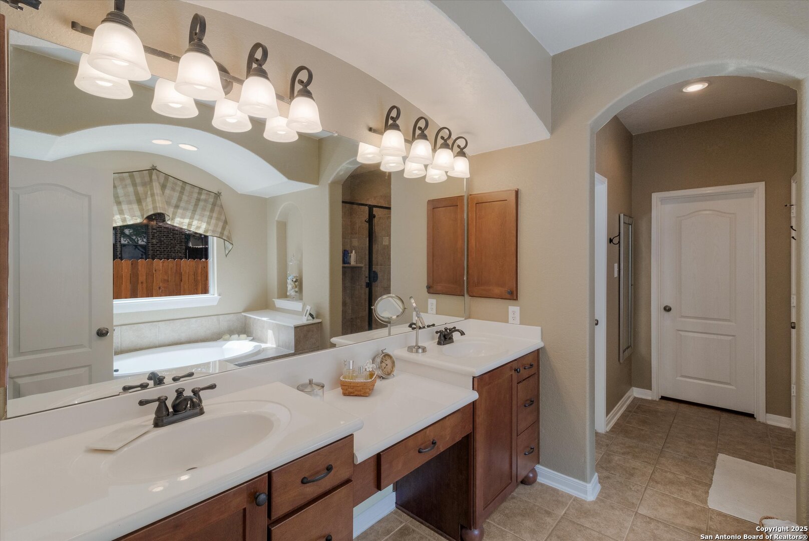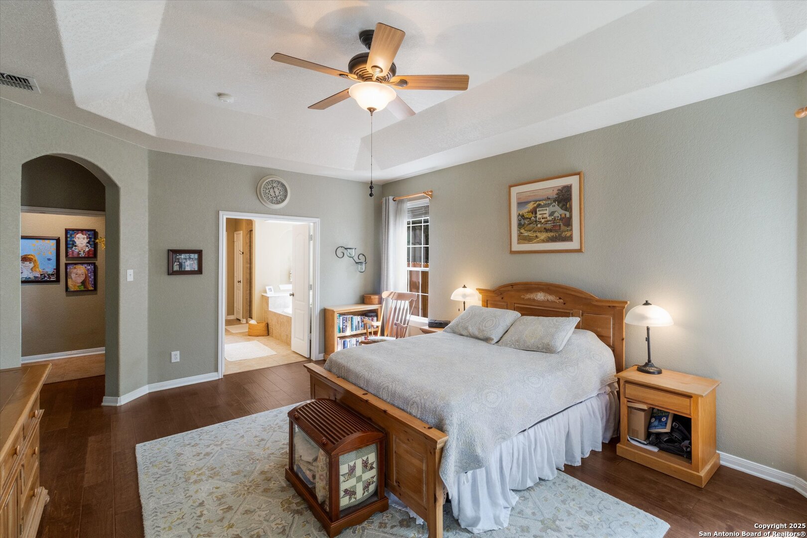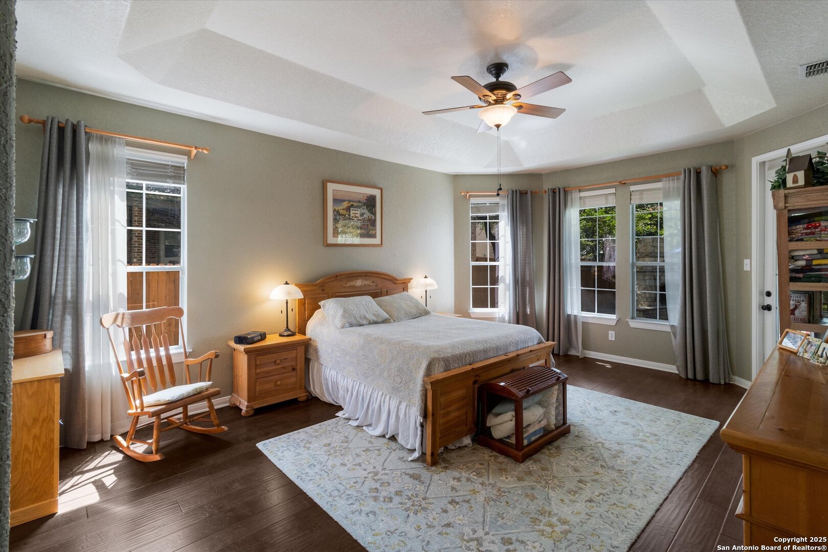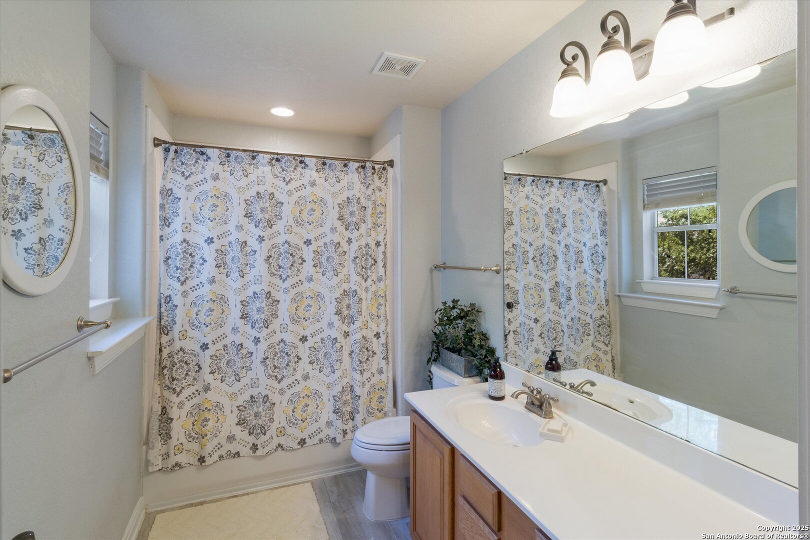 Welcome to a home that captivates from the moment you arrive, boasting charming curb appeal with its manicured lawn. Perfectly positioned on a quiet cul-de-sac just minutes from vibrant downtown Boerne, this beautifully upgraded residence offers the ultimate in comfort, charm, and convenience. Step inside this 4-bedroom, 3.5-bath home to discover a warm blend of hardwood and tile flooring flowing seamlessly into an open-concept living space. The thoughtfully upgraded kitchen features a dazzling quartz island and ample storage, ideal for effortless entertaining. A spacious layout includes a main-level primary suite for ease and privacy, while upstairs, three additional bedrooms and a versatile game room await, perfect for play or productivity. The backyard is a true retreat, with a sparkling Keith Zars inground pool, and a cozy outdoor fireplace, creating an inviting setting for gatherings or tranquil evenings under the stars. A sprinkler system keeps both front and back zoysia lawns pristine, complemented by a new roof installed in February 2022 and a reimagined laundry room for modern convenience. Within walking distance to top-rated elementary and high schools, as well as the neighborhood pool and playground, this home blends luxury with vibrant community living. Don't miss the chance to own this thoughtfully designed haven-schedule a tour today to experience its elegance and warmth firsthand.