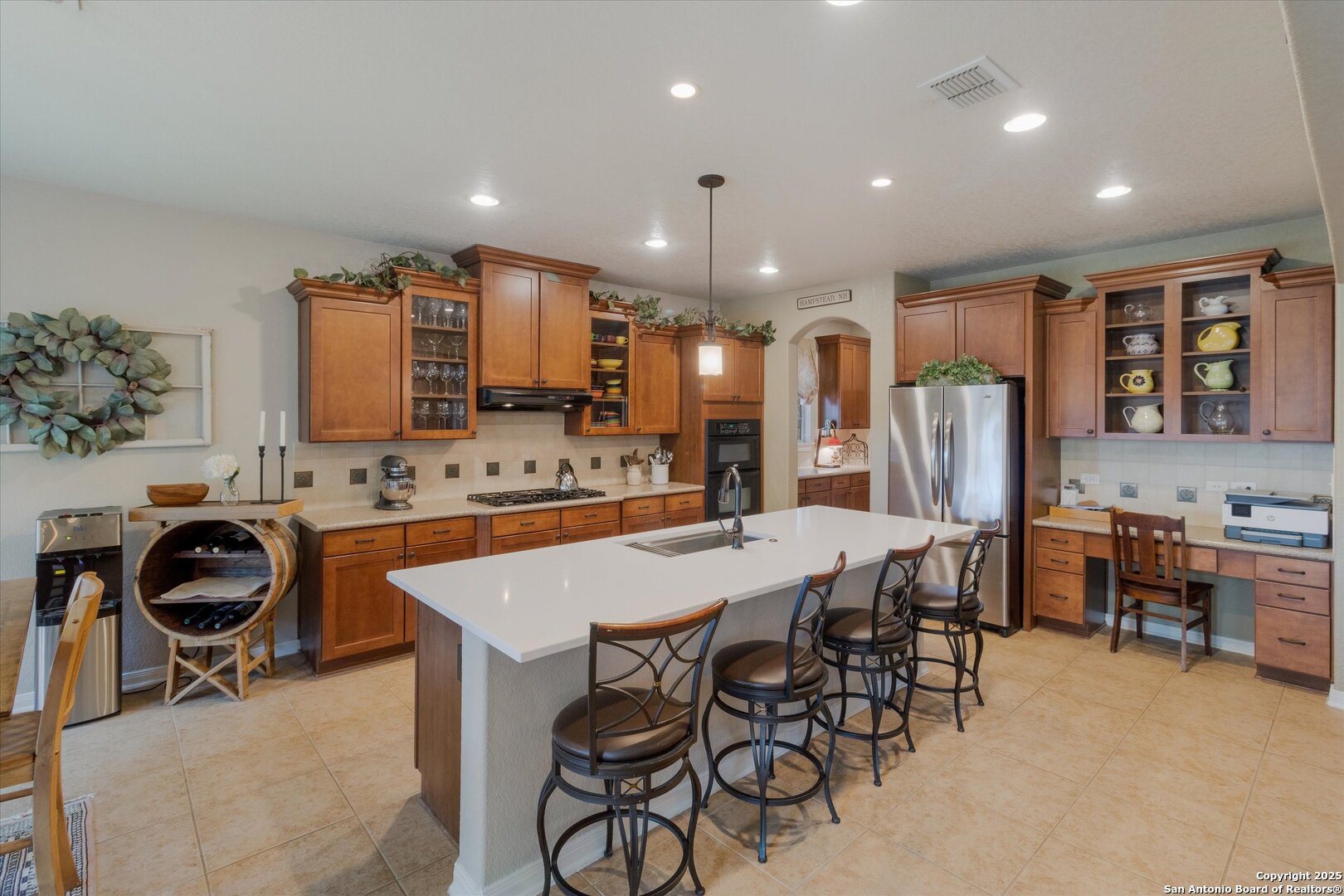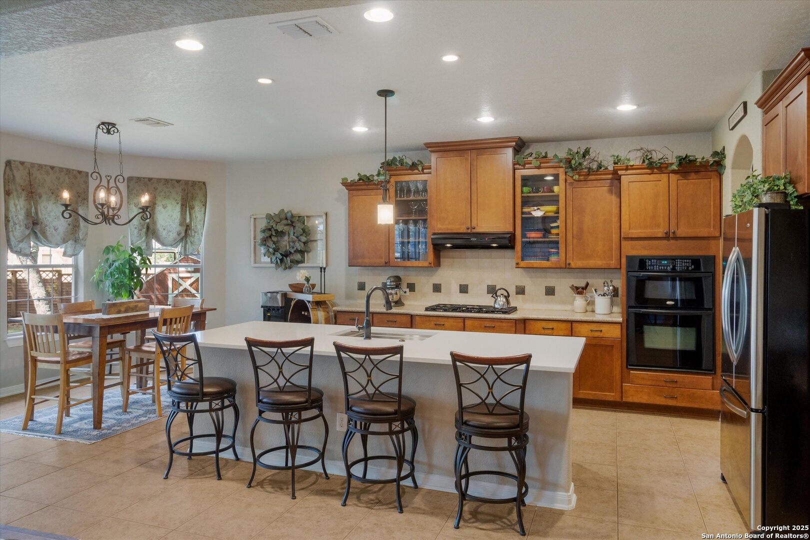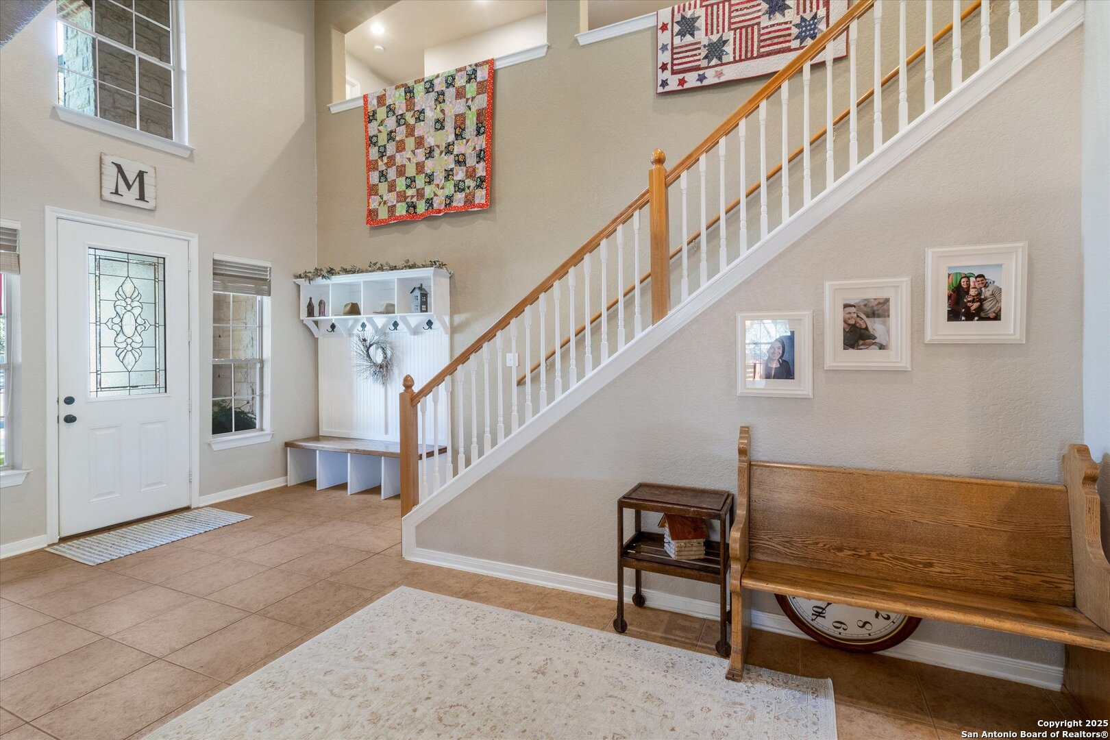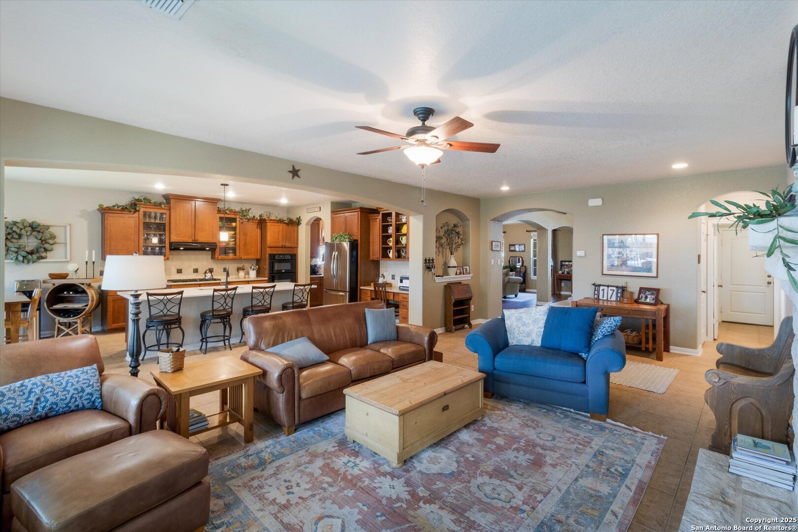 Welcome to a home that captivates from the moment you arrive, boasting charming curb appeal with its manicured lawn. Perfectly positioned on a quiet cul-de-sac just minutes from vibrant downtown Boerne, this beautifully upgraded residence offers the ultimate in comfort, charm, and convenience. Step inside this 4-bedroom, 3.5-bath home to discover a warm blend of hardwood and tile flooring flowing seamlessly into an open-concept living space. The thoughtfully upgraded kitchen features a dazzling quartz island and ample storage, ideal for effortless entertaining. A spacious layout includes a main-level primary suite for ease and privacy, while upstairs, three additional bedrooms and a versatile game room await, perfect for play or productivity. The backyard is a true retreat, with a sparkling Keith Zars inground pool, and a cozy outdoor fireplace, creating an inviting setting for gatherings or tranquil evenings under the stars. A sprinkler system keeps both front and back zoysia lawns pristine, complemented by a new roof installed in February 2022 and a reimagined laundry room for modern convenience. Within walking distance to top-rated elementary and high schools, as well as the neighborhood pool and playground, this home blends luxury with vibrant community living. Don't miss the chance to own this thoughtfully designed haven-schedule a tour today to experience its elegance and warmth firsthand.