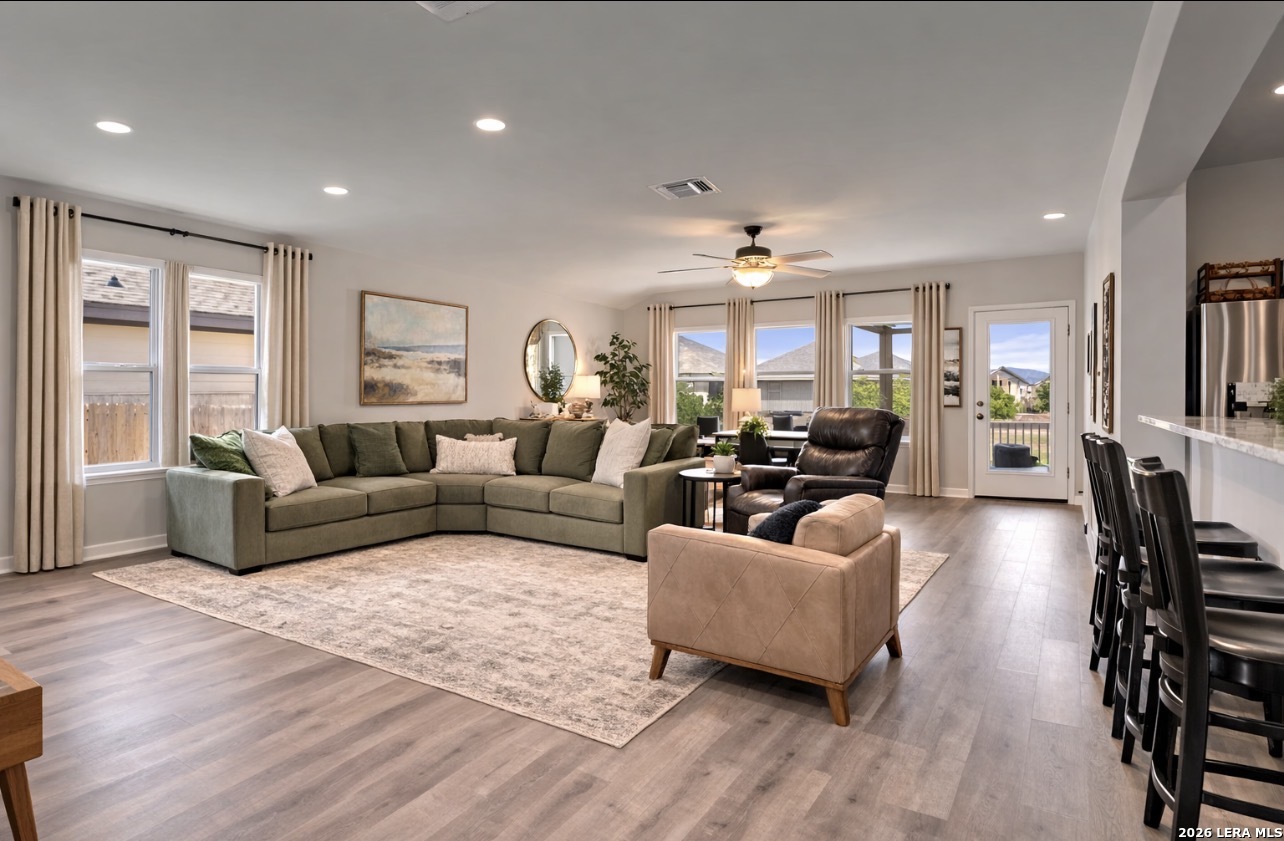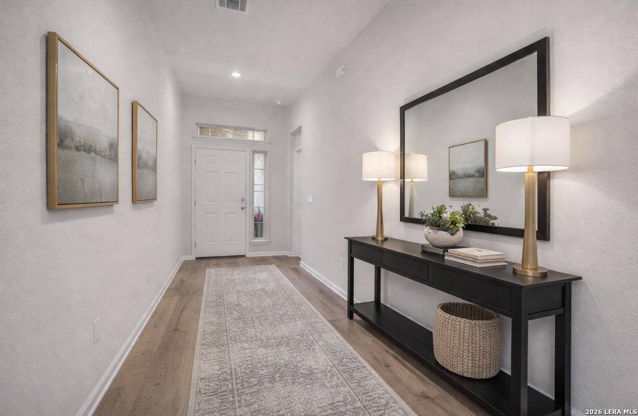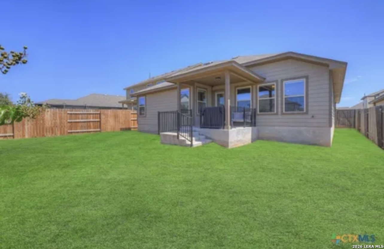 Welcome to 116 Gray Wolf, a home that's better than new and comes with major savings! This beautifully maintained 3-bedroom, 2-bath residence with 1753 sqft is located in the desirable Trace community, offering everything you could possibly need and more. Forget about the stress and upfront costs because the $11,000 Public Improvement District (PID) has already been paid in full, saving you thousands of dollars in interest payments. Additionally, the home boasts many upgrades, including an LG refrigerator, cordless blinds on every window. Security is enhanced with Blink cameras, and the exterior is complemented by new sod that's less than a year old, a Rainbird Sprinkler system, and a Blackstone Griddle. This move-in ready home is packed with additional upgrades, such as stunning Fantasy White granite countertops, a huge kitchen island, bright white cabinetry, and a clean modern design featuring gorgeous Beach Oak tile throughout. The spacious primary suite includes a walk-in shower, double vanities, and ample natural light. A covered back patio provides the perfect spot for relaxing evenings, surrounded by easy maintenance landscaping, or your new sparkling pool. 5 more years on the Builder's structural warranty, and the opportunity for a quick move-in without surprises or builder's fees, make this home better than new! Add a sparkling neighbothood pool, park, walking trails, and Rodriquez Elementary School right in the subdivision and this home becomes the smart choice for buyers who are looking for value, comfort, convenience, and family fun all wrapped into one awesome package! Tax rate 1.96