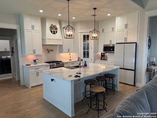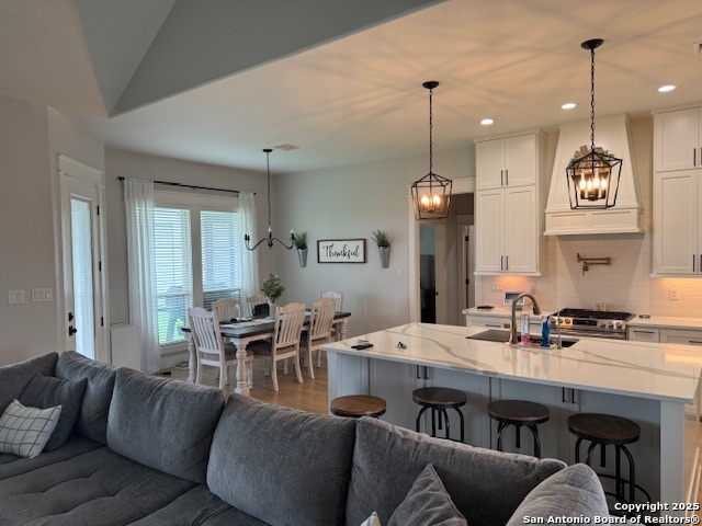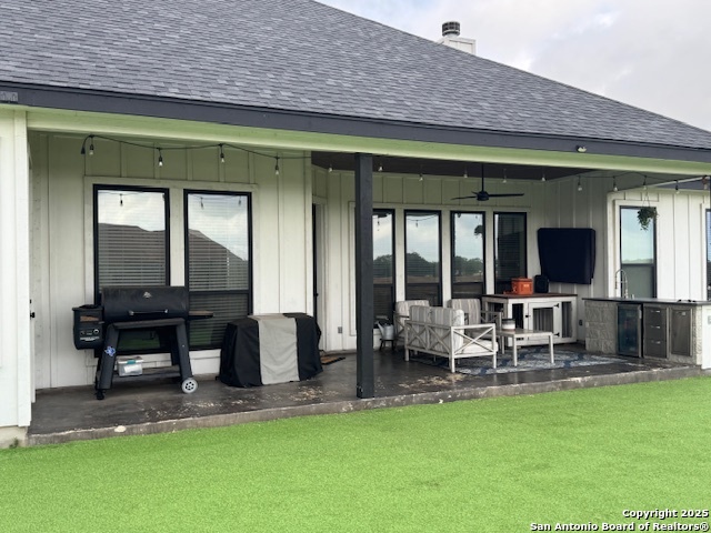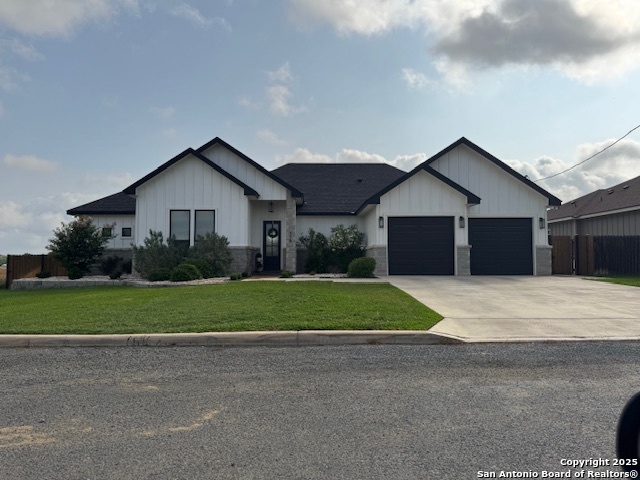DON'T MISS OUT! This beautiful farmhouse is loaded with custom upgrades and is built to entertain. Located just 1 block from the city park with playground, walking path, and covered pavilion, the exterior features include front yard sprinklers, ASTROTURF in the backyard, outside living area complete with tv and wet bar area, and extra storage/workshop with power. You will also enjoy a gorgeous country view. The interior boasts gorgeous tile and laminate floors, tall ceilings with beautiful exposed beams, and a dreamy fireplace. Solid quartz countertops throughout the entire home, walk-in closets in each room, and the ability to convert a bedroom to an office/study. The stainless steel appliances INCLUDE dishwasher, ice maker, and gas range set into custom cabinets! This home is ready to build a lifetime of family memories!