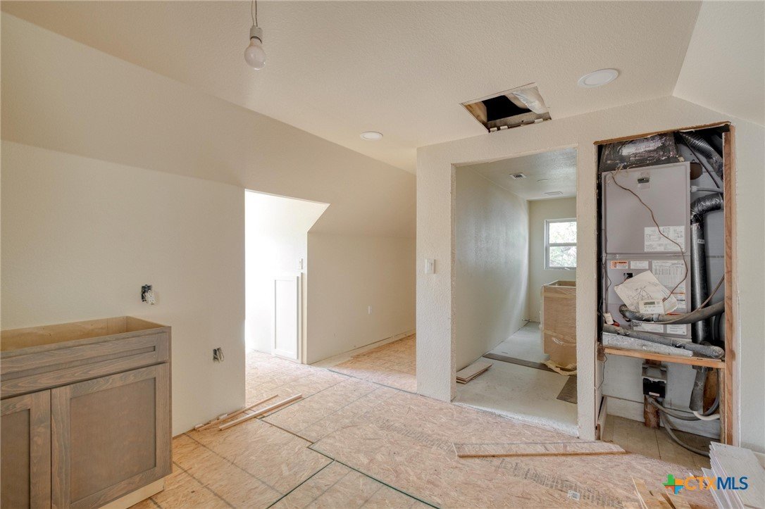 Truly One-of-a-Kind Home Full of Charm & Potential! This unique brick beauty, located on a corner lot in the heart of Luling, has been completely gutted and the renovation is already underway—now it's your chance to finish it and make it your own! Many materials are included to help complete the project. Main Home (Downstairs): Approx. 1,547 sq ft | 3 Bedrooms | 2 Full Baths. Features include a spacious living area with a charming, quaint fireplace, a separate dining room, and a kitchen that opens to both living and dining spaces. This home also a nice laundry room! Beautiful hardwood floors add warmth and character. Upstairs Unit: Approx. 1,029 sq ft | 1 Bedroom| 1 Full Bath and includes a kitchen, living area and laundry room. With its own private entrance, this upstairs unit is ideal as an income-producing rental, guest suite, or multi-generational living space (A stairway could be added inside the home to connect the upstairs unit to the main floor!) Additional Highlights: Roof replaced in 2019, new electric panel, new electric wiring, new plumbing, foam insulation in roof rafters & exterior walls, baffling insulation in 1st floor ceiling and interior walls. New sheet rock walls! New Central AC and Heat. Custom cabinets set in place in both kitchens. New energy efficient windows! Detached garage. Located just minutes from local schools. Easy commute to nearby cities! This property is brimming with character and opportunity—perfect for investors, DIYers, or anyone looking to create their dream home in a great location. Don’t miss out on this Luling gem! (See attached floor plans)