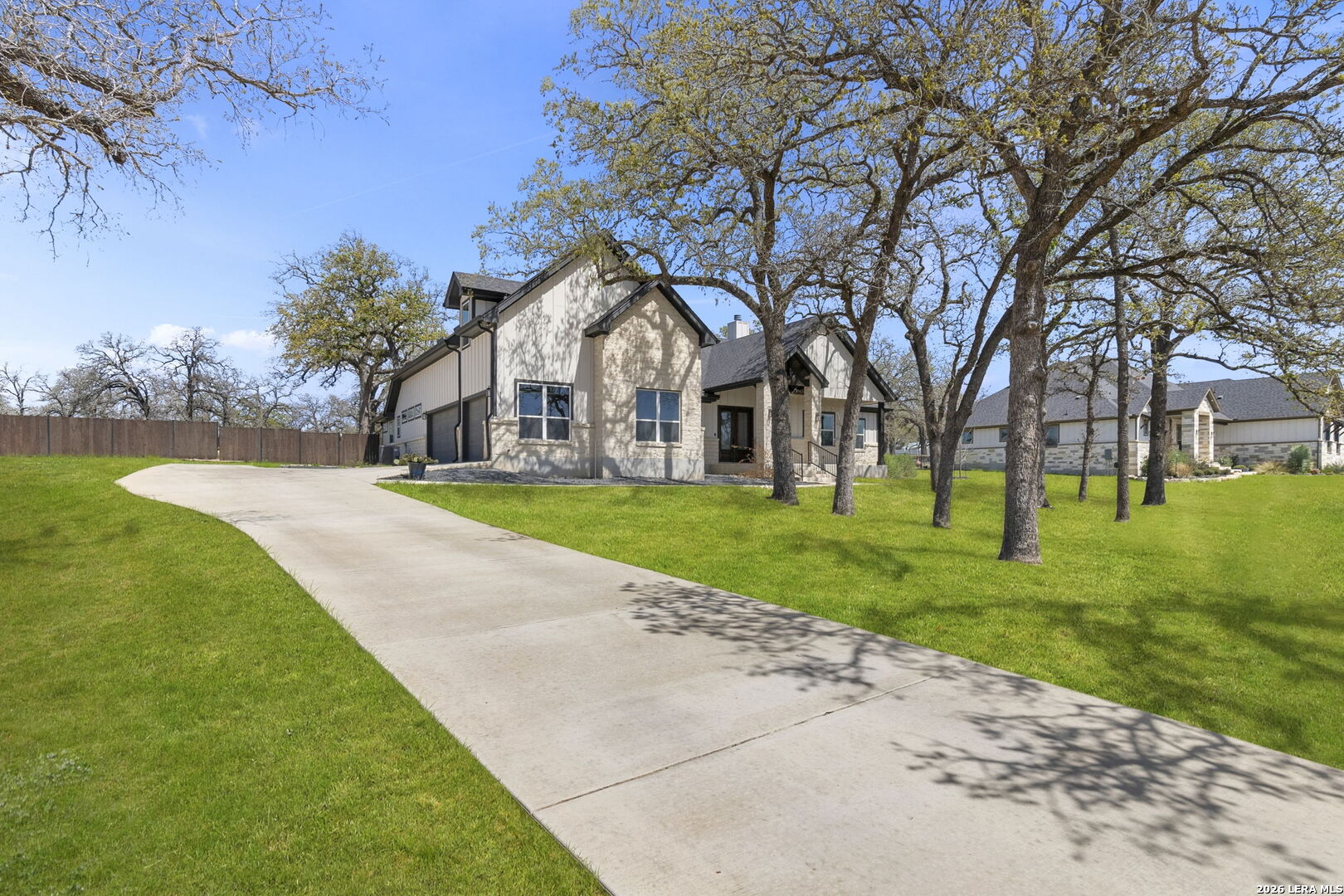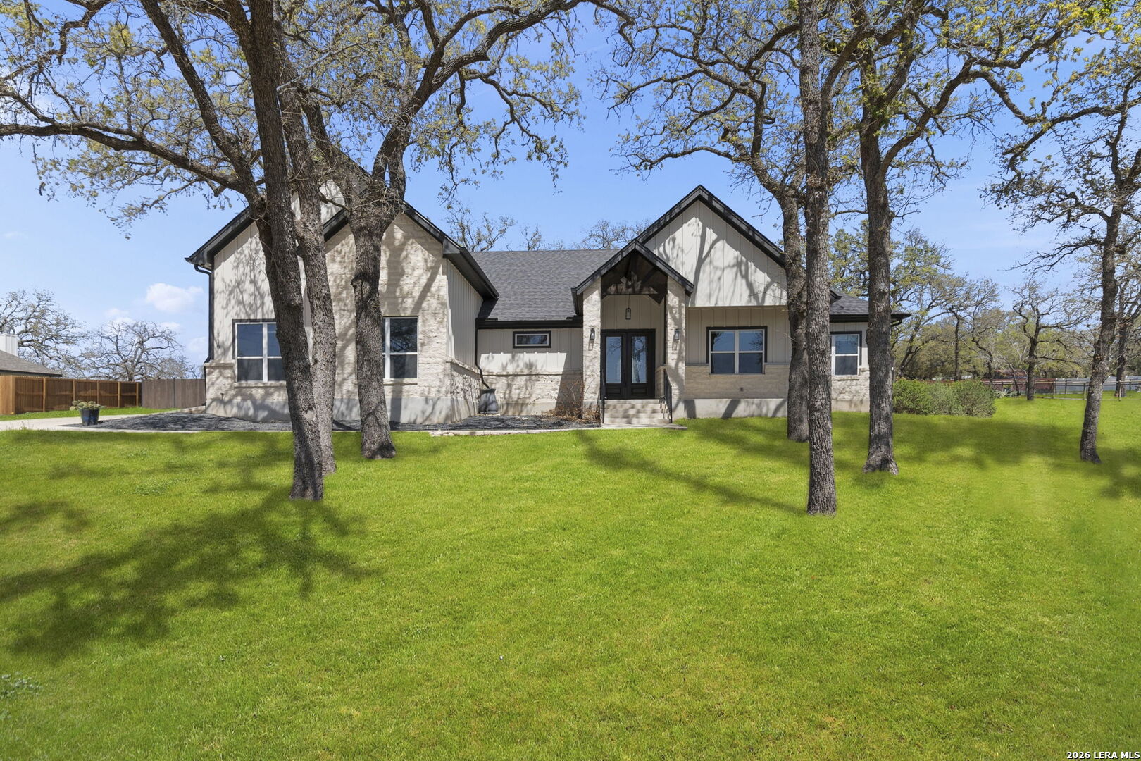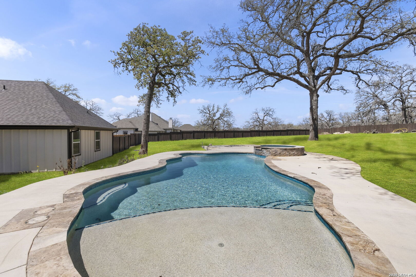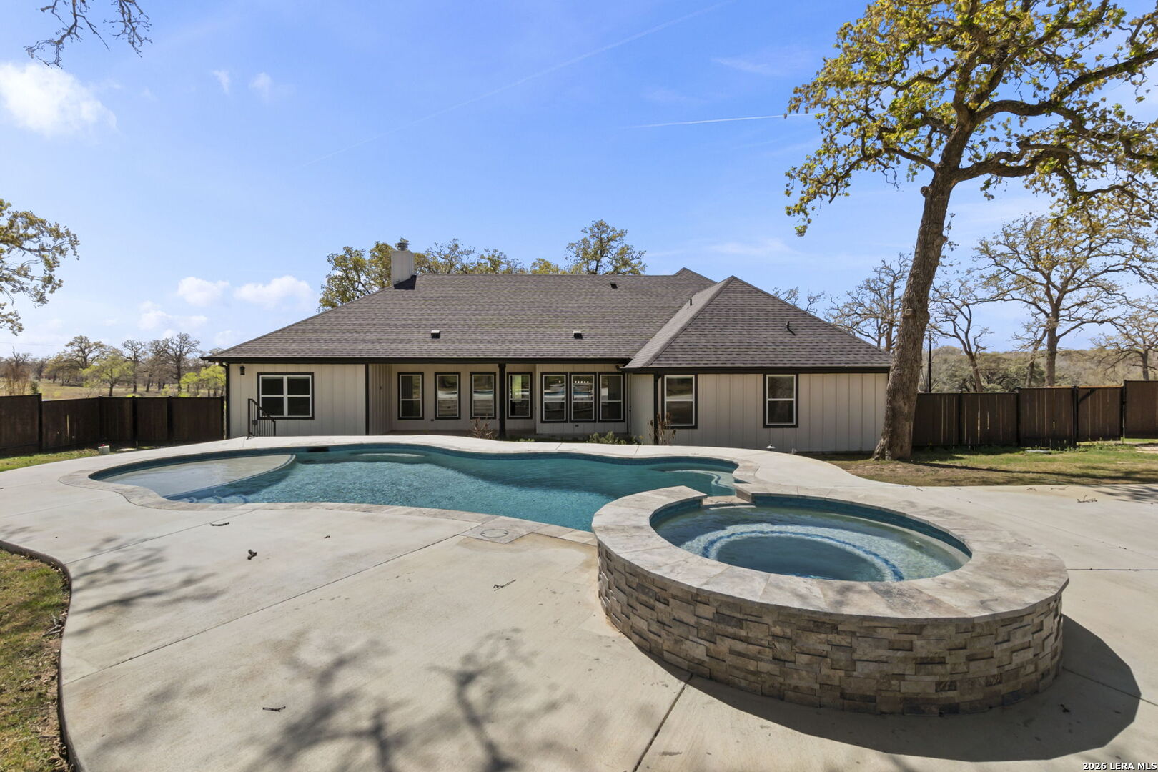 Exquisite four-bedroom residence situated on a full acre in the prestigious Timbers gated subdivision within La Vernia ISD. Thoughtfully designed, this home features a sophisticated open floor plan with soaring ceilings and an expansive bonus room, perfect for a media retreat or game room. The gourmet kitchen is beautifully appointed with granite countertops, custom cabinetry, and a remarkable hidden walk-in pantry, discreetly concealed behind what appears to be double cabinetry. Propane has been added to enhance both convenience and efficiency. The private primary suite offers a serene escape, complete with a spa-inspired bath, a spacious walk-in closet, and direct access to the covered back patio. Step outside to your own backyard oasis, where a sparkling pool and expansive grounds are framed by mature oak trees, ideal for refined entertaining or quiet relaxation. Additional highlights include a spacious three-car garage with sleek epoxy-sealed flooring. This home offers exceptional detail throughout and is truly best appreciated in person.