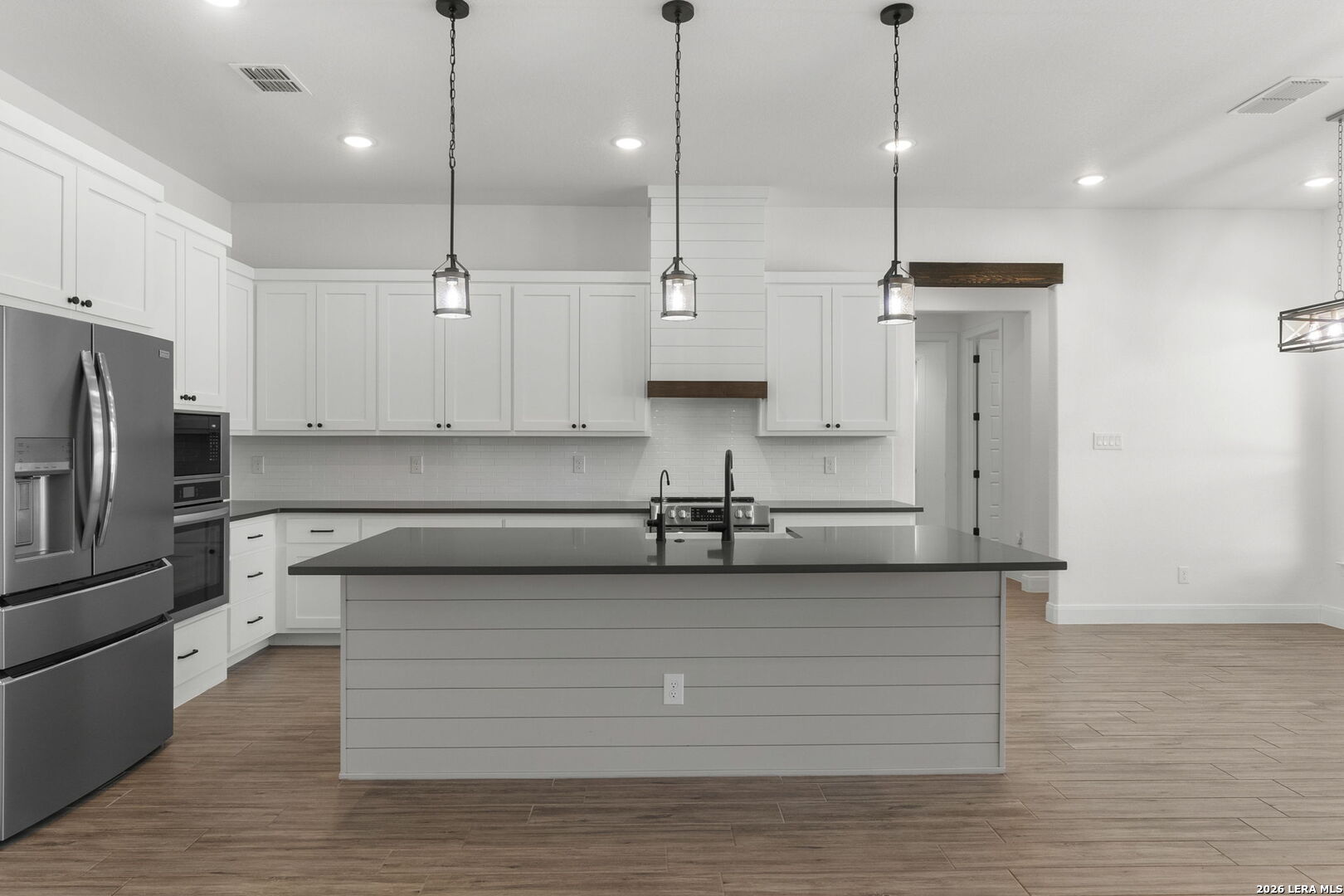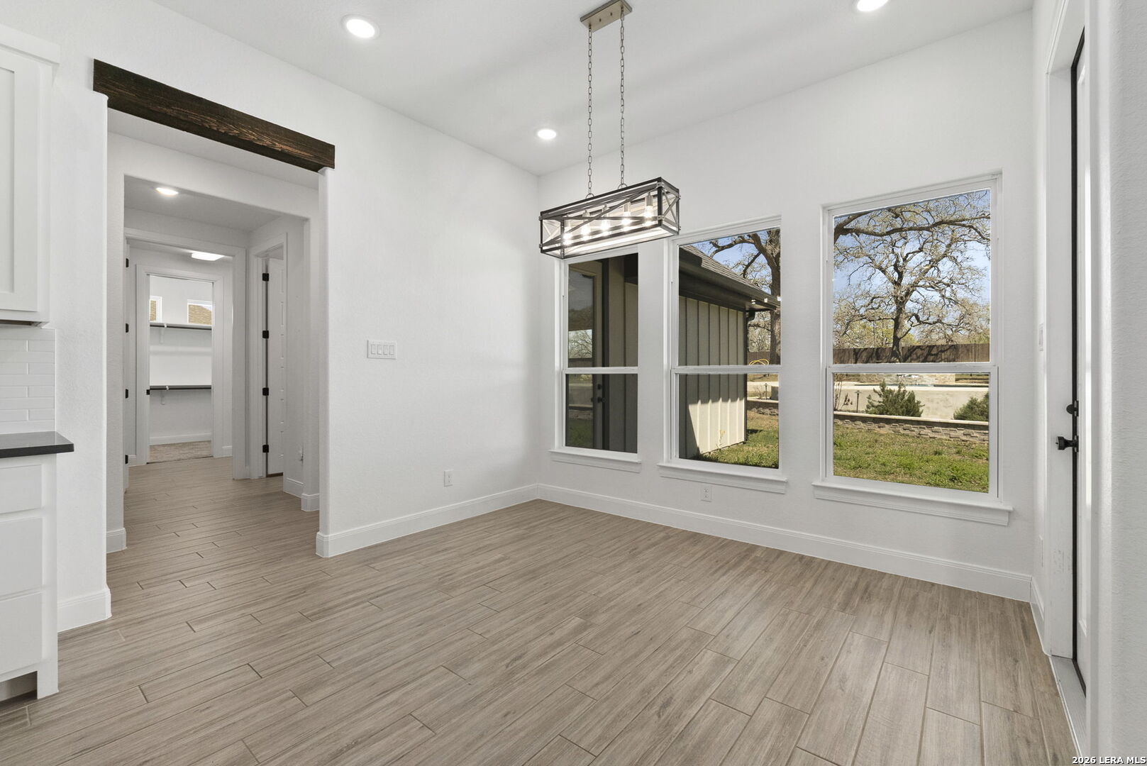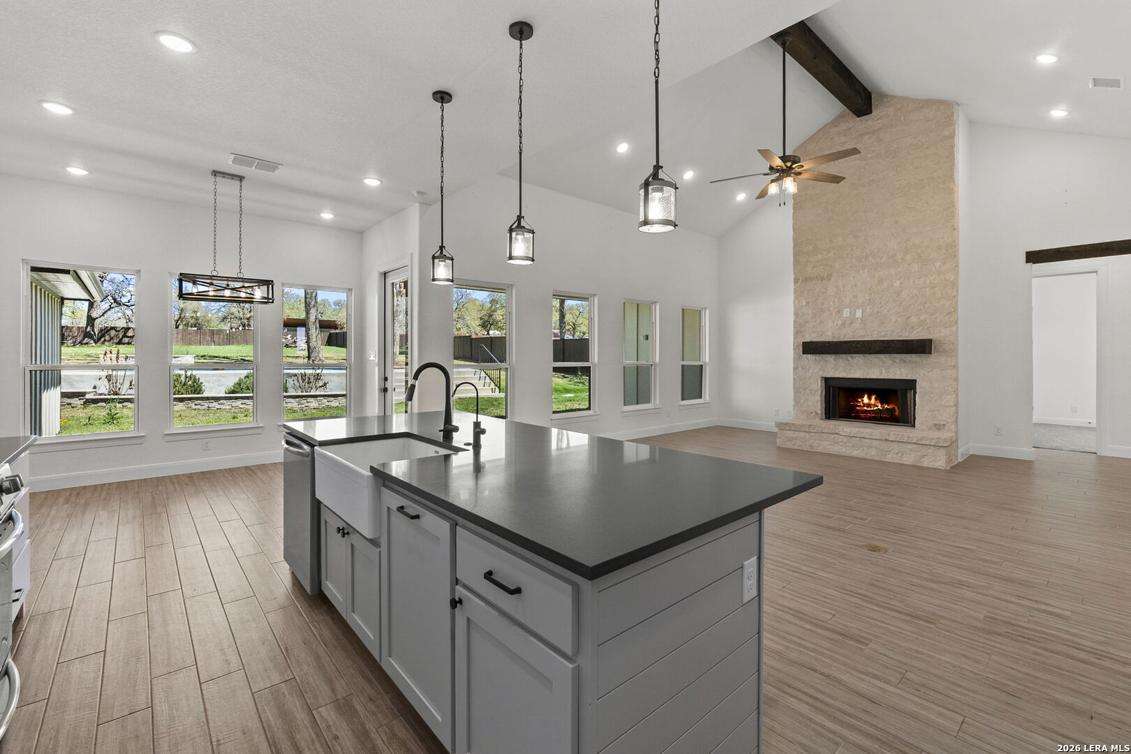 Exquisite four-bedroom residence situated on a full acre in the prestigious Timbers gated subdivision within La Vernia ISD. Thoughtfully designed, this home features a sophisticated open floor plan with soaring ceilings and an expansive bonus room, perfect for a media retreat or game room. The gourmet kitchen is beautifully appointed with granite countertops, custom cabinetry, and a remarkable hidden walk-in pantry, discreetly concealed behind what appears to be double cabinetry. Propane has been added to enhance both convenience and efficiency. The private primary suite offers a serene escape, complete with a spa-inspired bath, a spacious walk-in closet, and direct access to the covered back patio. Step outside to your own backyard oasis, where a sparkling pool and expansive grounds are framed by mature oak trees, ideal for refined entertaining or quiet relaxation. Additional highlights include a spacious three-car garage with sleek epoxy-sealed flooring. This home offers exceptional detail throughout and is truly best appreciated in person.