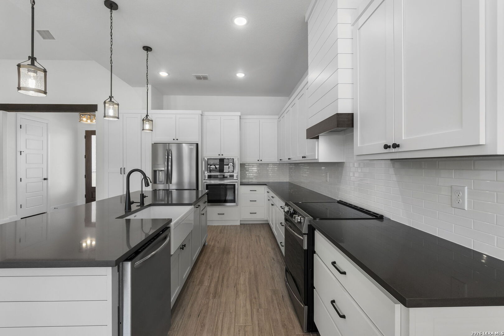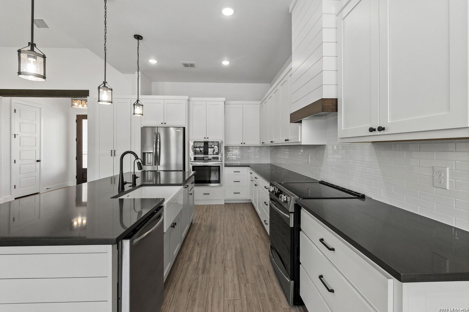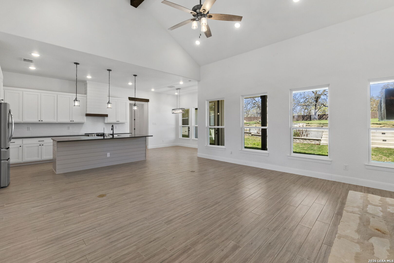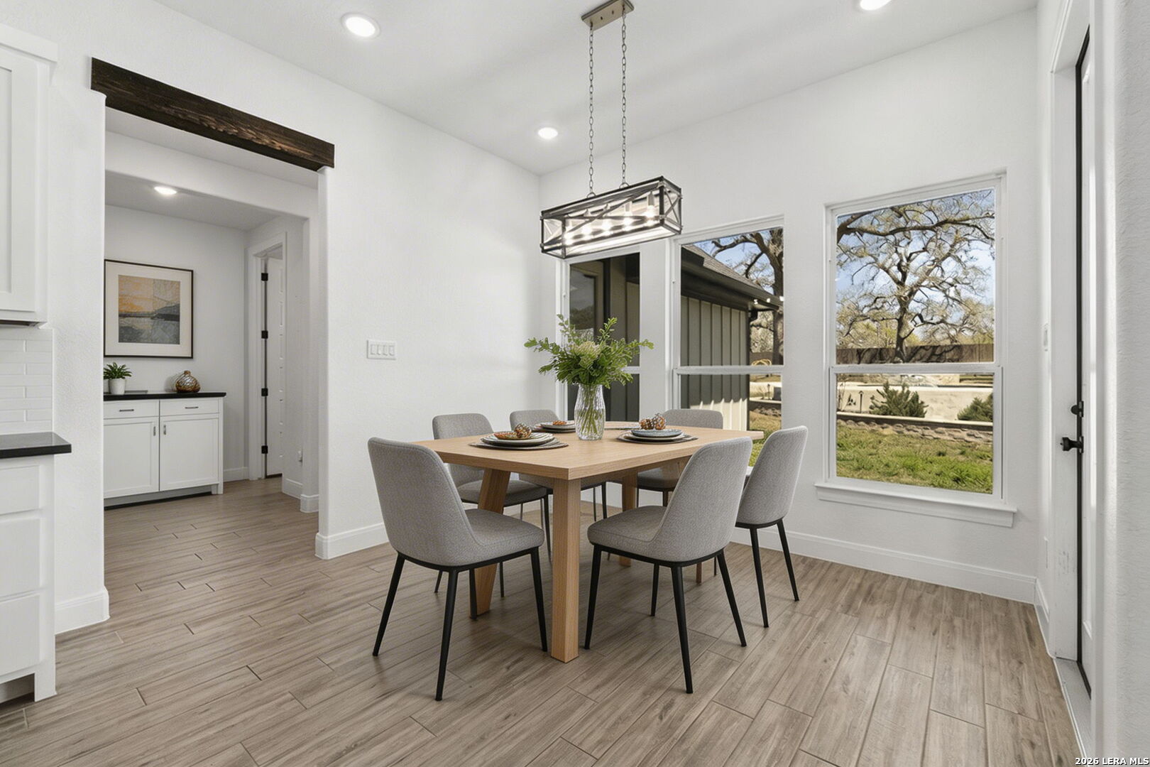 Exquisite four-bedroom residence situated on a full acre in the prestigious Timbers gated subdivision within La Vernia ISD. Thoughtfully designed, this home features a sophisticated open floor plan with soaring ceilings and an expansive bonus room, perfect for a media retreat or game room. The gourmet kitchen is beautifully appointed with granite countertops, custom cabinetry, and a remarkable hidden walk-in pantry, discreetly concealed behind what appears to be double cabinetry. Propane has been added to enhance both convenience and efficiency. The private primary suite offers a serene escape, complete with a spa-inspired bath, a spacious walk-in closet, and direct access to the covered back patio. Step outside to your own backyard oasis, where a sparkling pool and expansive grounds are framed by mature oak trees, ideal for refined entertaining or quiet relaxation. Additional highlights include a spacious three-car garage with sleek epoxy-sealed flooring. This home offers exceptional detail throughout and is truly best appreciated in person.