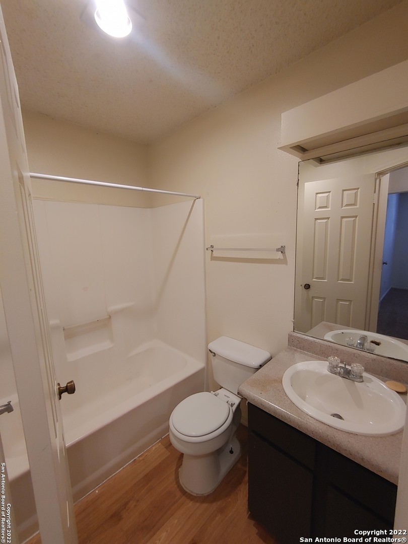 2 story 2 bd 1.5 bath with W/D connections. Vinyl wood plank floors through out, carpeting upstairs, fenced in back yard/porch, assigned parking space. Tenant will pay $45 per month for water service. Close to Wurzbach Pkwy, 281, nearby shopping, restaurants.***Tenant will pay $45 per month for water service.**