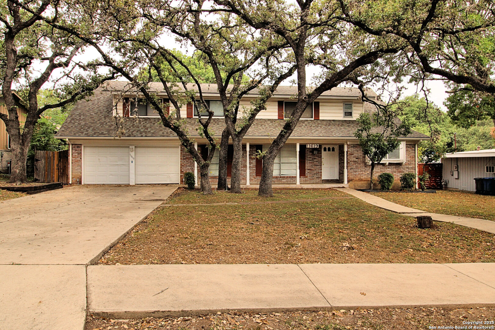 2 Story home with great curb appeal in an Attractive well established area of North Central San Antonio with lots of Trees and well kept neighboring homes. Priced to allow you to update this Mid Century home as desired. Newer Roof, HVAC 2023, Large Private Back yard, several Mature Oak Trees front and back providing shade. Spacious family room has a vaulted ceiling with exposed beams, Brick wood burning fireplace. Galley kitchen with easy access to Living and Formal Dining. Large private backyard features a patio for outdoor entertaining. No HOA. NEISD close to Schools, Shopping, Highway access and the airport. Motivated Seller listening to Reasonable Offers!