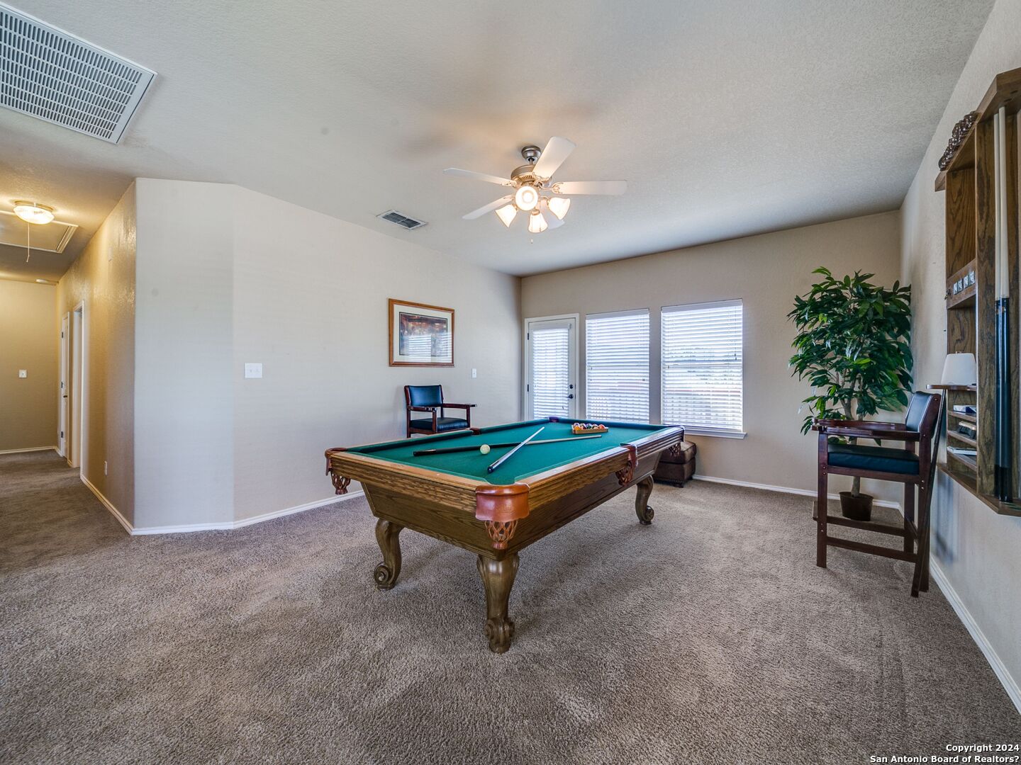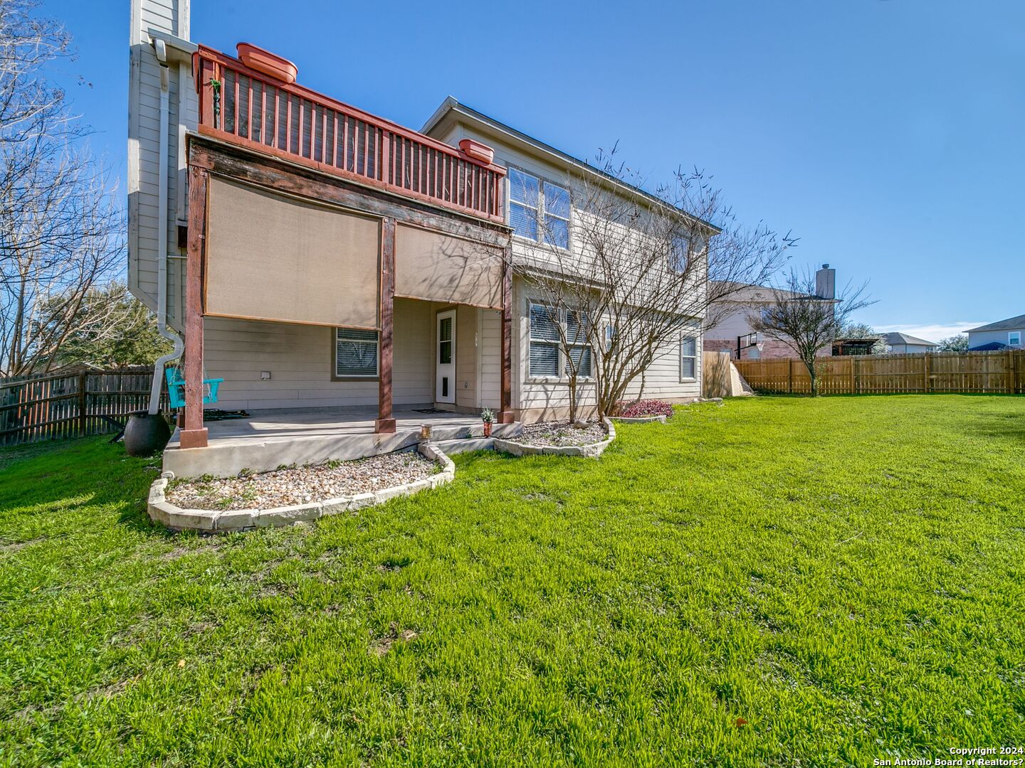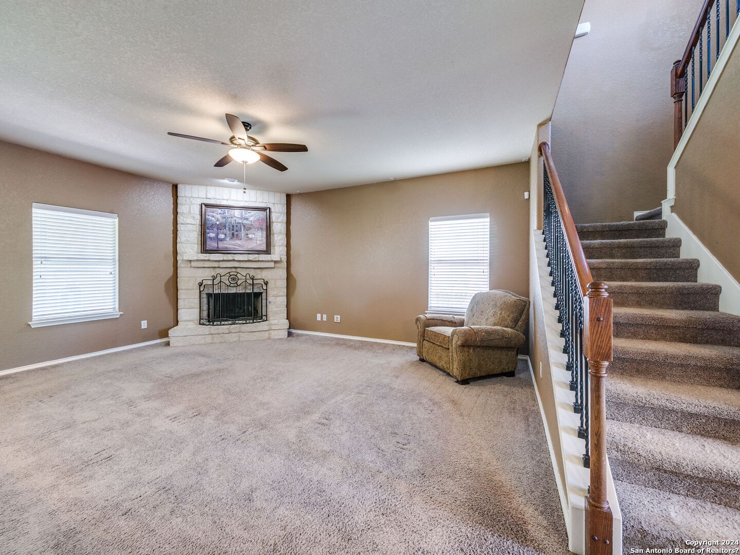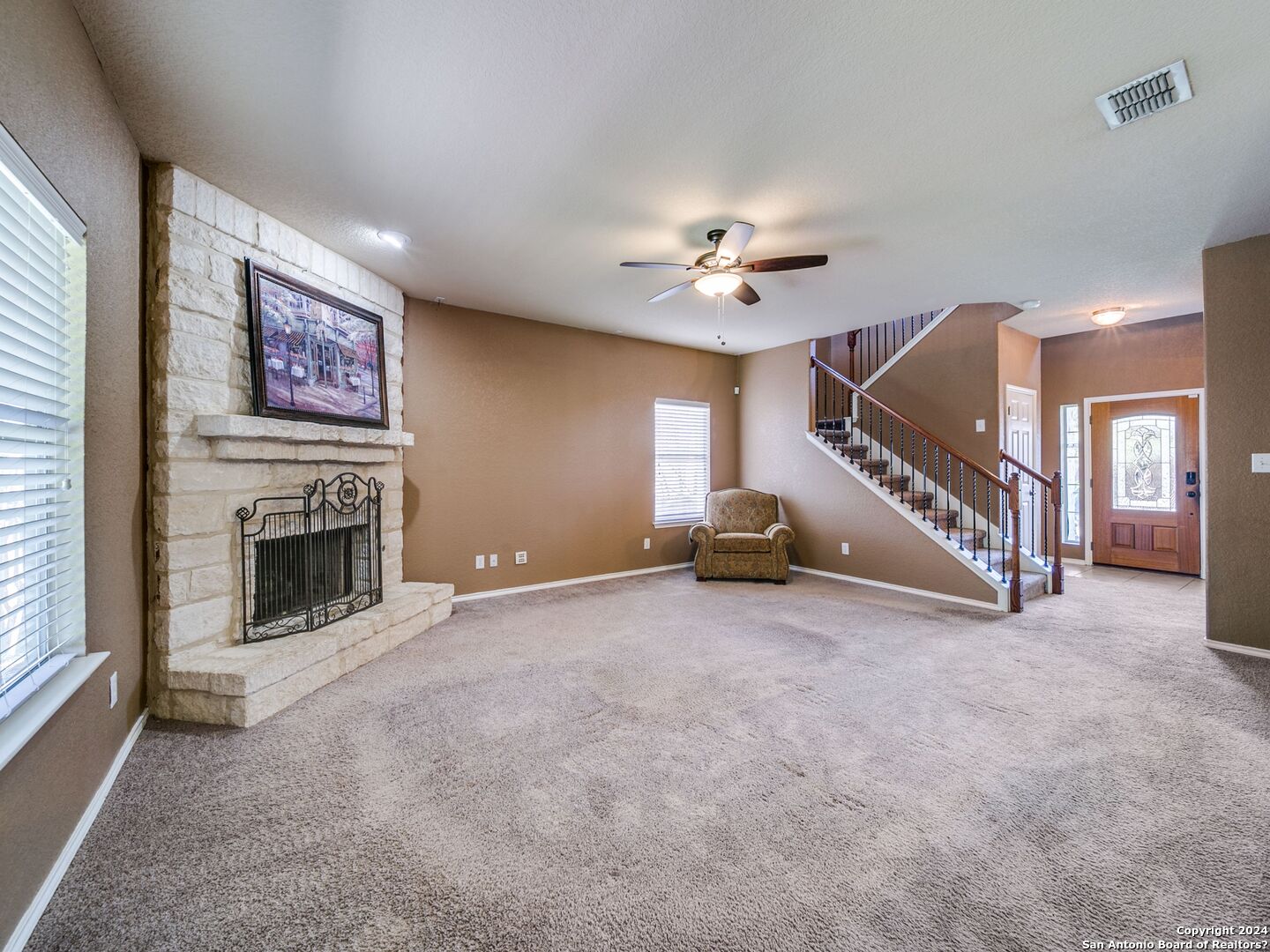 Beautiful cul-de-sac home showcasing an elegant rock exterior at the front with a front porch. This residence features 4 bedrooms, 2 1/2 bathrooms, a game room, study, and formal dining area. Rock fireplace in the family room and downstairs study with French doors. The kitchen is equipped with granite countertops, a pantry, a breakfast bar area, and an eat-in dining space. Outdoor amenities include a covered back patio, a privacy fence, and an upper deck area off the game room that overlooks the backyard.