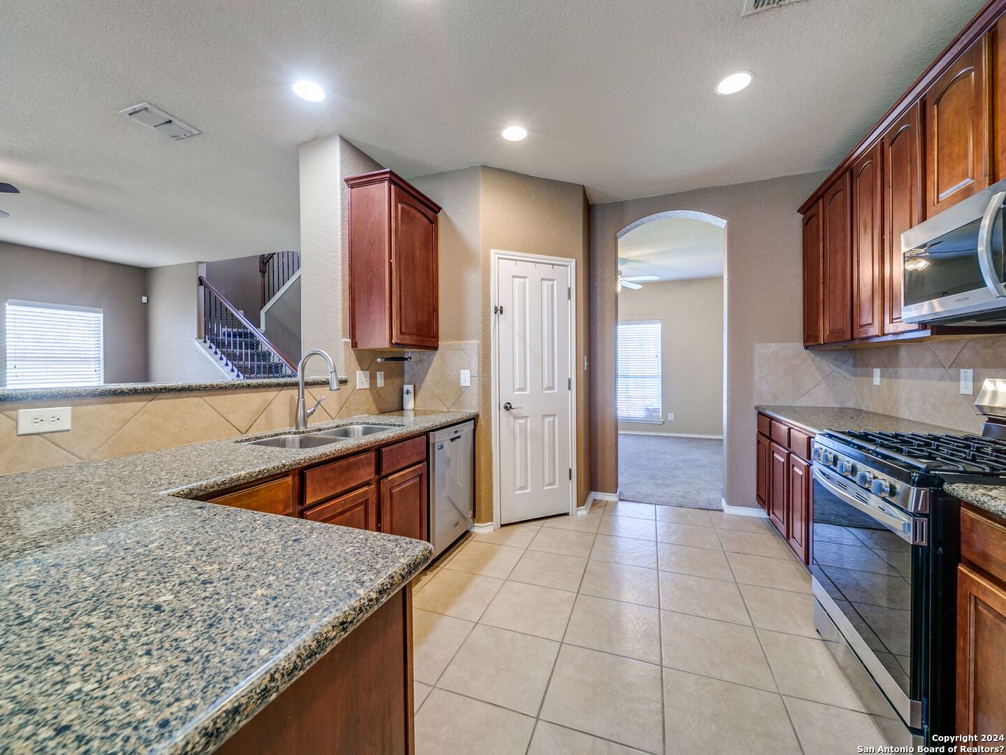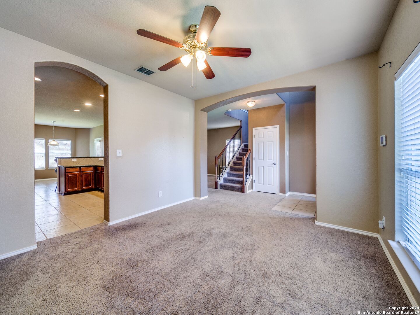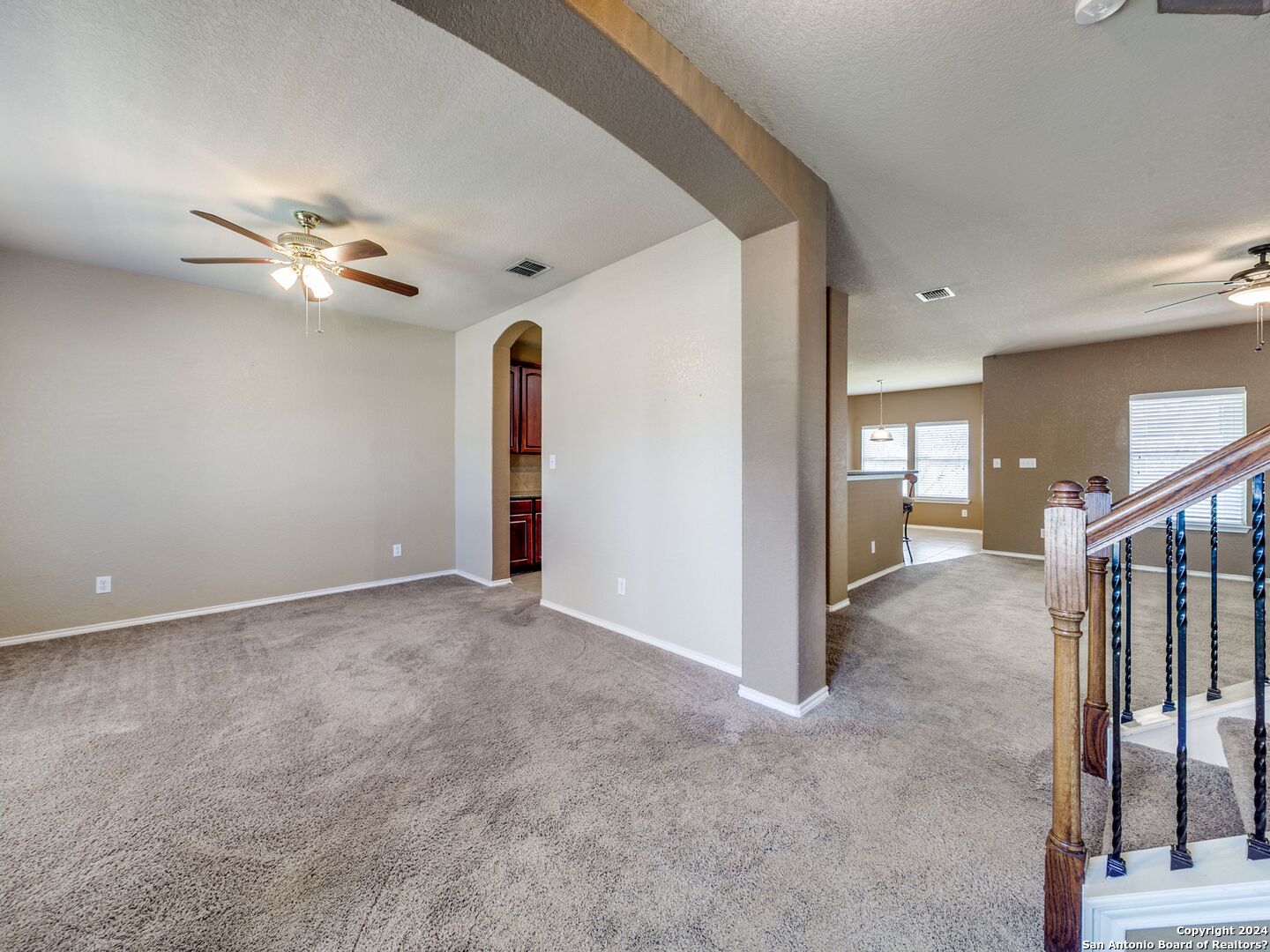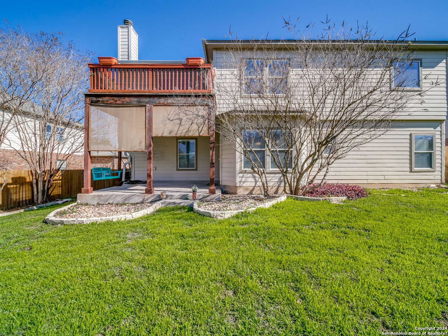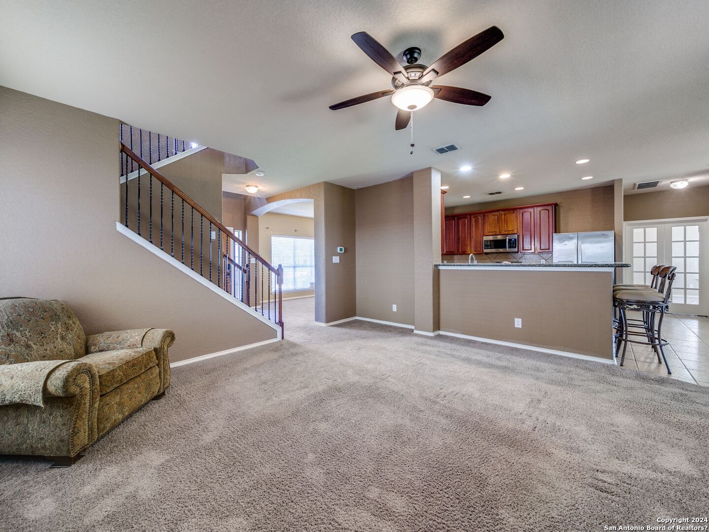 Beautiful cul-de-sac home showcasing an elegant rock exterior at the front with a front porch. This residence features 4 bedrooms, 2 1/2 bathrooms, a game room, study, and formal dining area. Rock fireplace in the family room and downstairs study with French doors. The kitchen is equipped with granite countertops, a pantry, a breakfast bar area, and an eat-in dining space. Outdoor amenities include a covered back patio, a privacy fence, and an upper deck area off the game room that overlooks the backyard.