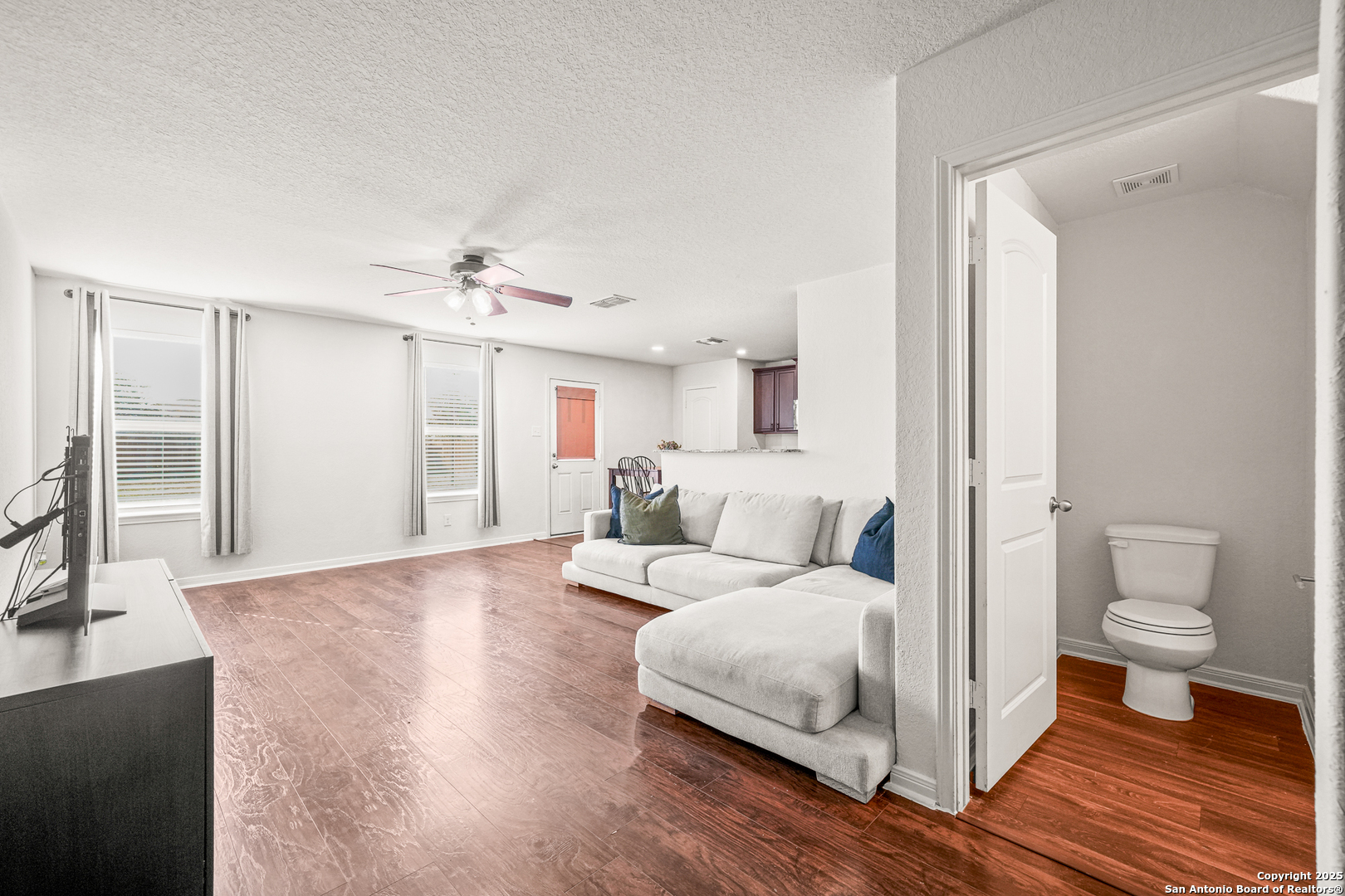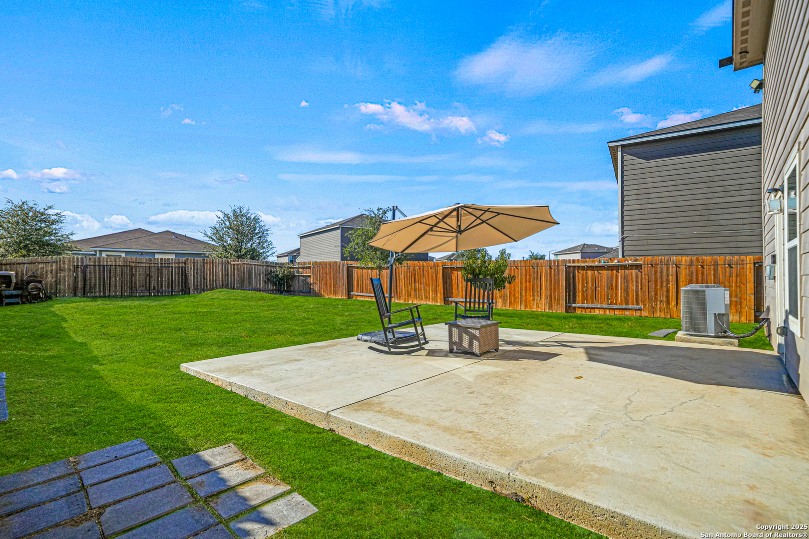 Beautiful two-story home featuring a spacious open floor plan and a big backyard! The inviting living area flows seamlessly into the dining and kitchen spaces, perfect for entertaining and family gatherings. Upstairs offers comfortable bedrooms and a generous primary suite for added privacy and relaxation. Step outside to a large backyard, ideal for family get togethers, pets, or weekend barbecues. Conveniently located just minutes from Lackland Air Force Base and Dove Creek Shopping Center, with easy access to major highways, dining, and entertainment. This home combines comfort, convenience, and space - a must-see!