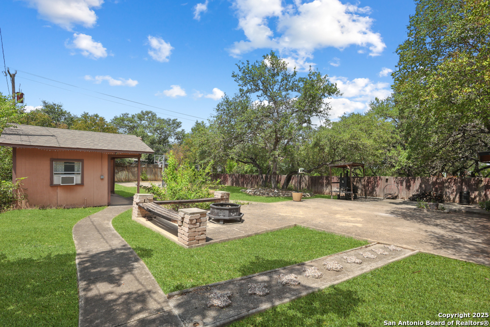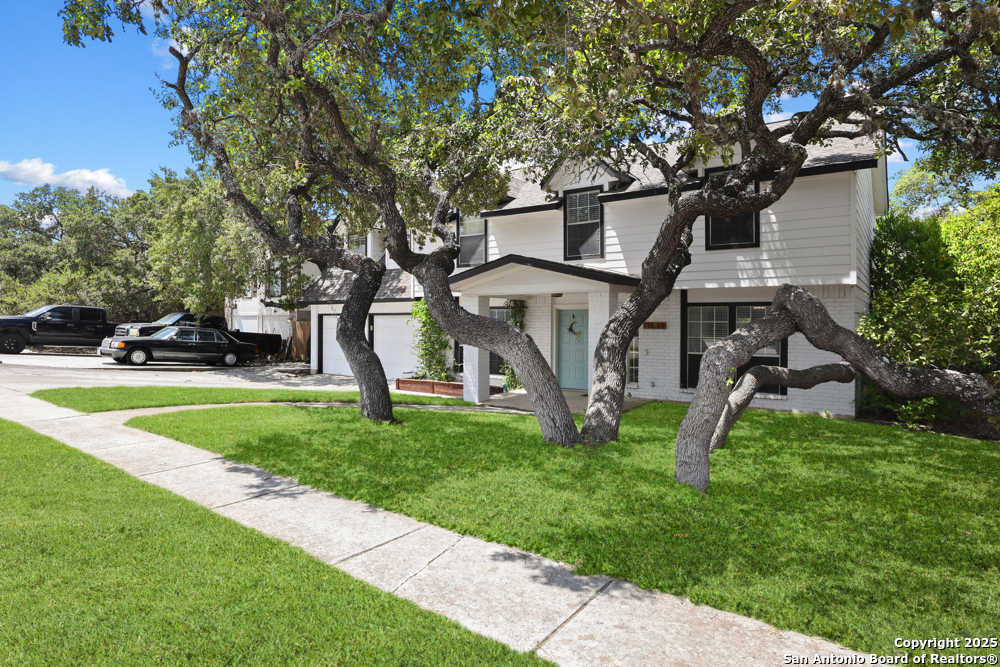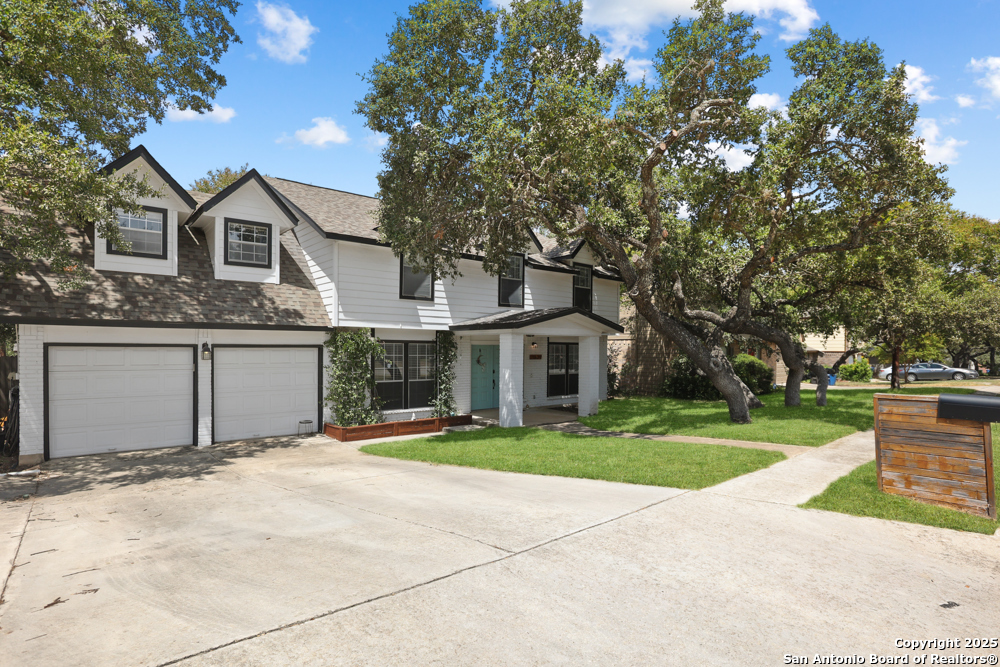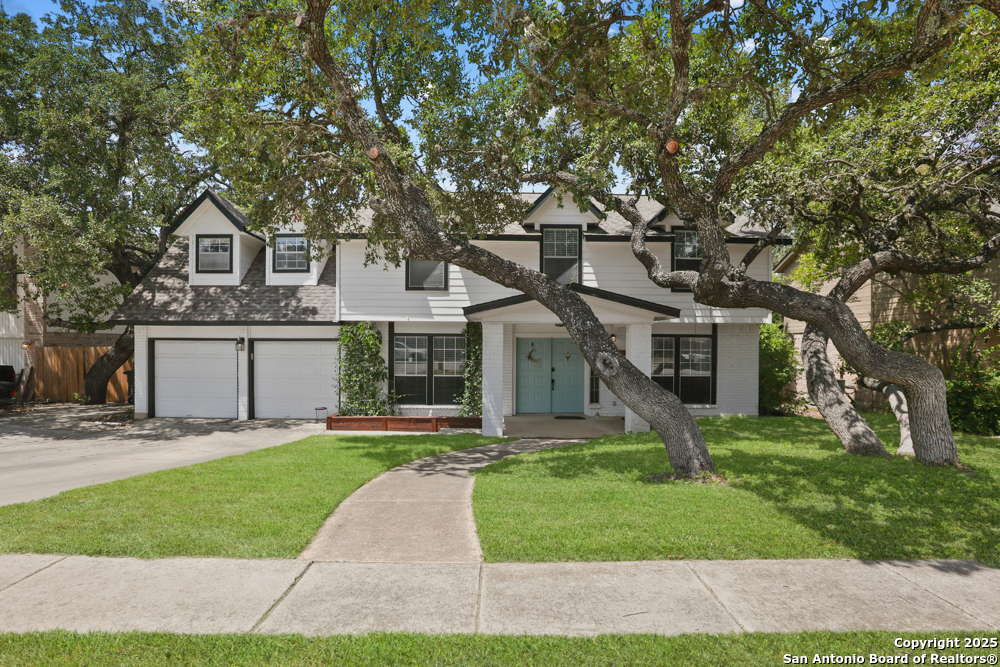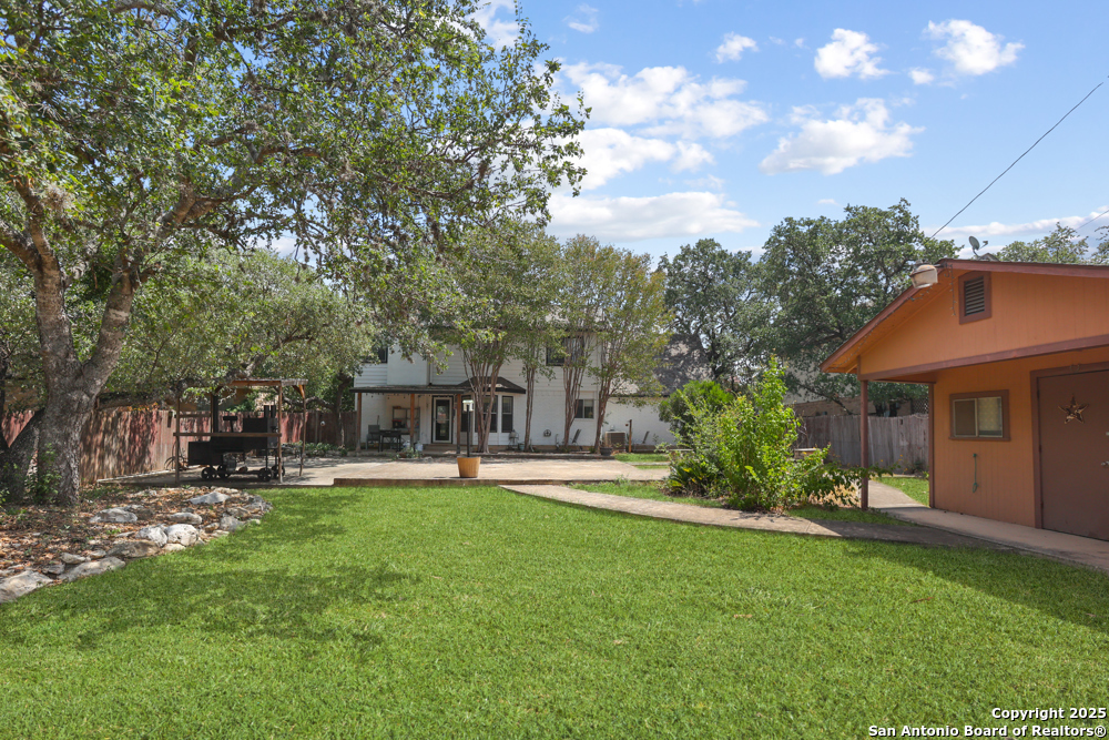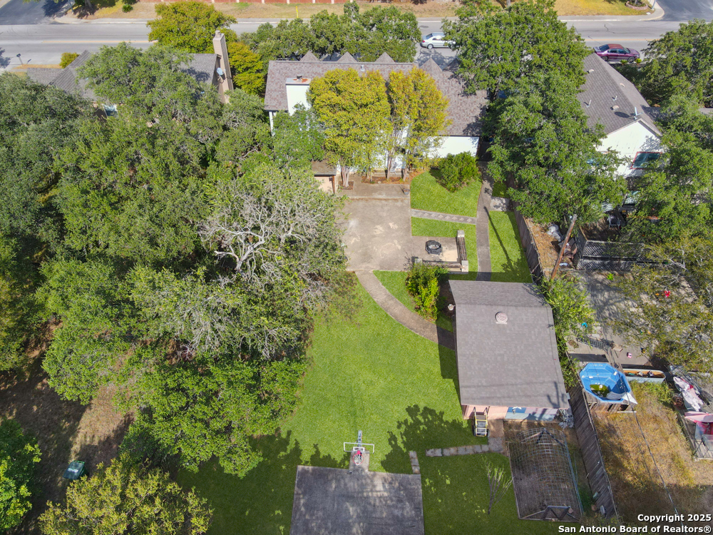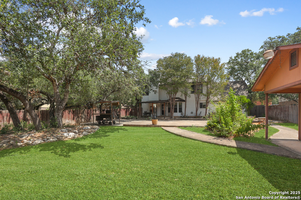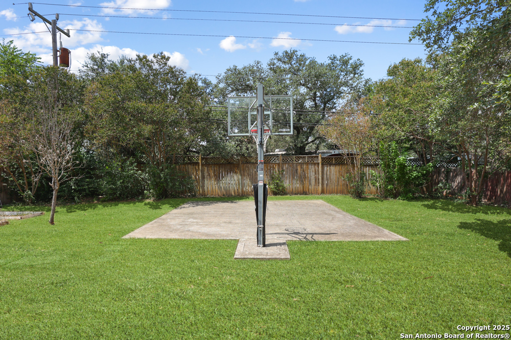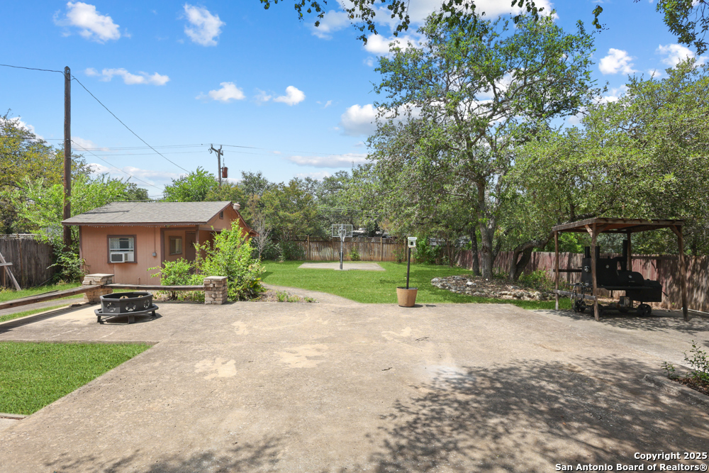 This well-maintained, updated home offers 5 spacious bedrooms plus office and 2 1/2 bathrooms. The modern kitchen features granite countertops, tile flooring, and stainless steel appliances-perfect for cooking and entertaining. Amenities include hardwood flooring in living area, beautifully designed staircase, wood beam accented ceiling in office with french doors, living room with cozy fireplace and lots of natural light. Situated on a generous lot with mature trees, the outdoor space includes a large patio, basketball court, and a large workshop/storage building. Additional features include ceiling fans and sprinkler system. Conveniently located near Lackland AFB, SeaWorld, shopping, restaurants and major employers. 5 bedroom homes like this don't come around often-schedule your showing today!
