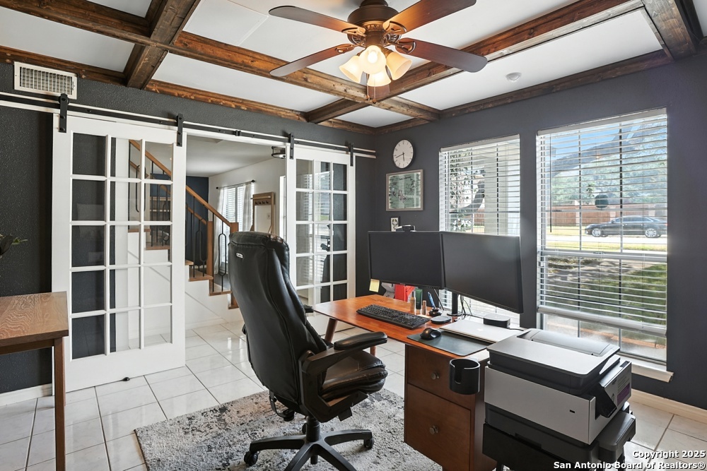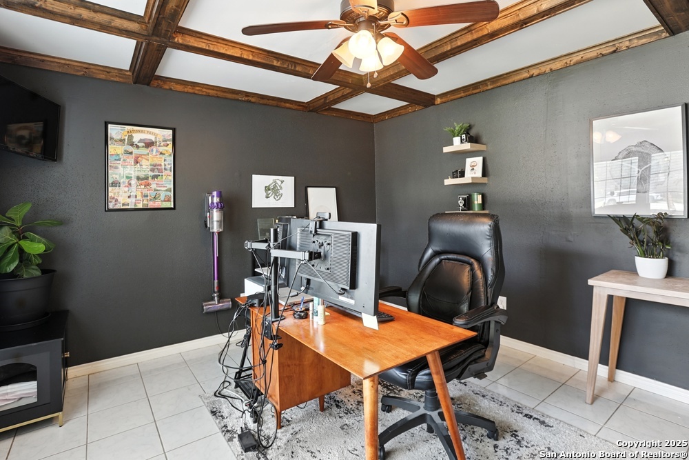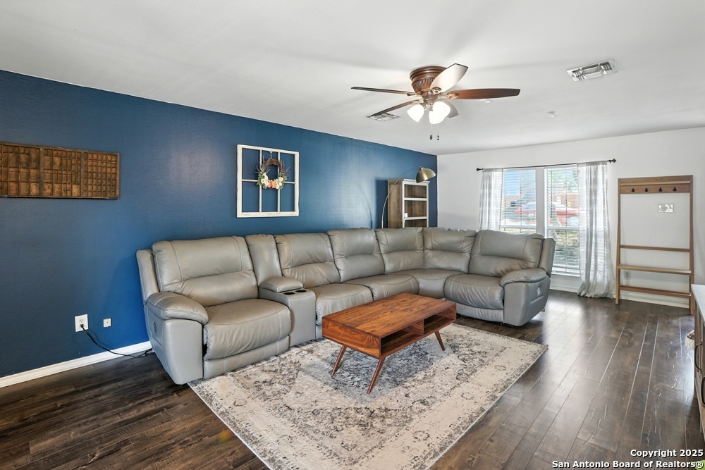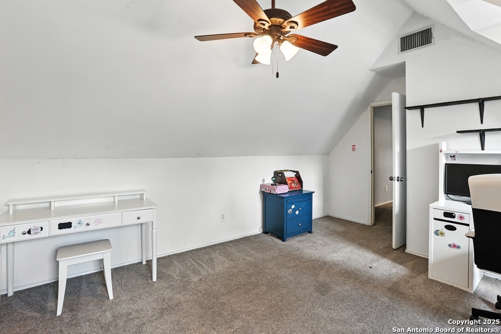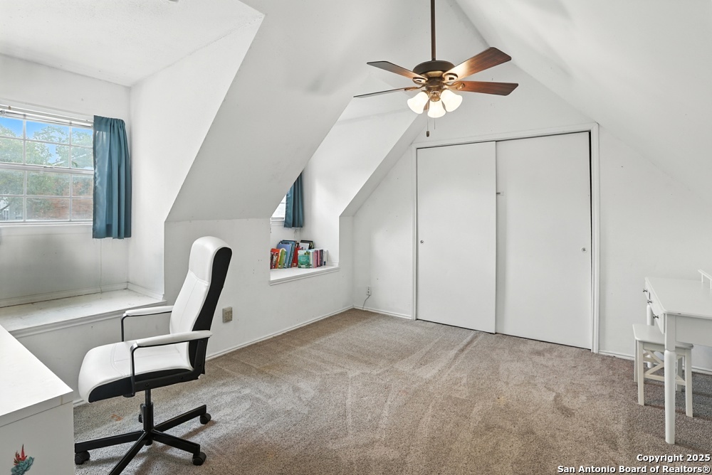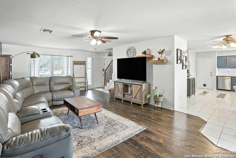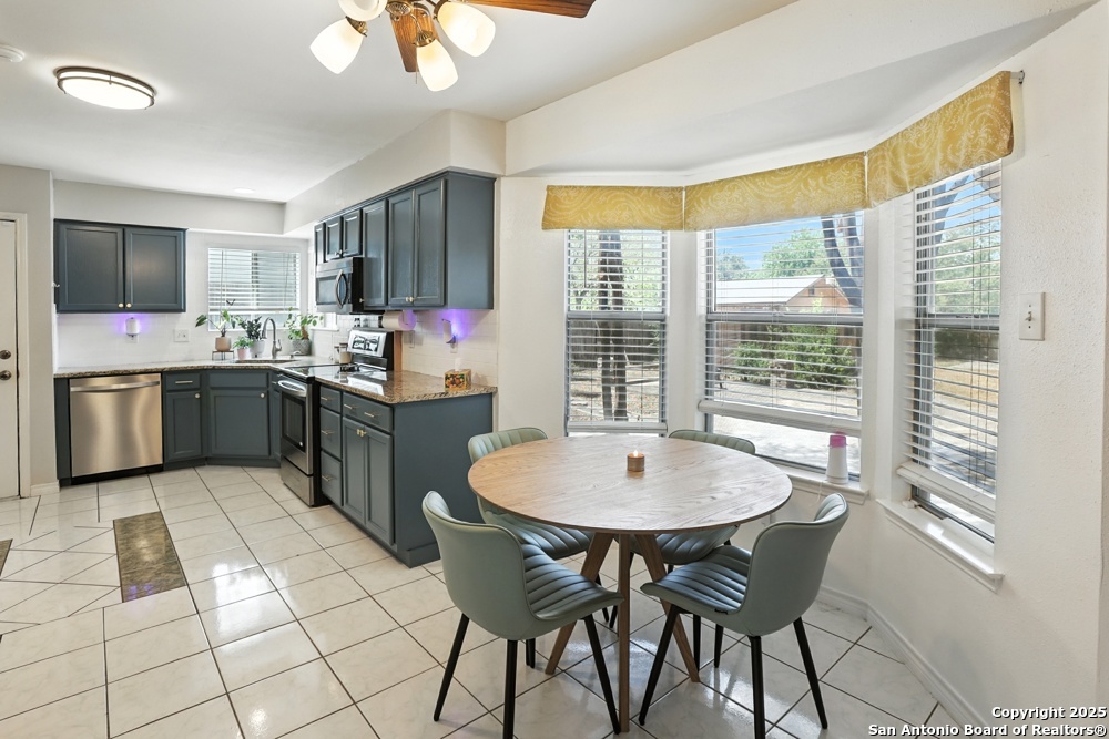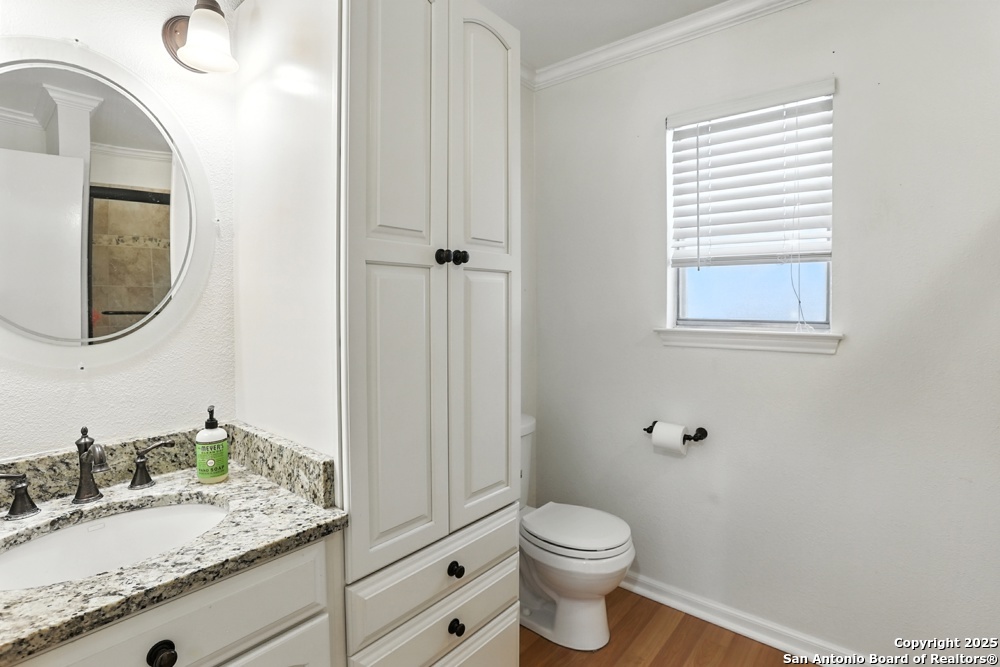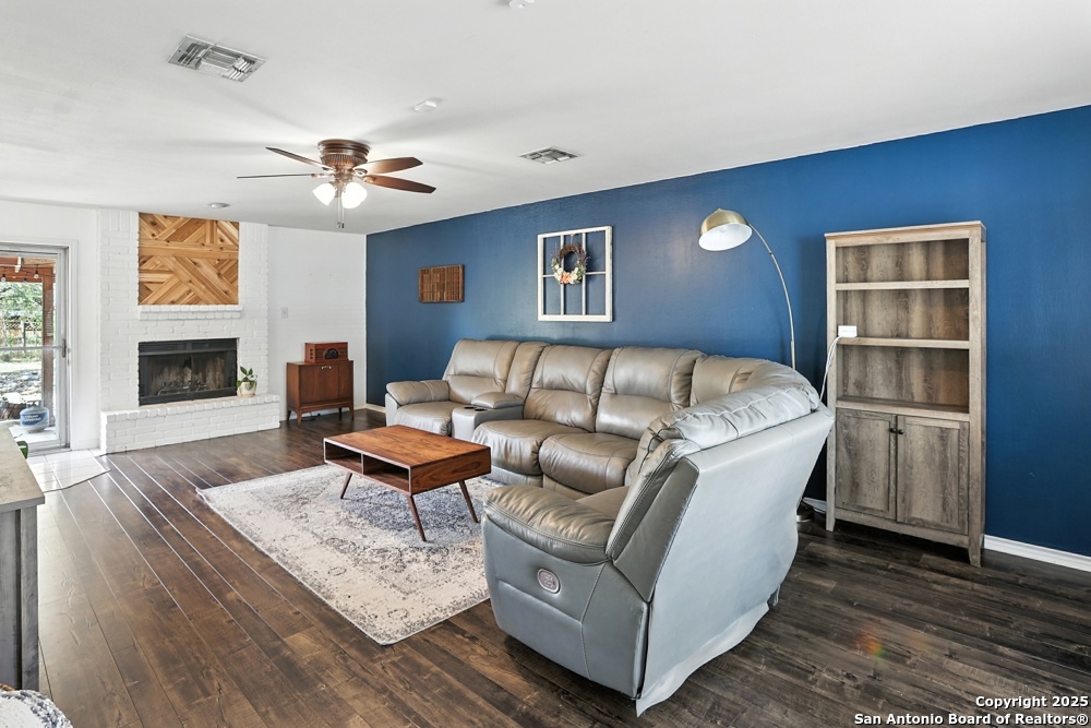This well-maintained, updated home offers 5 spacious bedrooms plus office and 2 1/2 bathrooms. The modern kitchen features granite countertops, tile flooring, and stainless steel appliances-perfect for cooking and entertaining. Amenities include hardwood flooring in living area, beautifully designed staircase, wood beam accented ceiling in office with french doors, living room with cozy fireplace and lots of natural light. Situated on a generous lot with mature trees, the outdoor space includes a large patio, basketball court, and a large workshop/storage building. Additional features include ceiling fans and sprinkler system. Conveniently located near Lackland AFB, SeaWorld, shopping, restaurants and major employers. 5 bedroom homes like this don't come around often-schedule your showing today!